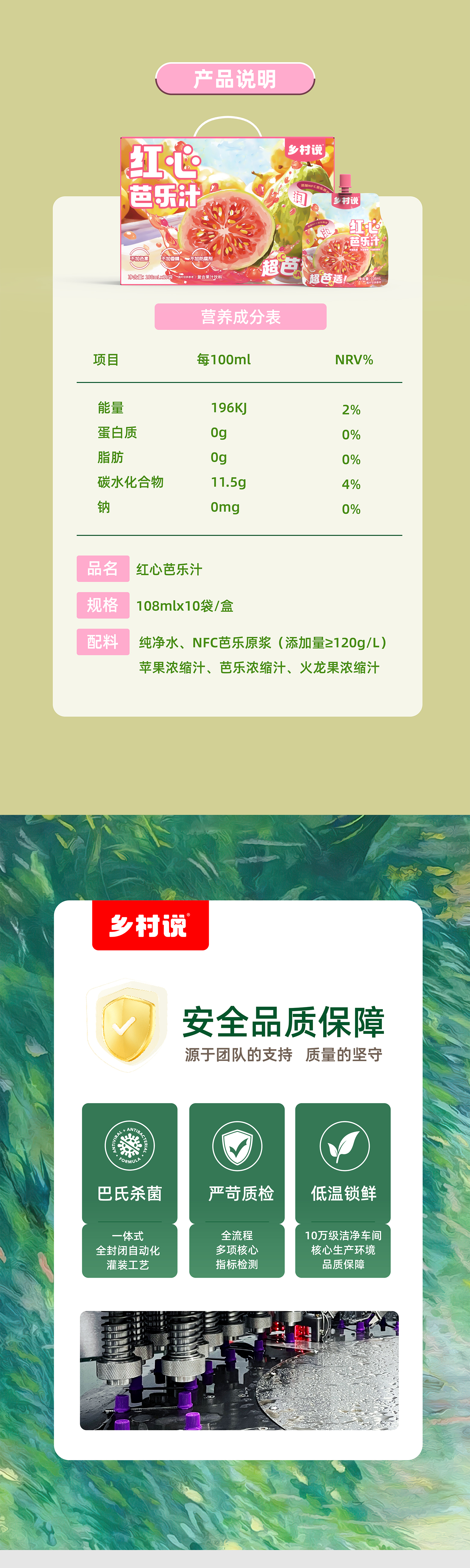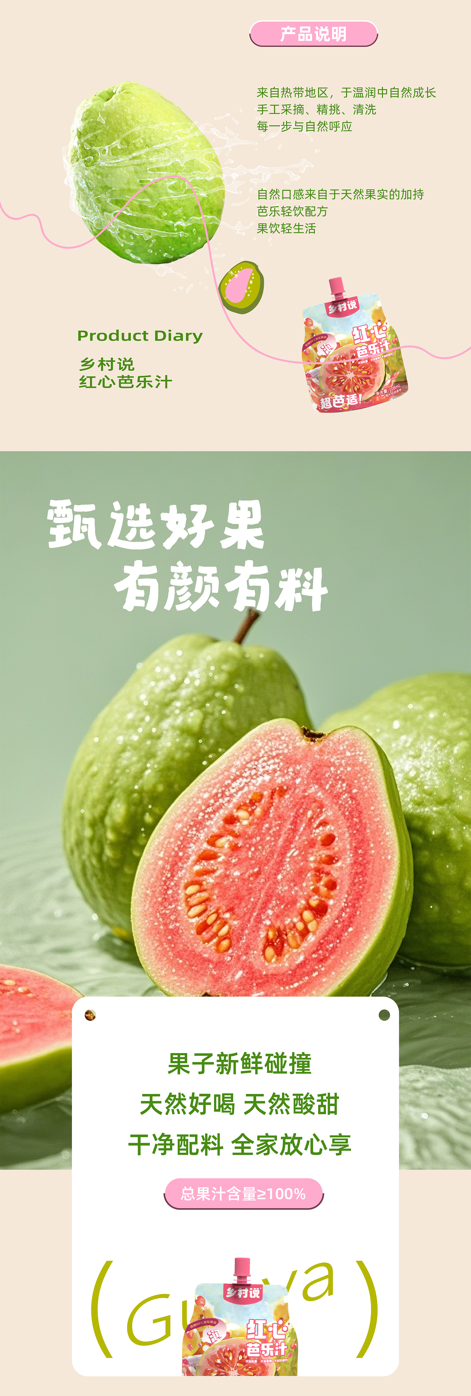 乡村说 红心芭乐汁 清爽解腻 低卡健康 果汁饮料