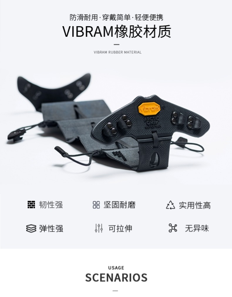 vibram 轻便雪地湿冰雨天防滑鞋套 户外登山徒步冰爪便携橡胶鞋套
