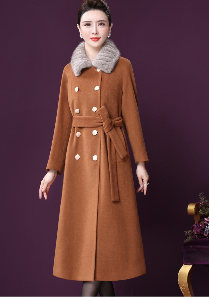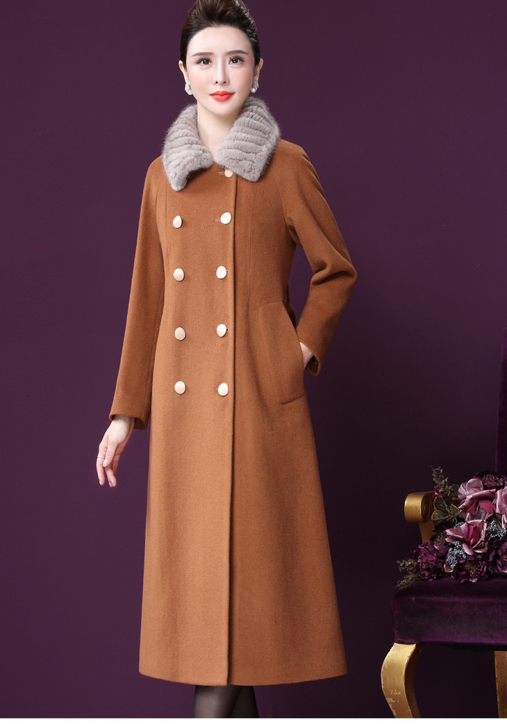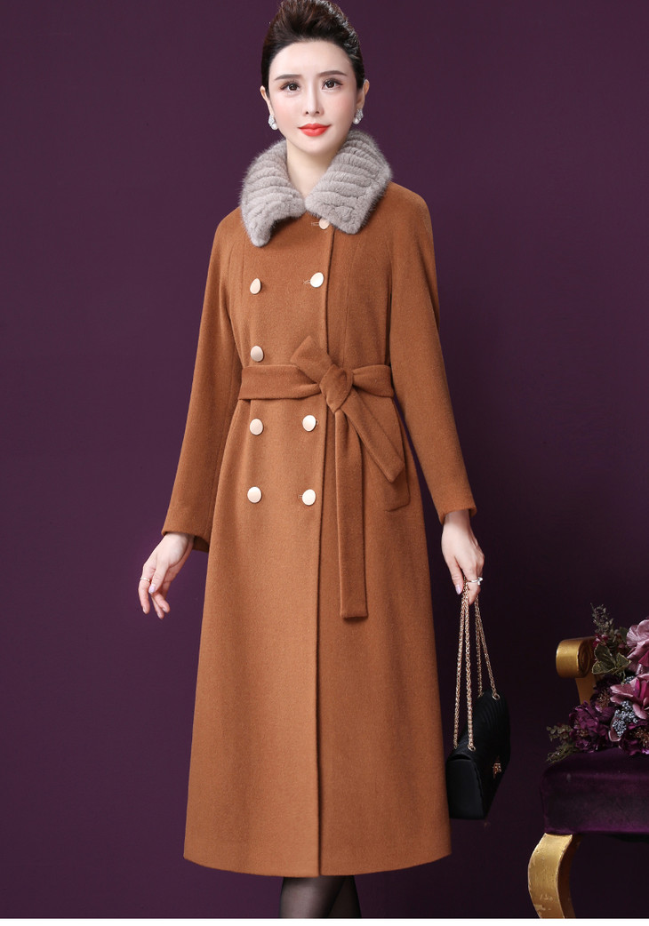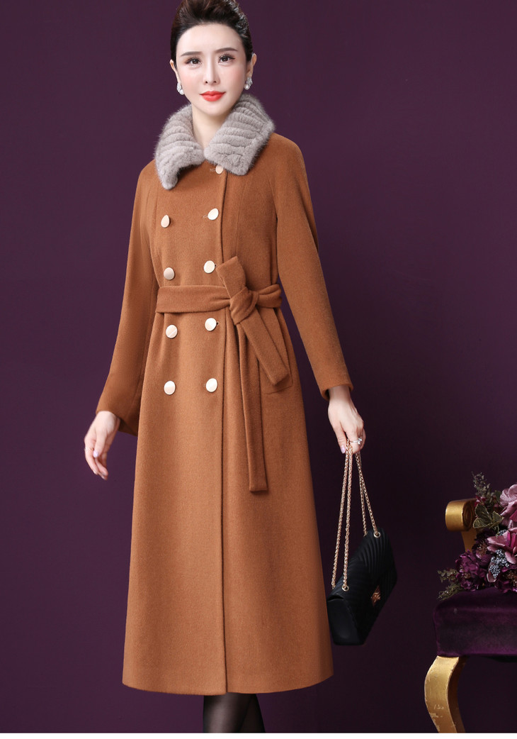 WXY-W-XY-20203中长款2020秋冬新款宽松水貂毛领贵夫人羊毛大衣