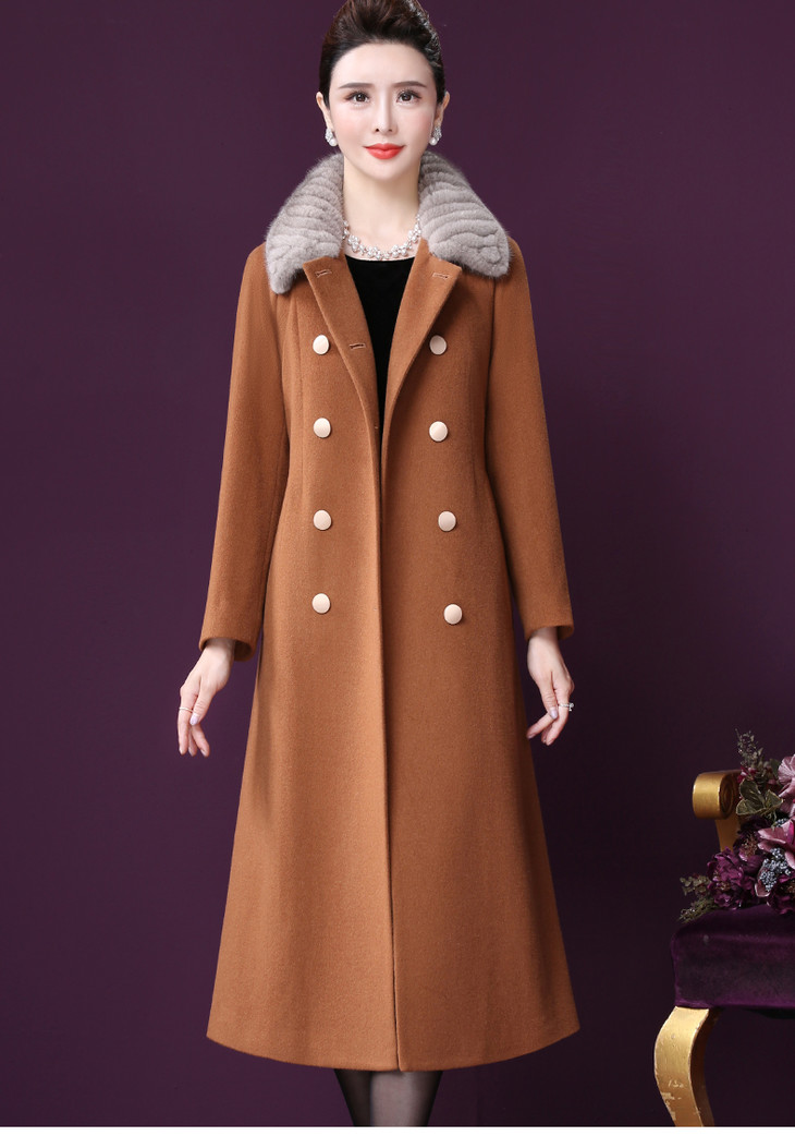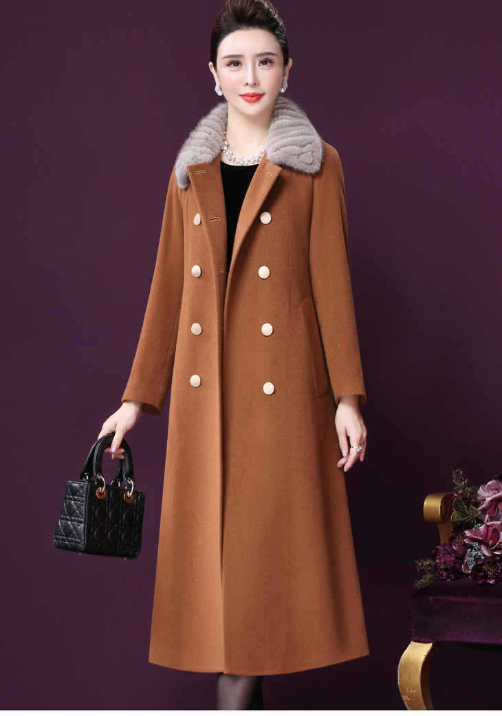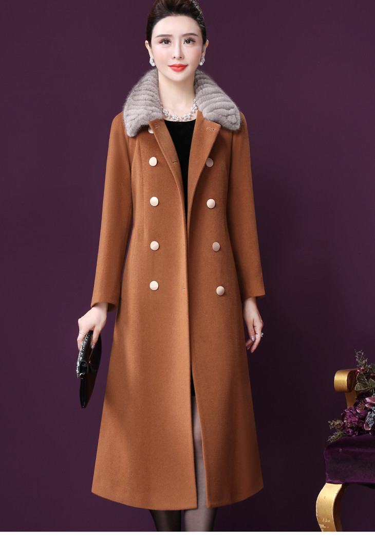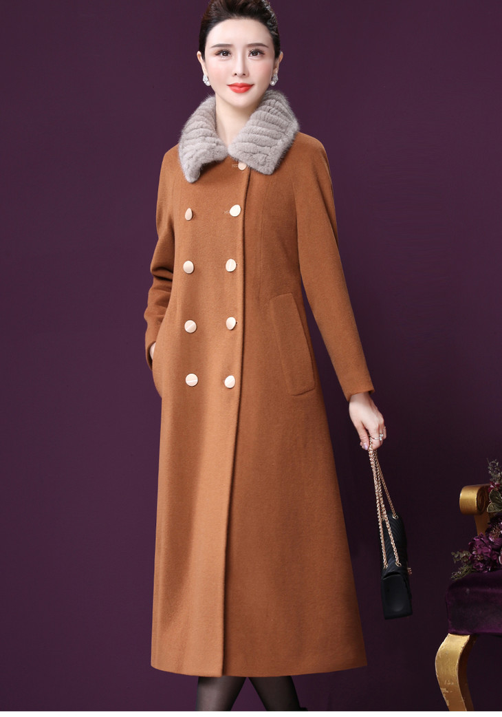 WXY-W-XY-20203中长款2020秋冬新款宽松水貂毛领贵夫人羊毛大衣