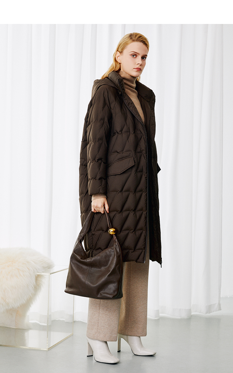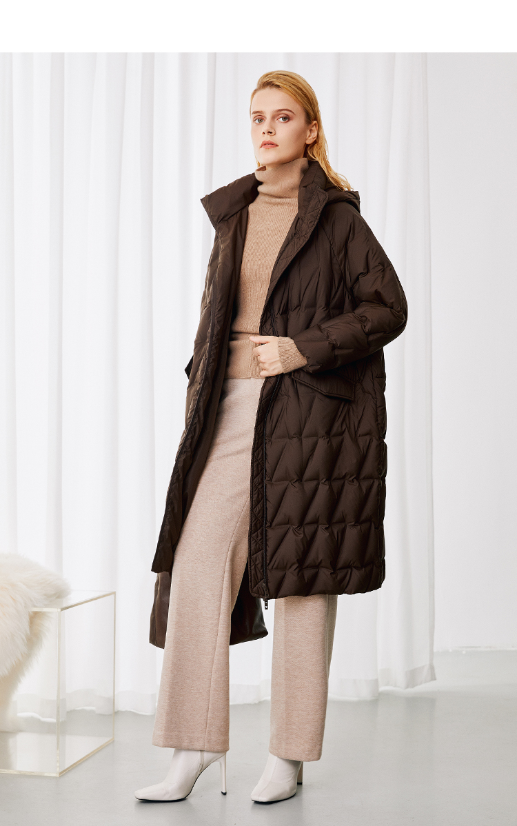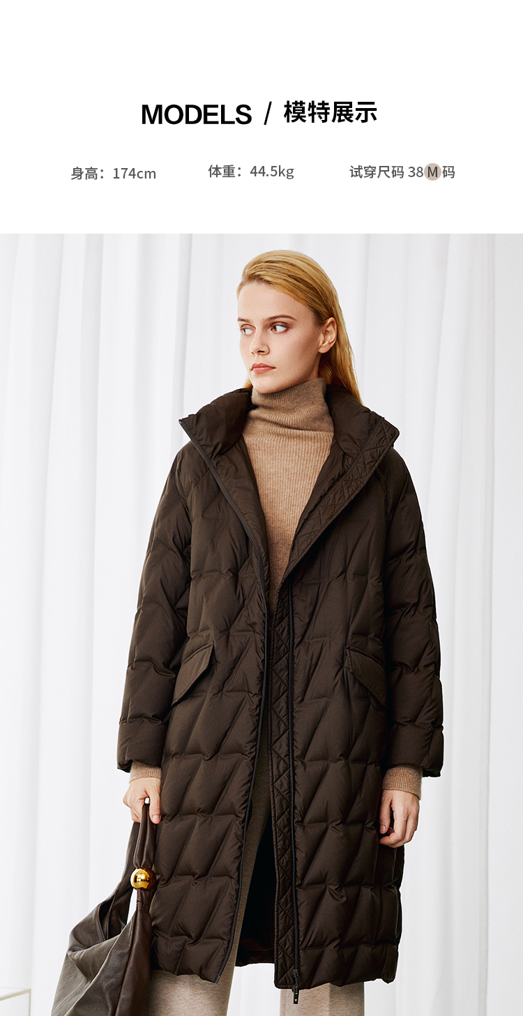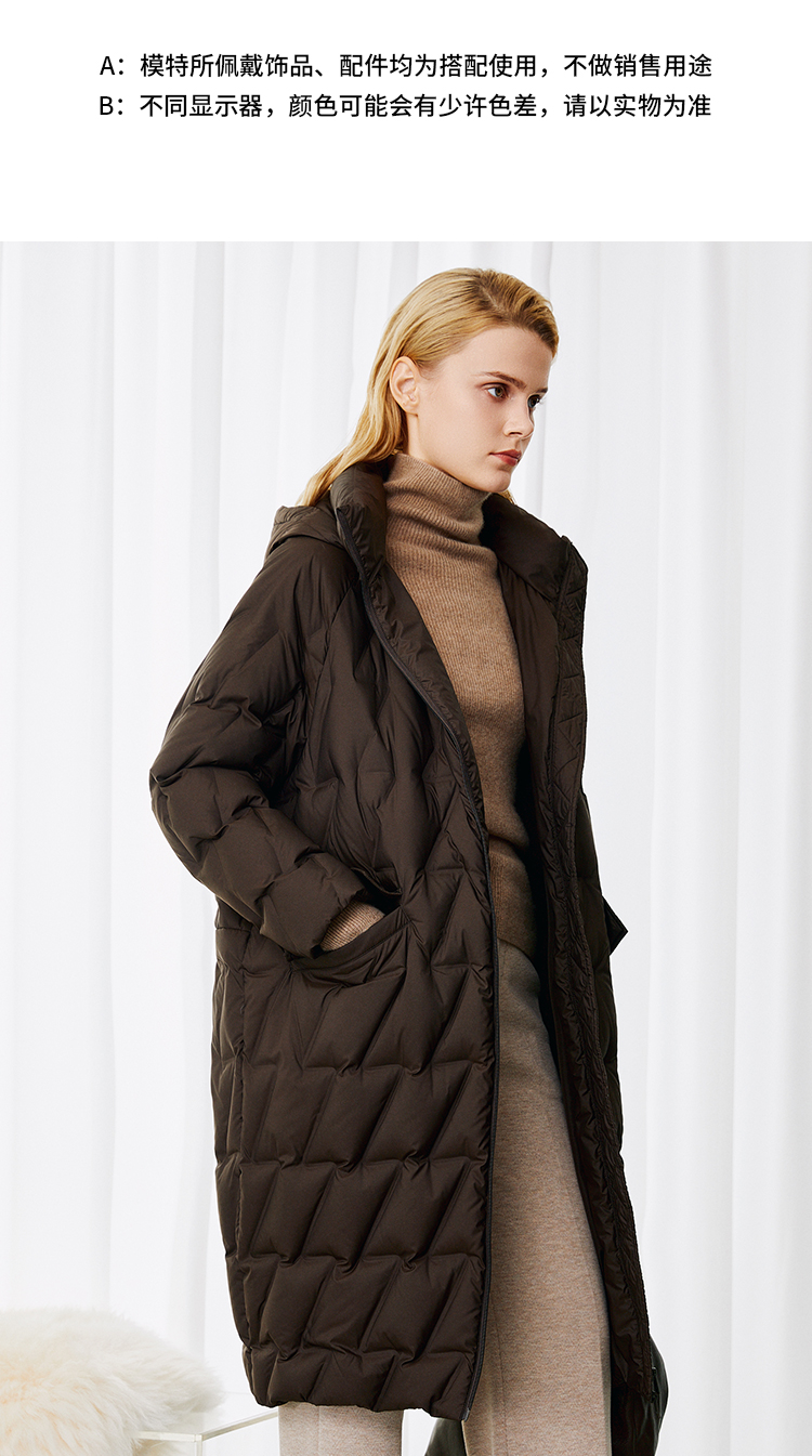 EITIE爱特爱宽松廓形格子保暖连帽羽绒服冬季新款8011707