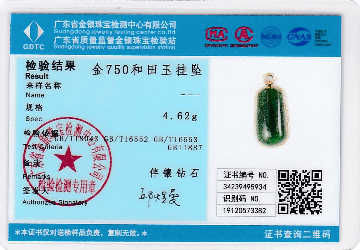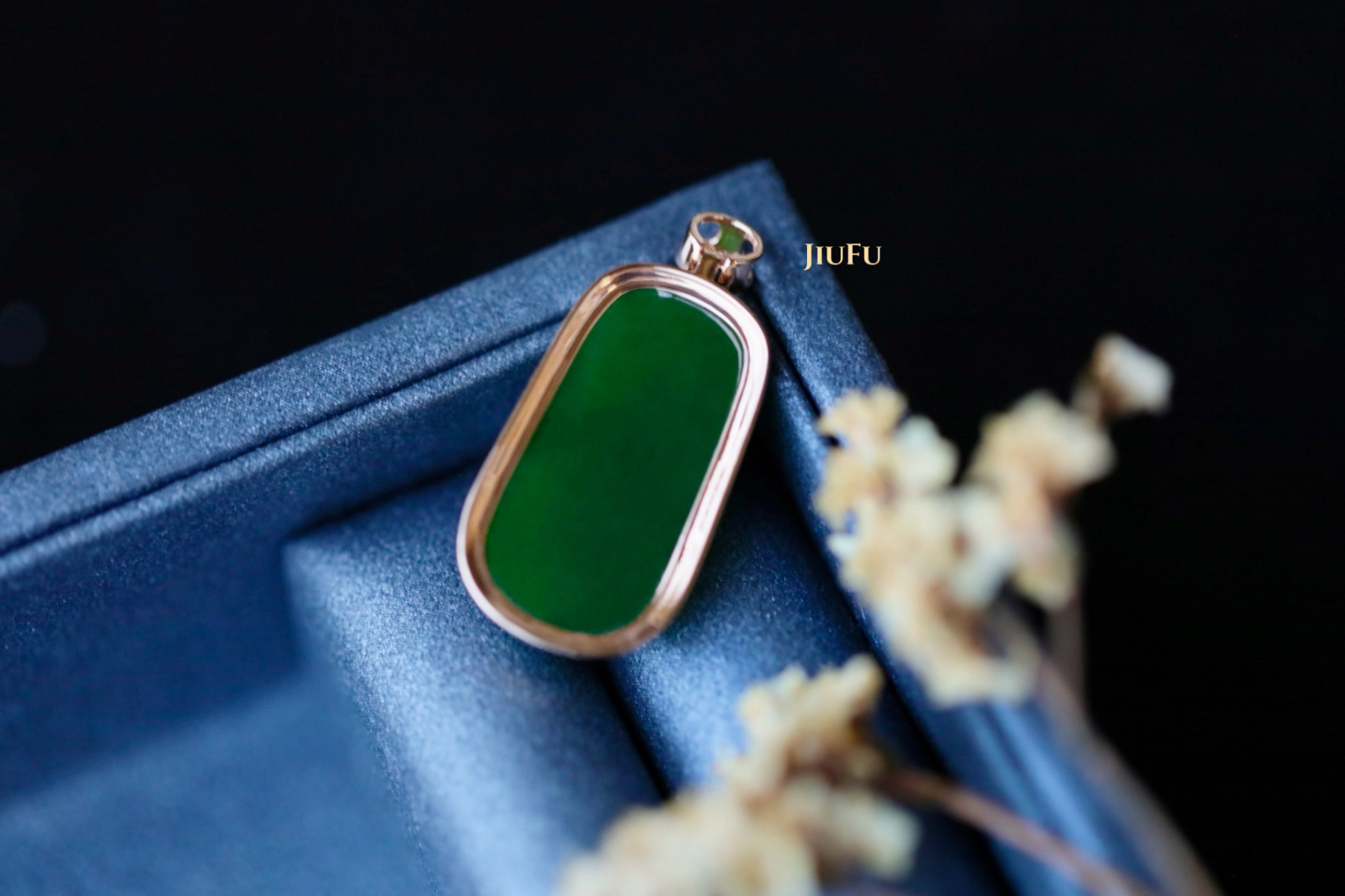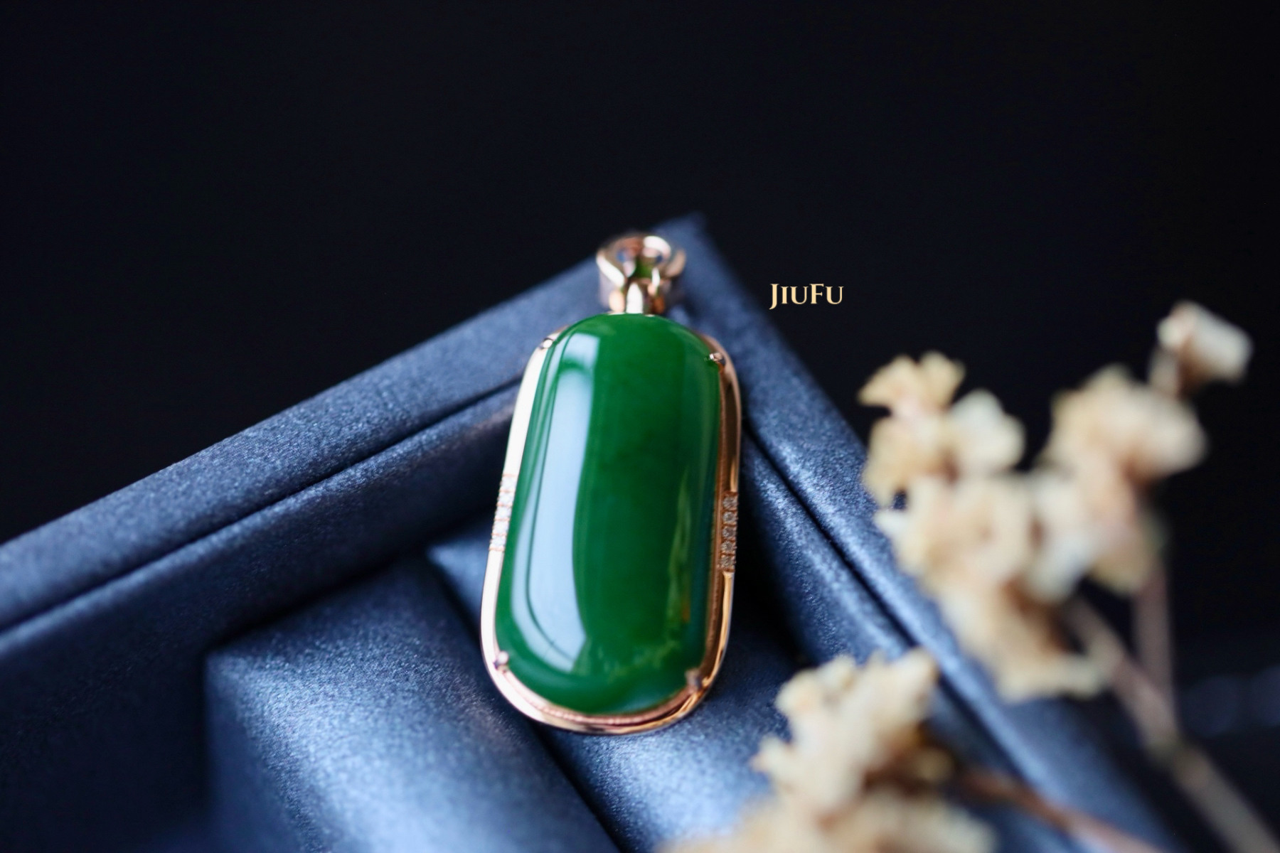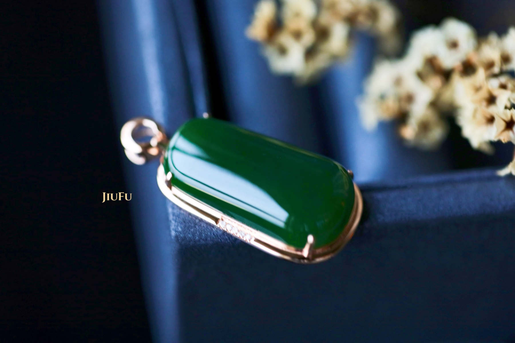 18K玫瑰金和田玉(碧玉)吊坠