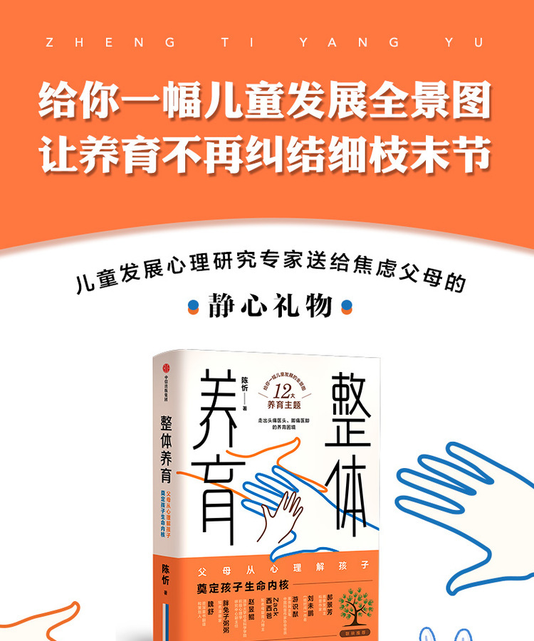 《整体养育》是一本给广大父母的育儿指南。其中既有育儿的“内功心法”,也有育儿的“具体招式”,可以切实帮助父母建立对儿童发展的整体认识,帮助孩子发展各种必需的核心能力。只有我们手里握着儿童发展的全景图,用整体养育的思路去看待孩子的发展,才能看清楚来路和去路,进而反思自己的养育方式,帮助孩子更好地成长。