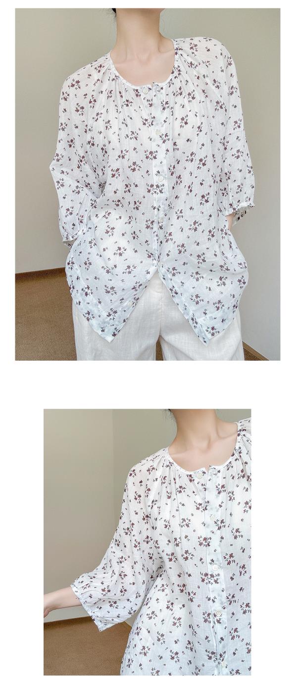 奥篇亚麻碎花衬衫 | 圆领五分袖,演绎夏日文艺腔调