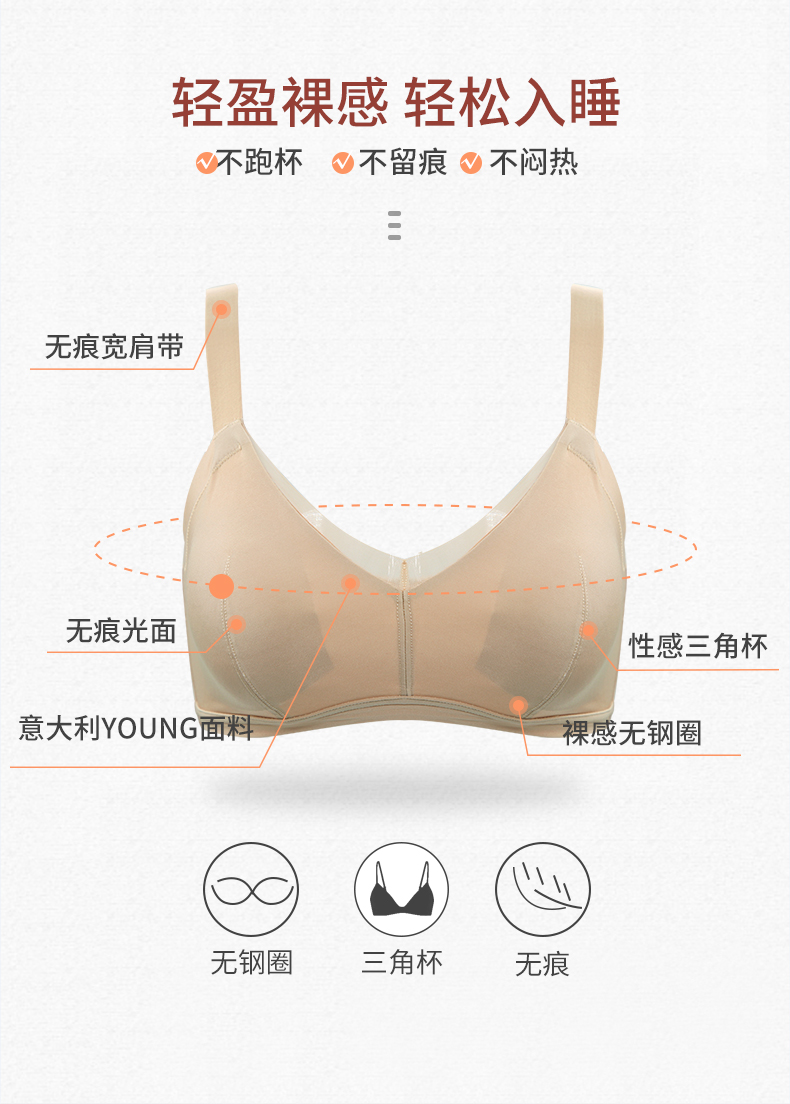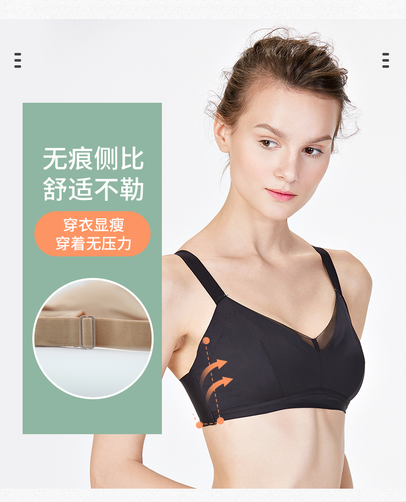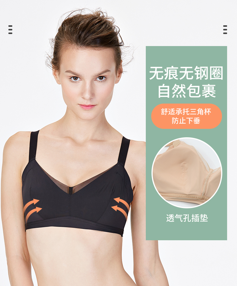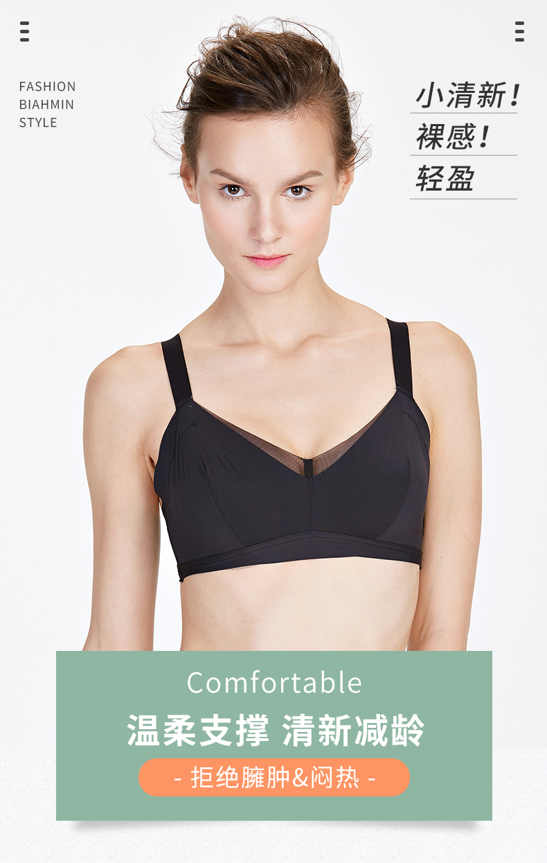 贝佳人新品无痕光面网纱薄棉杯文胸包容舒适睡眠内衣调整型BW32701