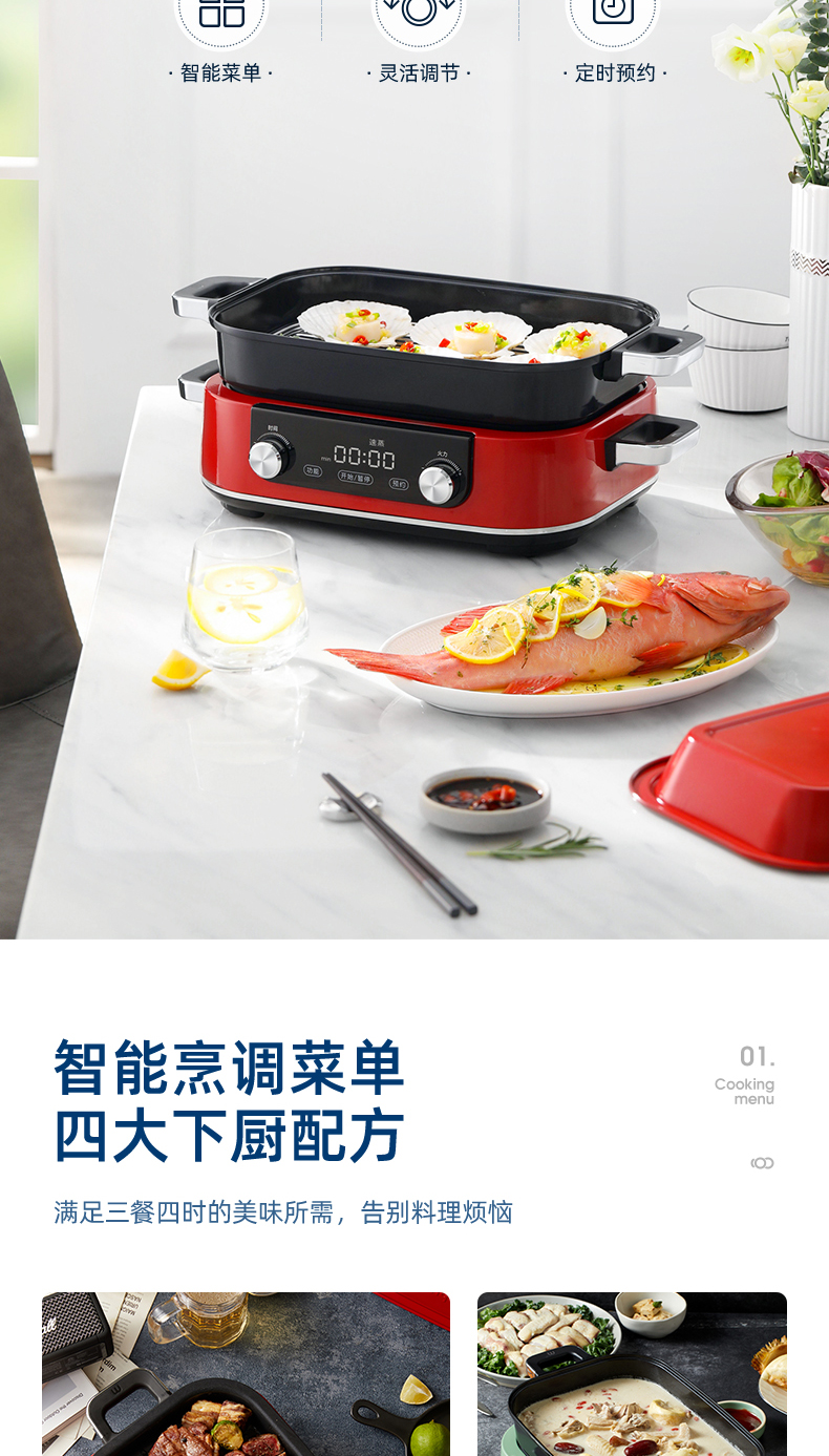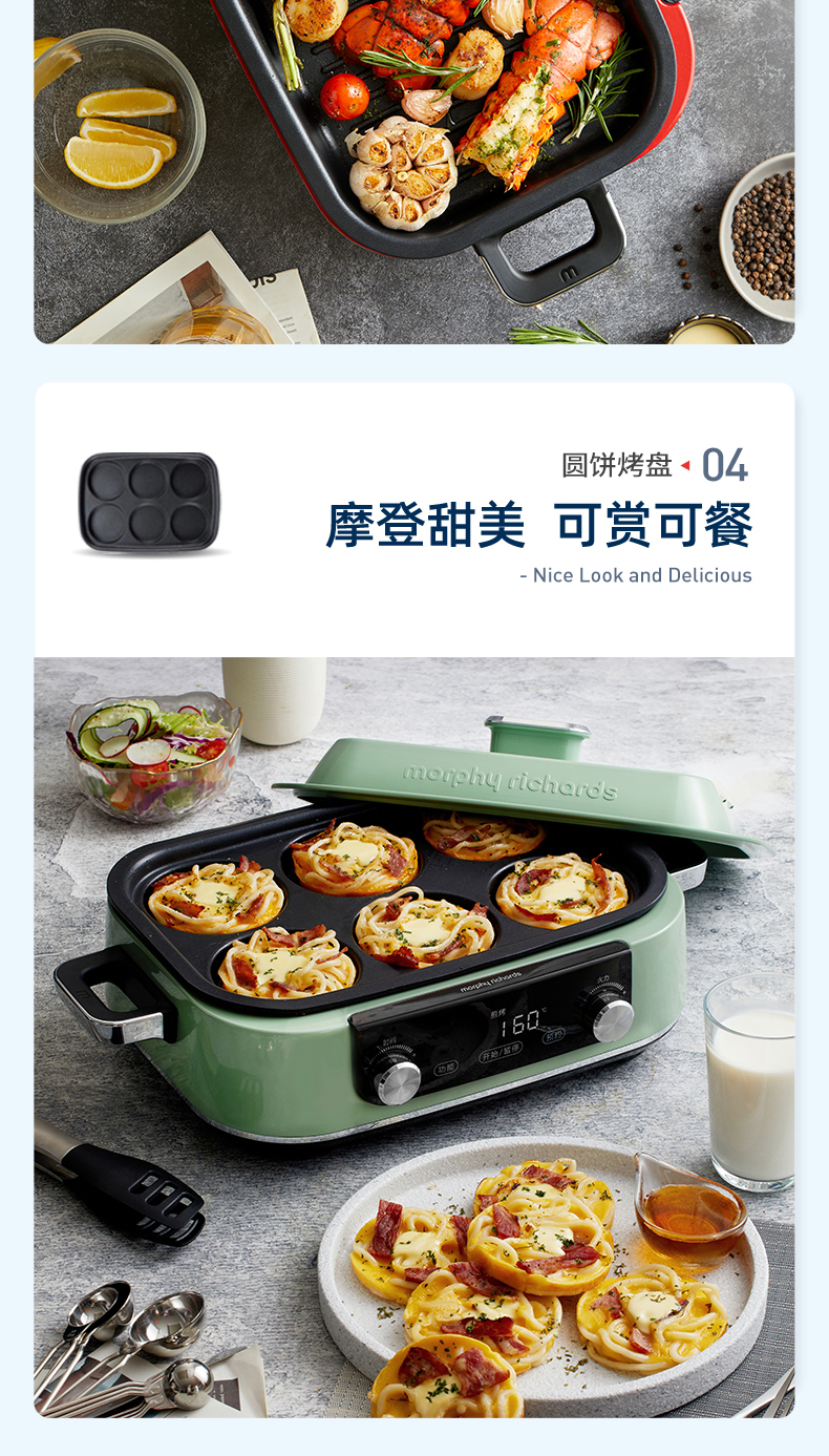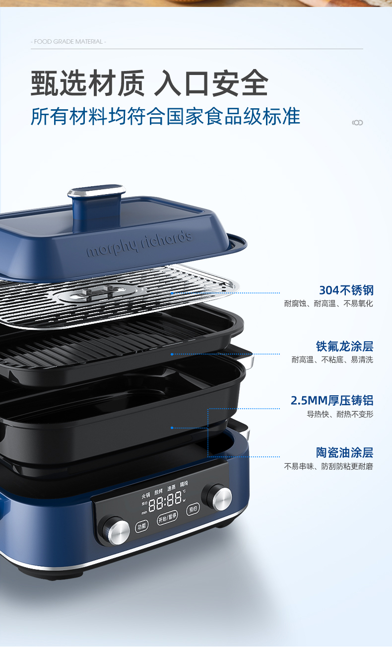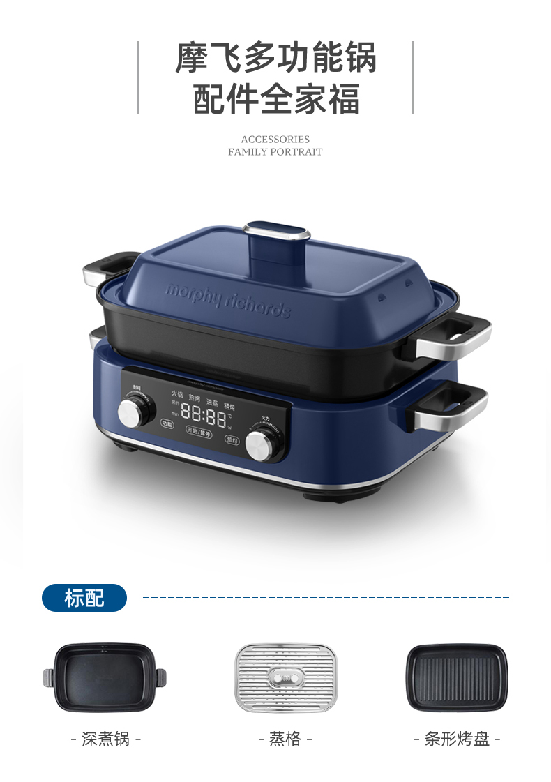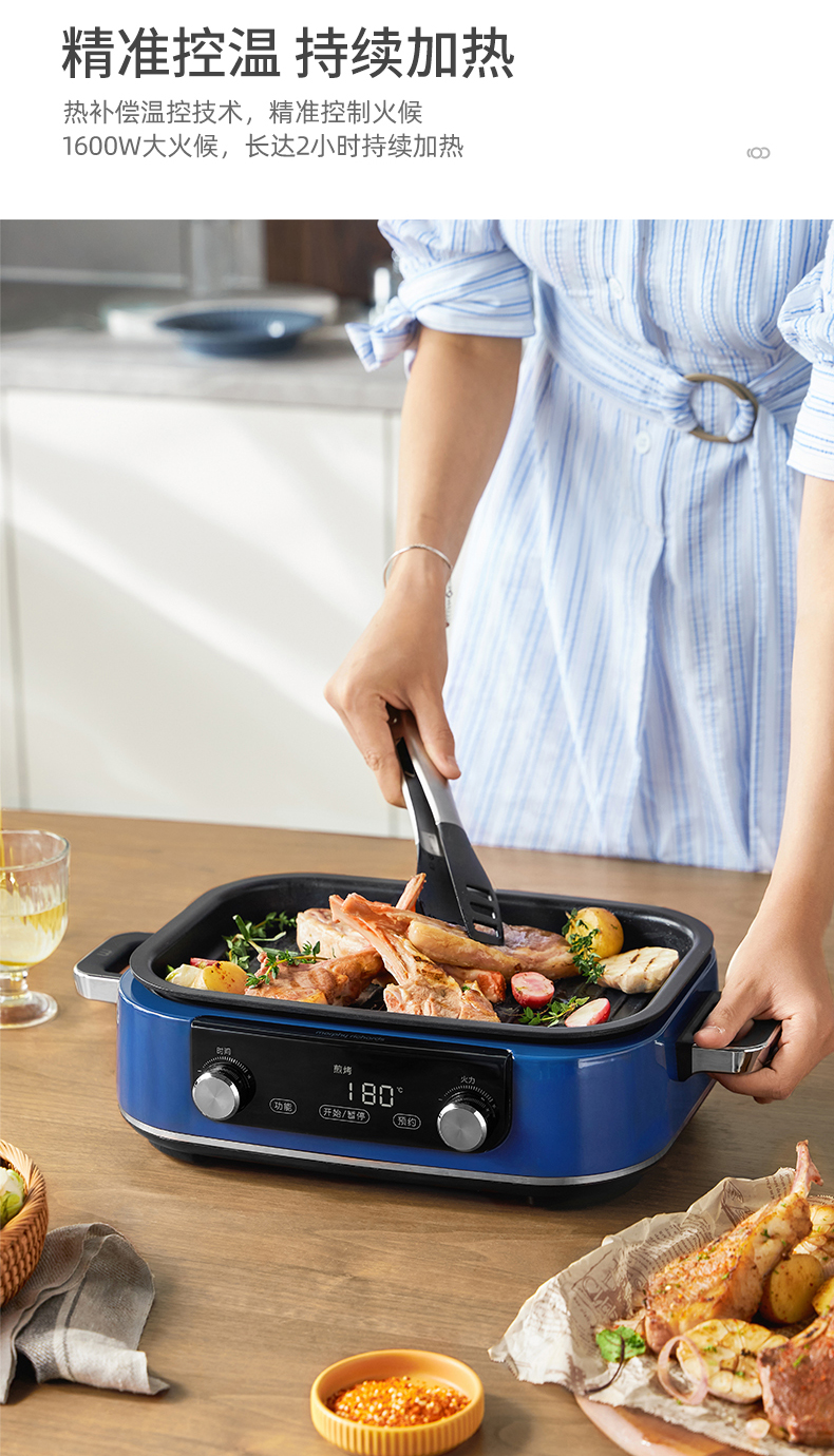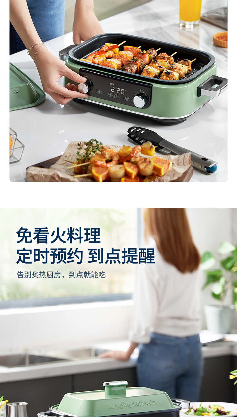摩飞-多功能料理锅二代MR-9099火锅烤肉涮一体家用蒸煮炒煎电烤锅M2【JD】