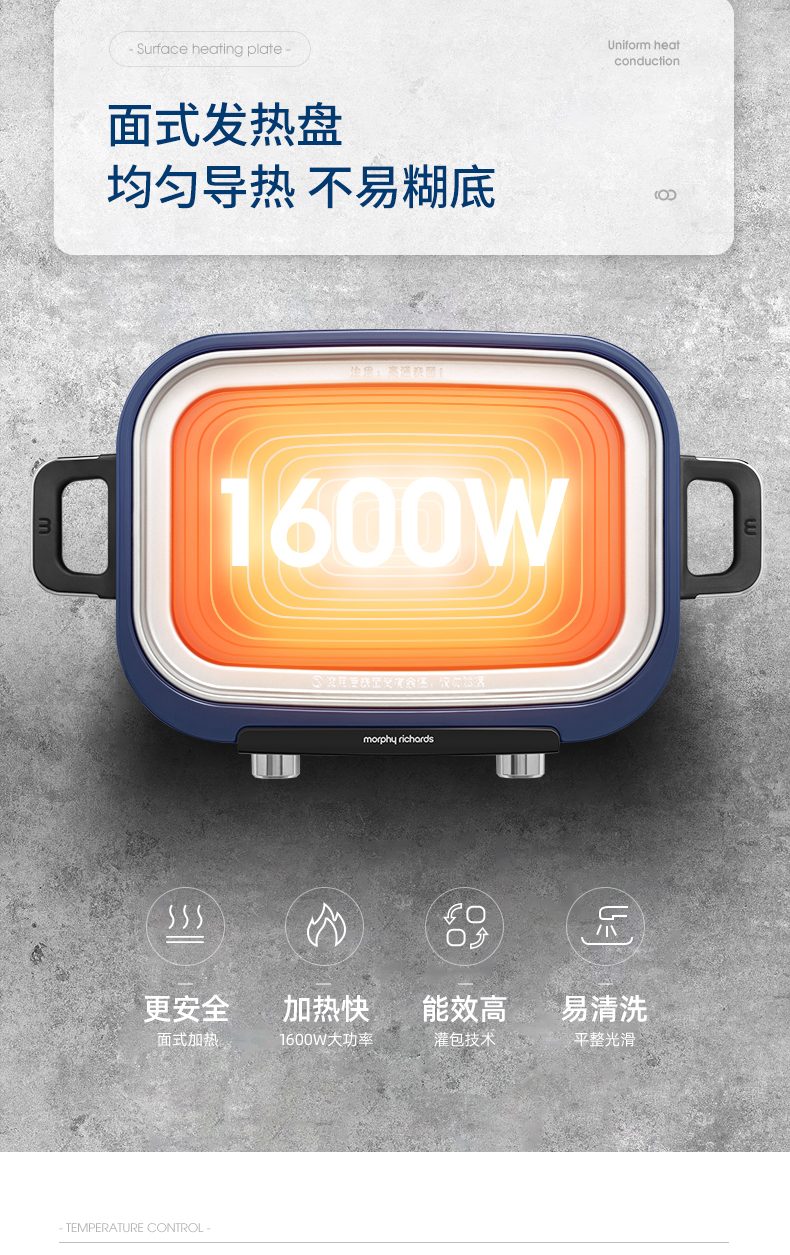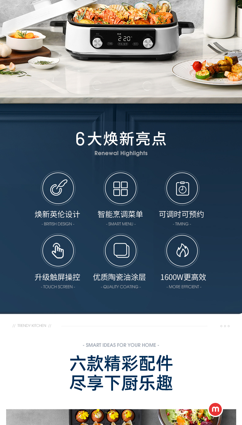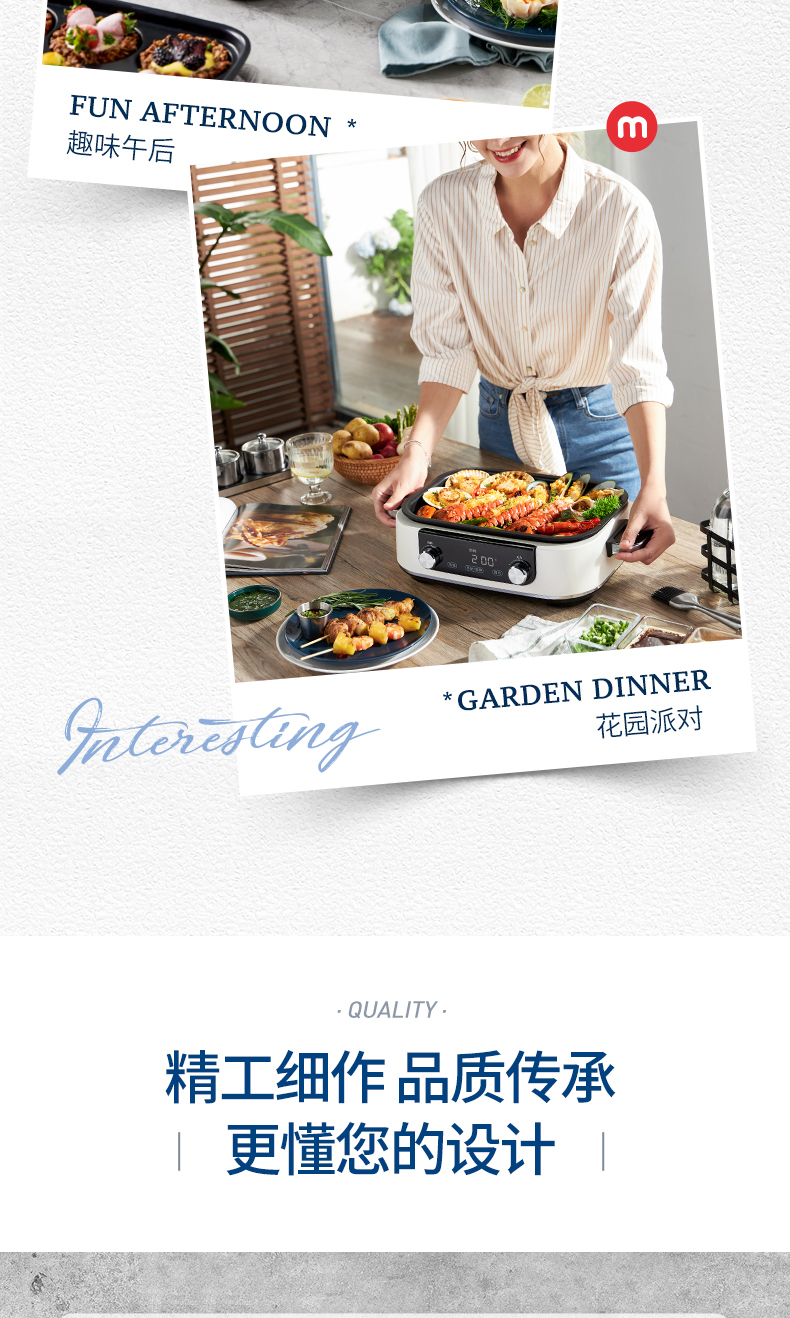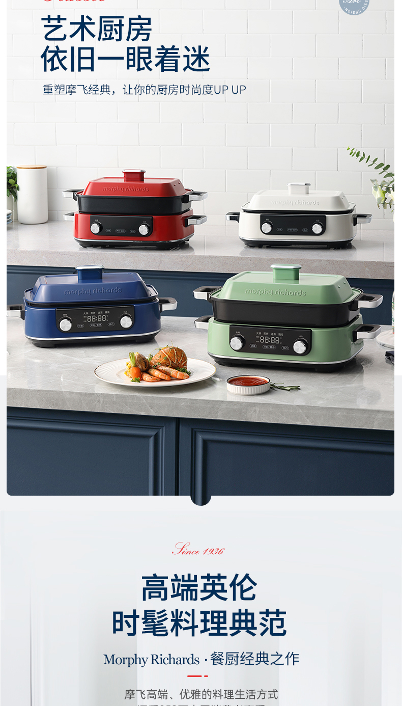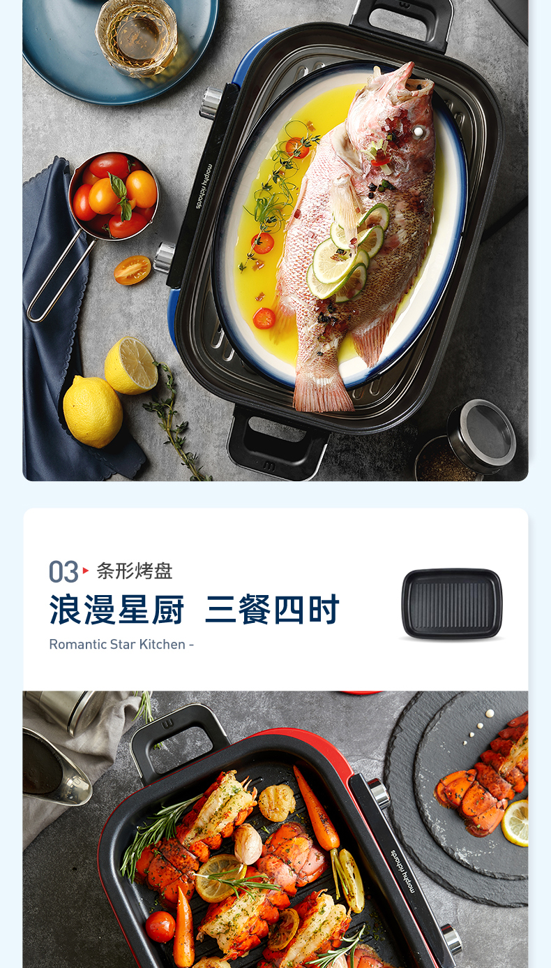摩飞-多功能料理锅二代MR-9099火锅烤肉涮一体家用蒸煮炒煎电烤锅M2【JD】
