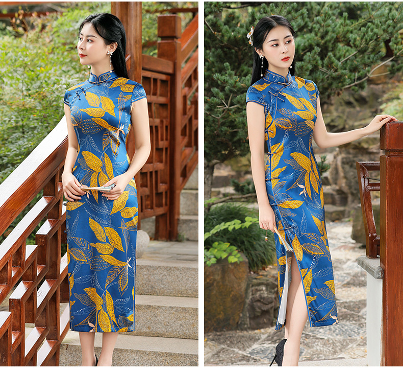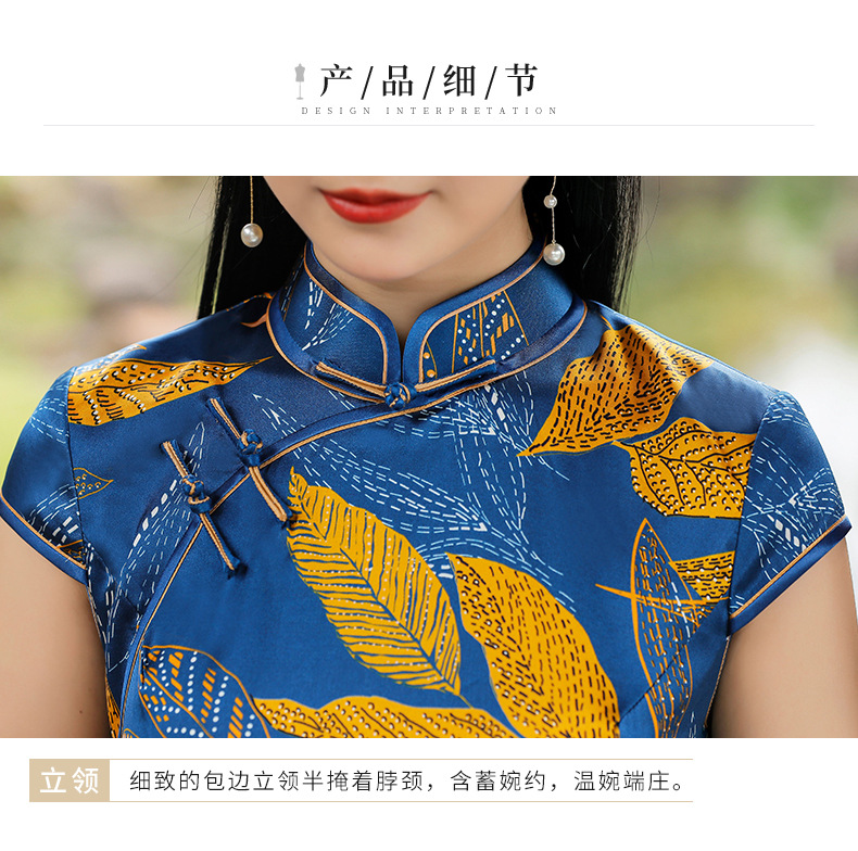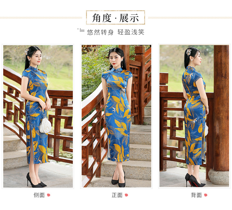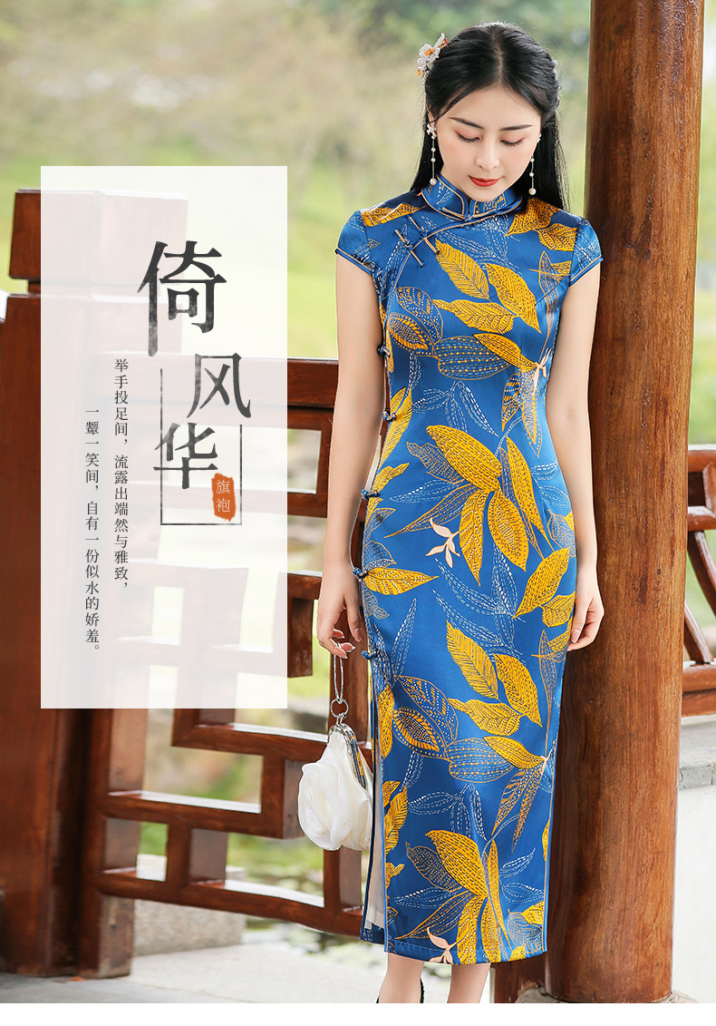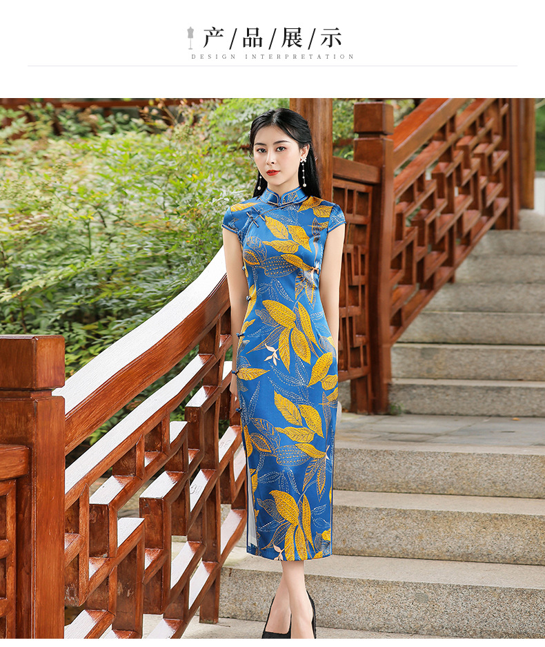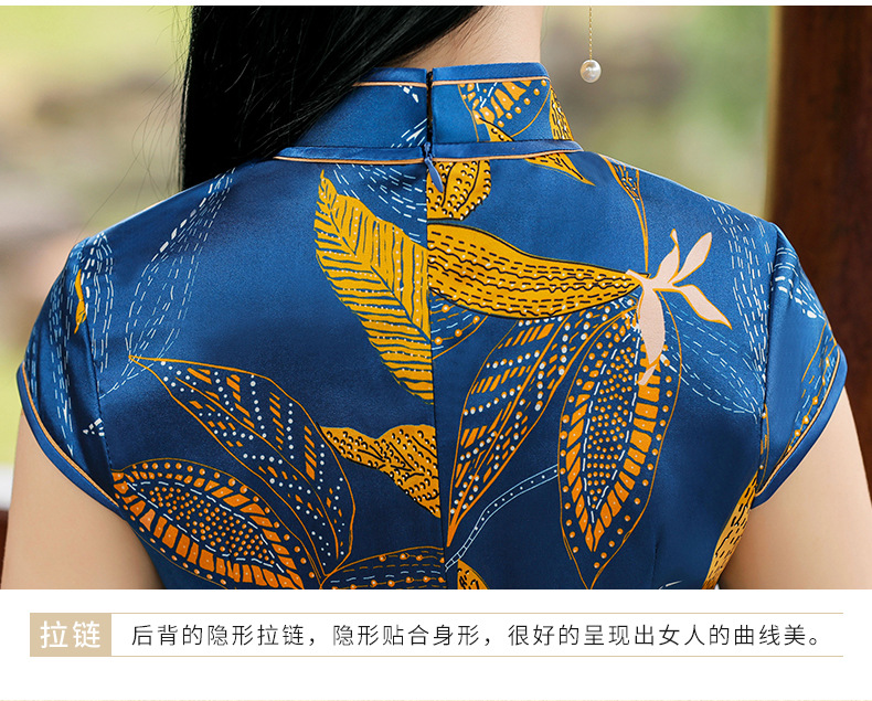 TZRY-C2013春夏款中长款真丝旗袍 低调档次长款时尚立领旗袍