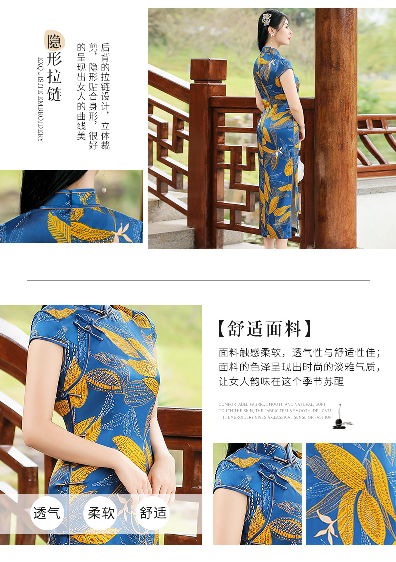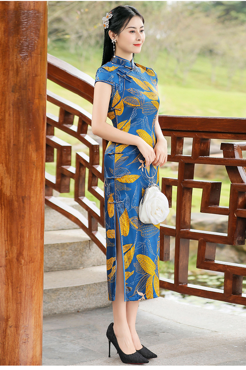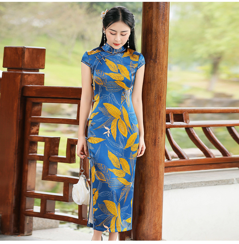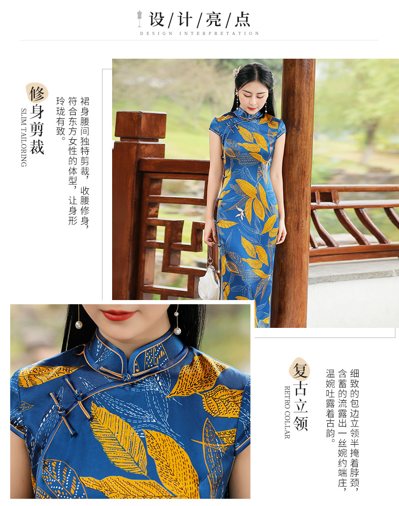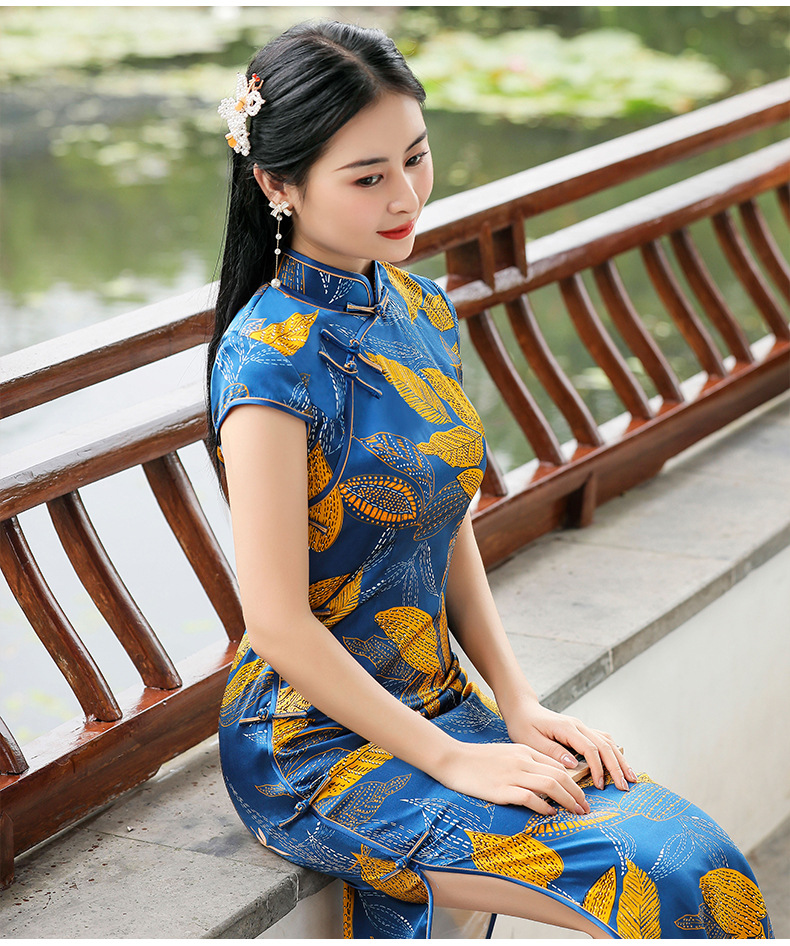 TZRY-C2013春夏款中长款真丝旗袍 低调档次长款时尚立领旗袍