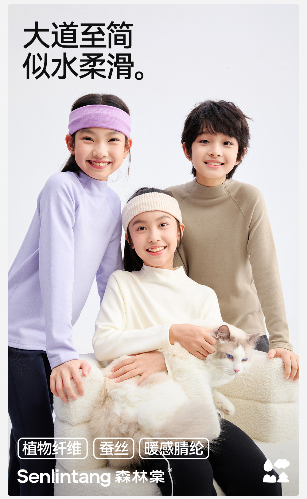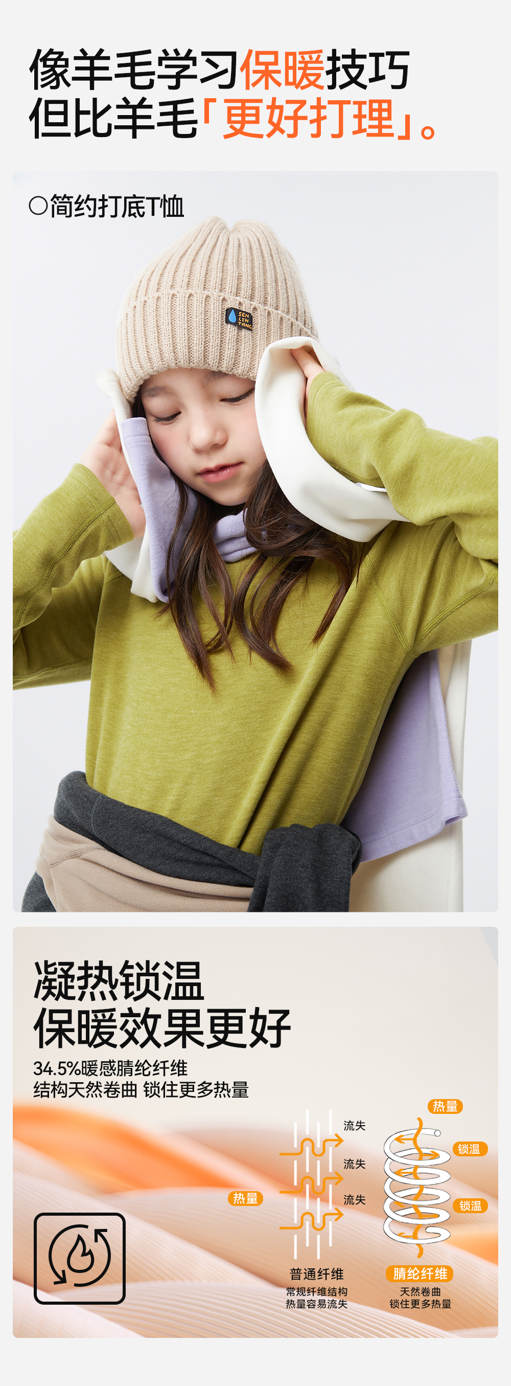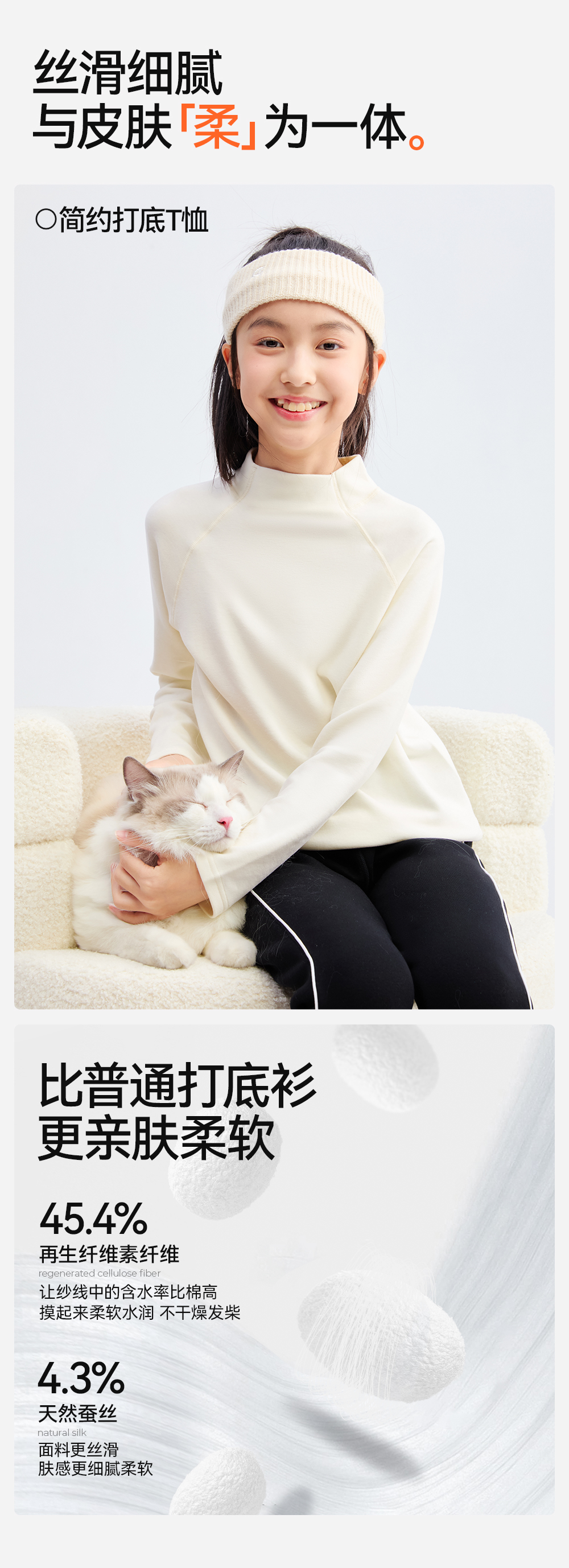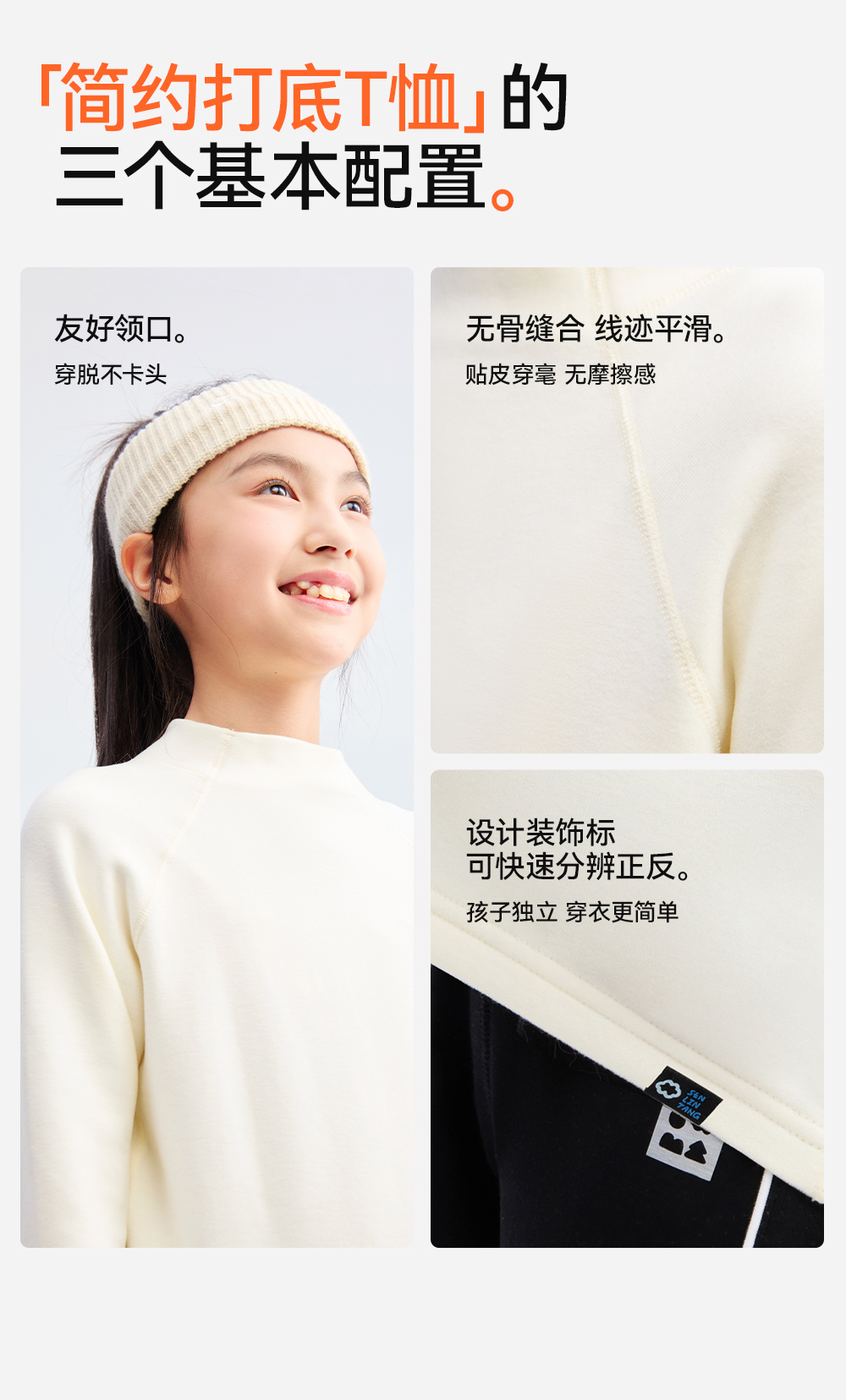 【简约打底T恤】森林棠25冬季新款亲肤柔软儿童套头纯色保暖打底衣80342401