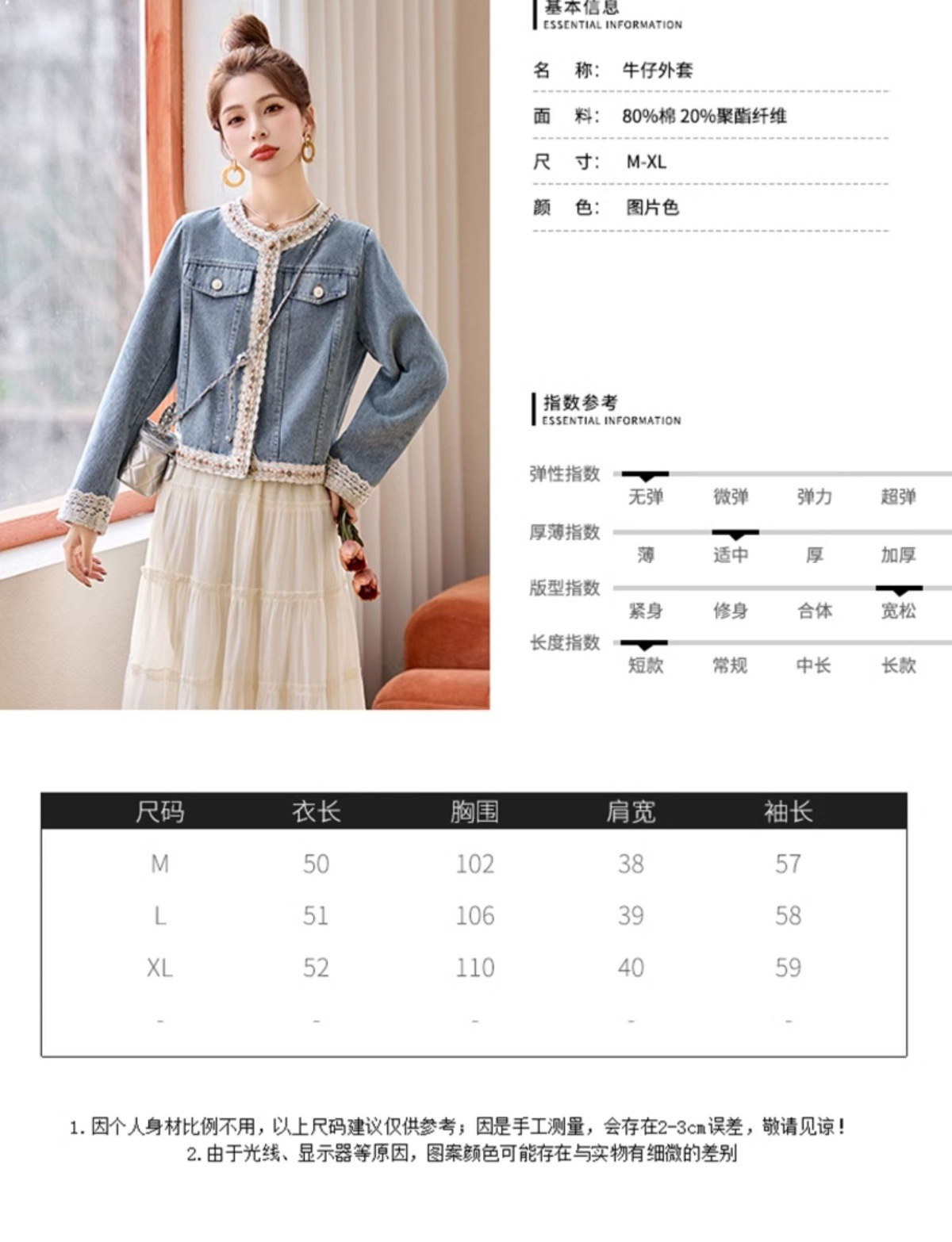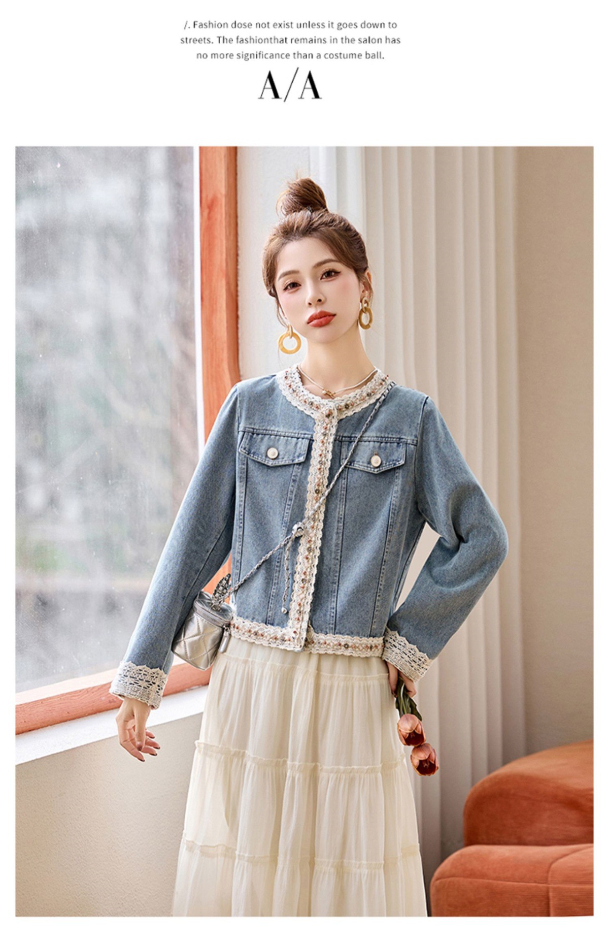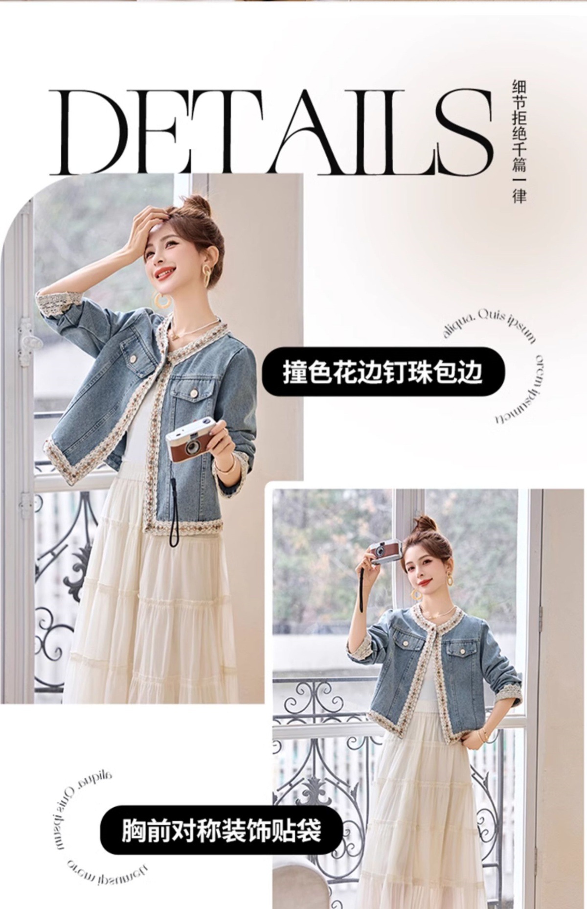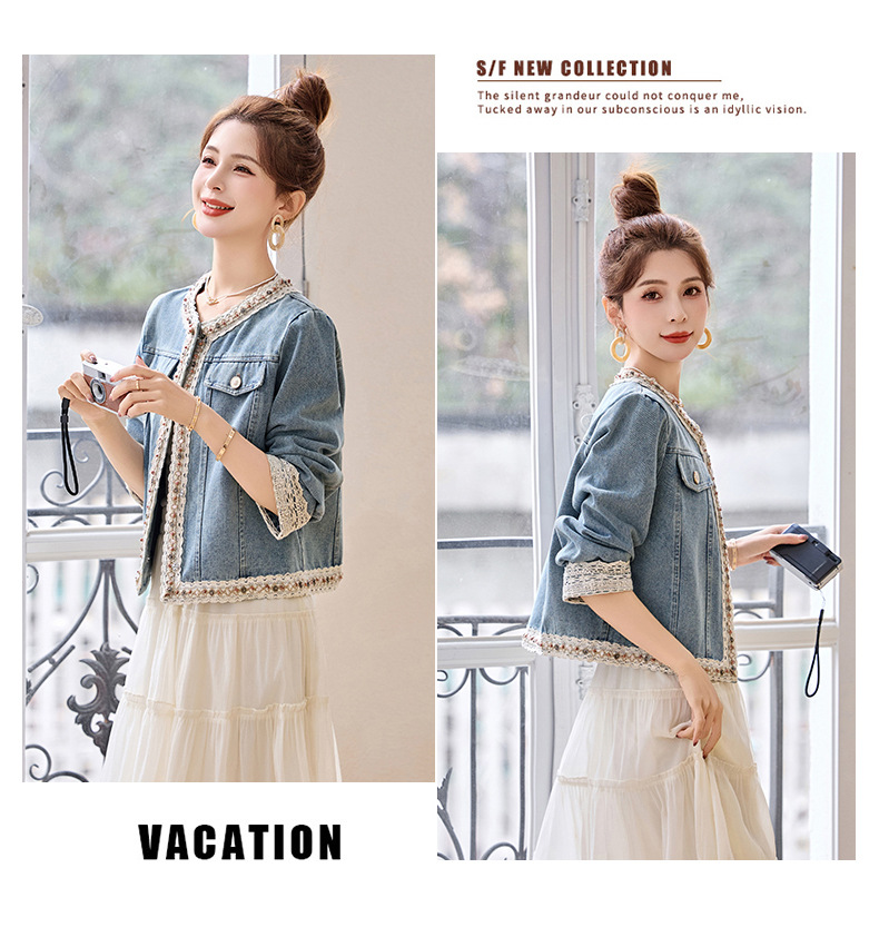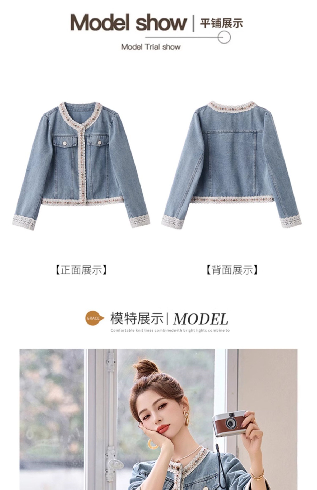 超好看小香风短款上衣,蕾丝拼接洋气牛仔外套HR-LJNA1315