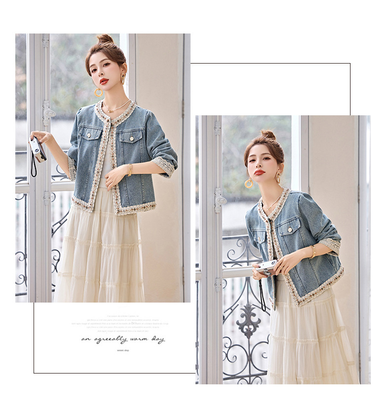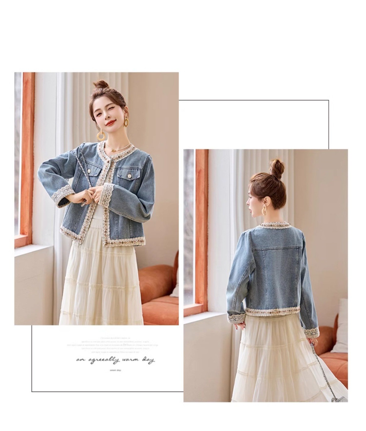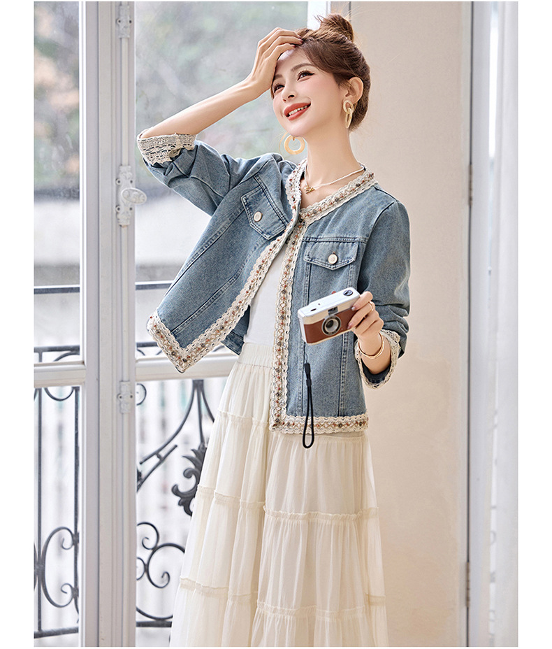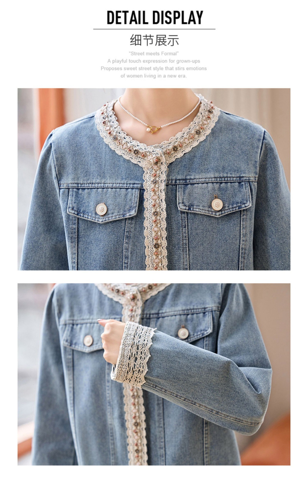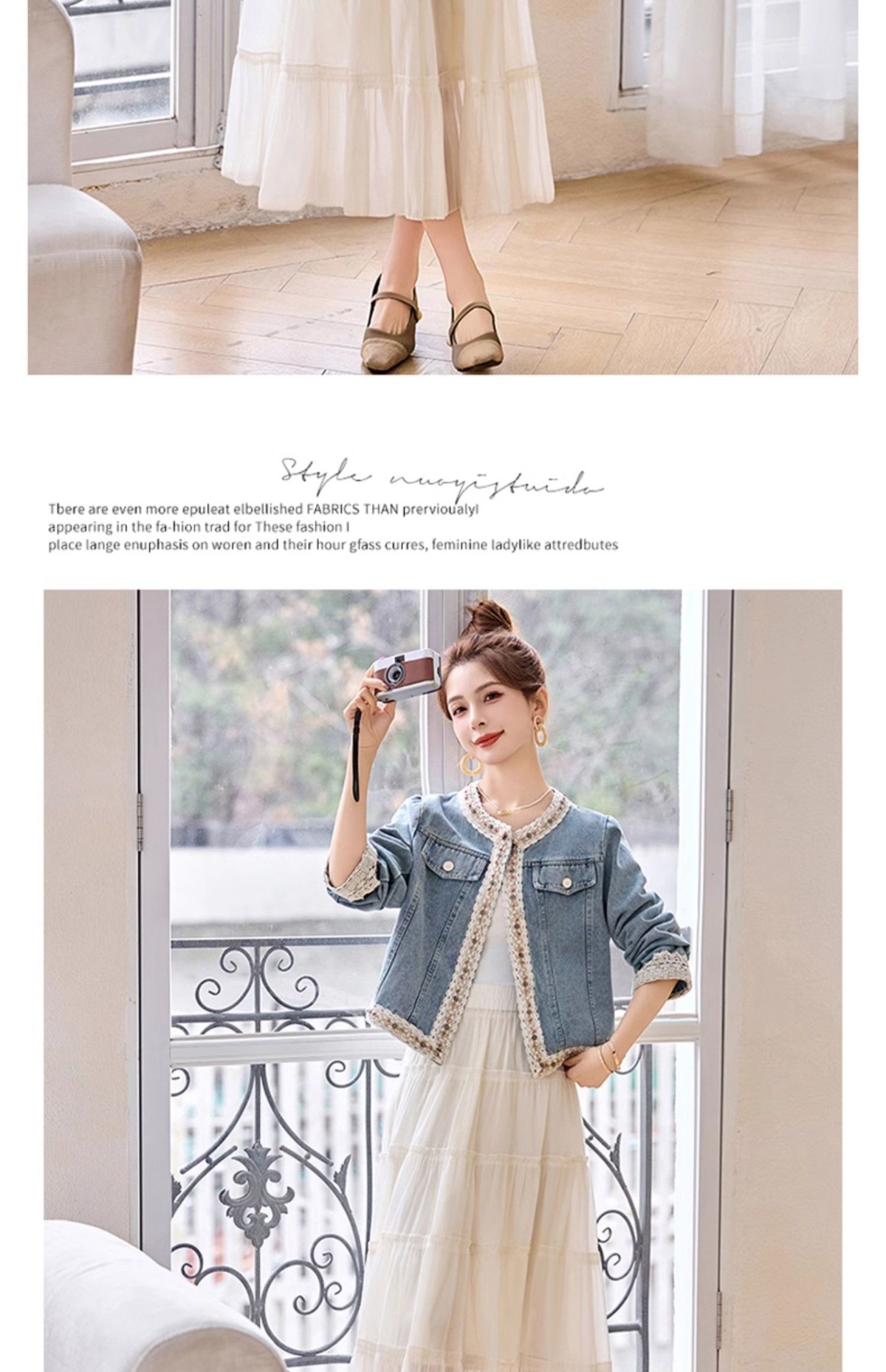 超好看小香风短款上衣,蕾丝拼接洋气牛仔外套HR-LJNA1315