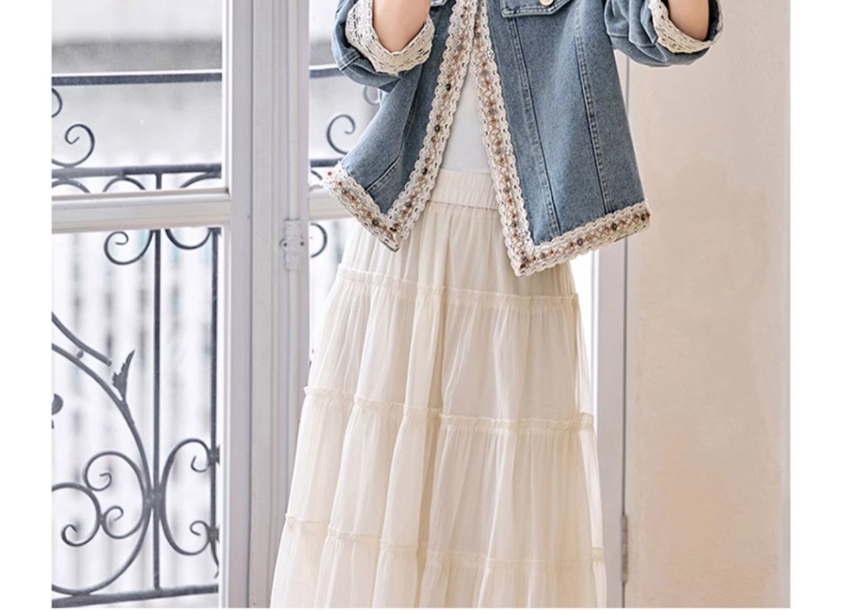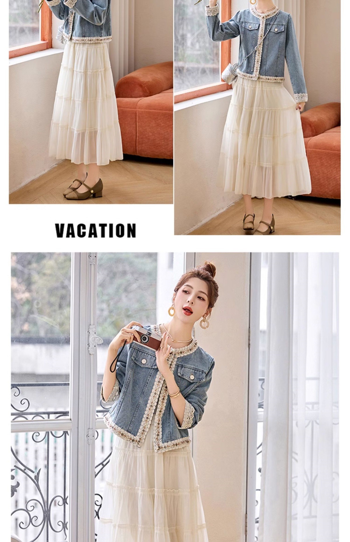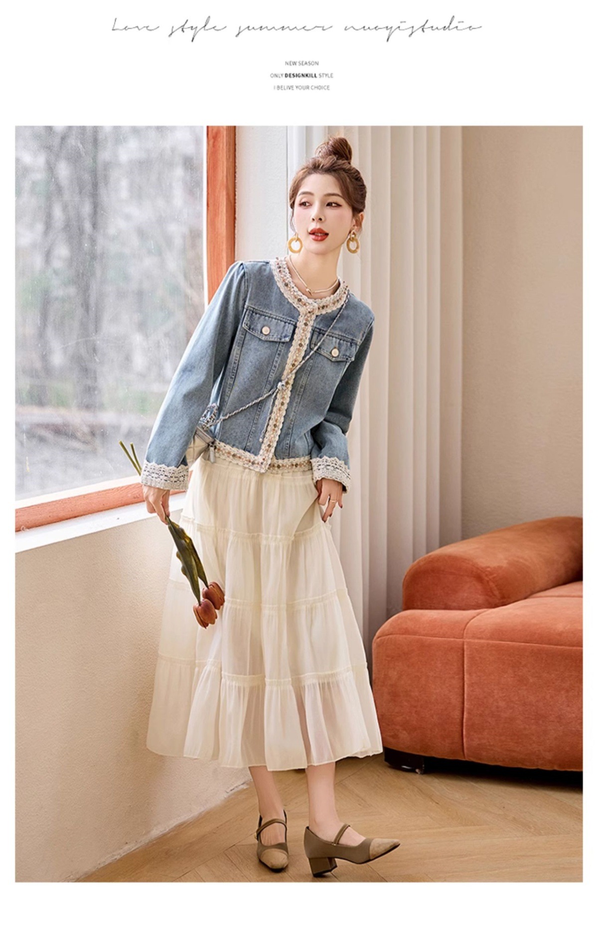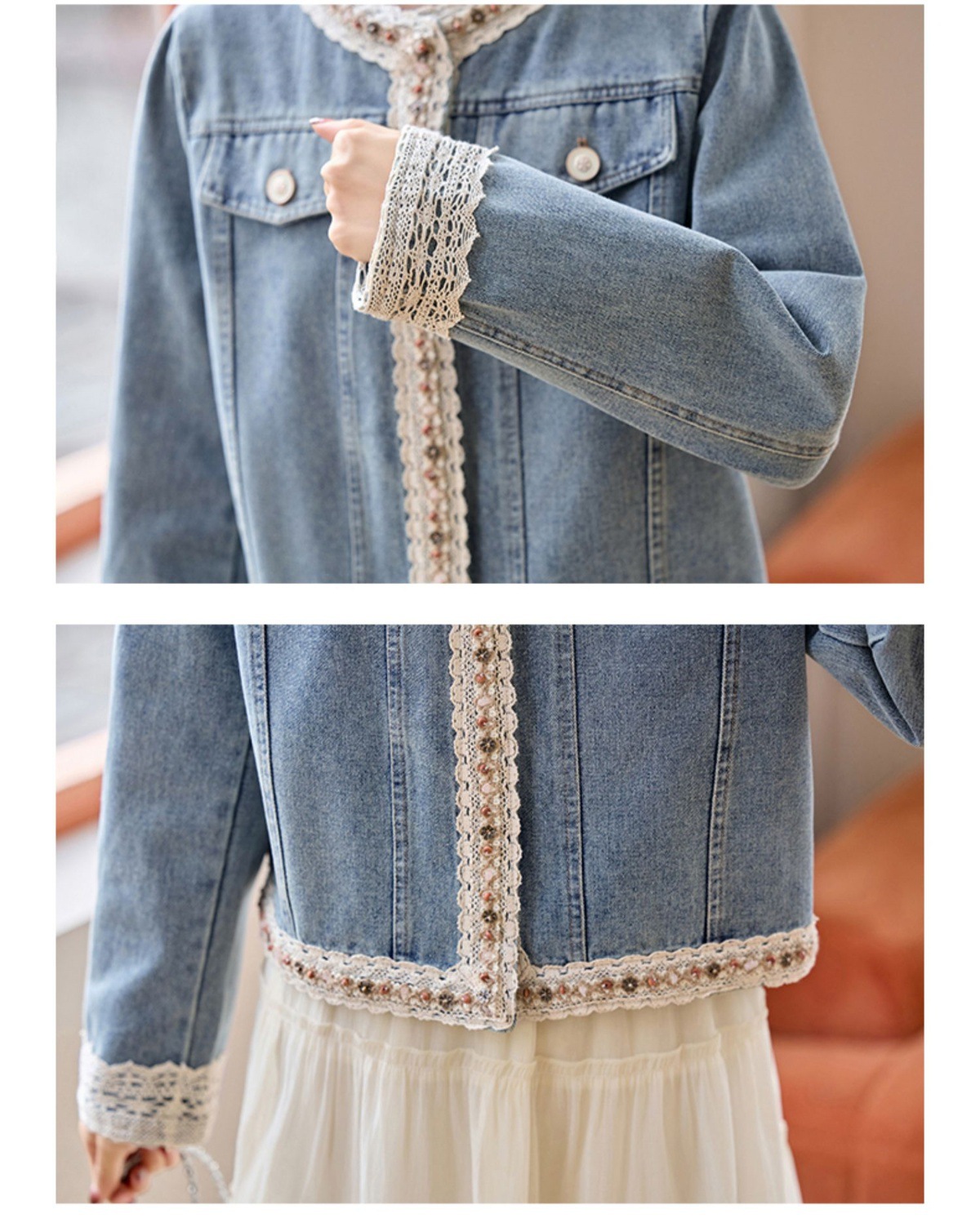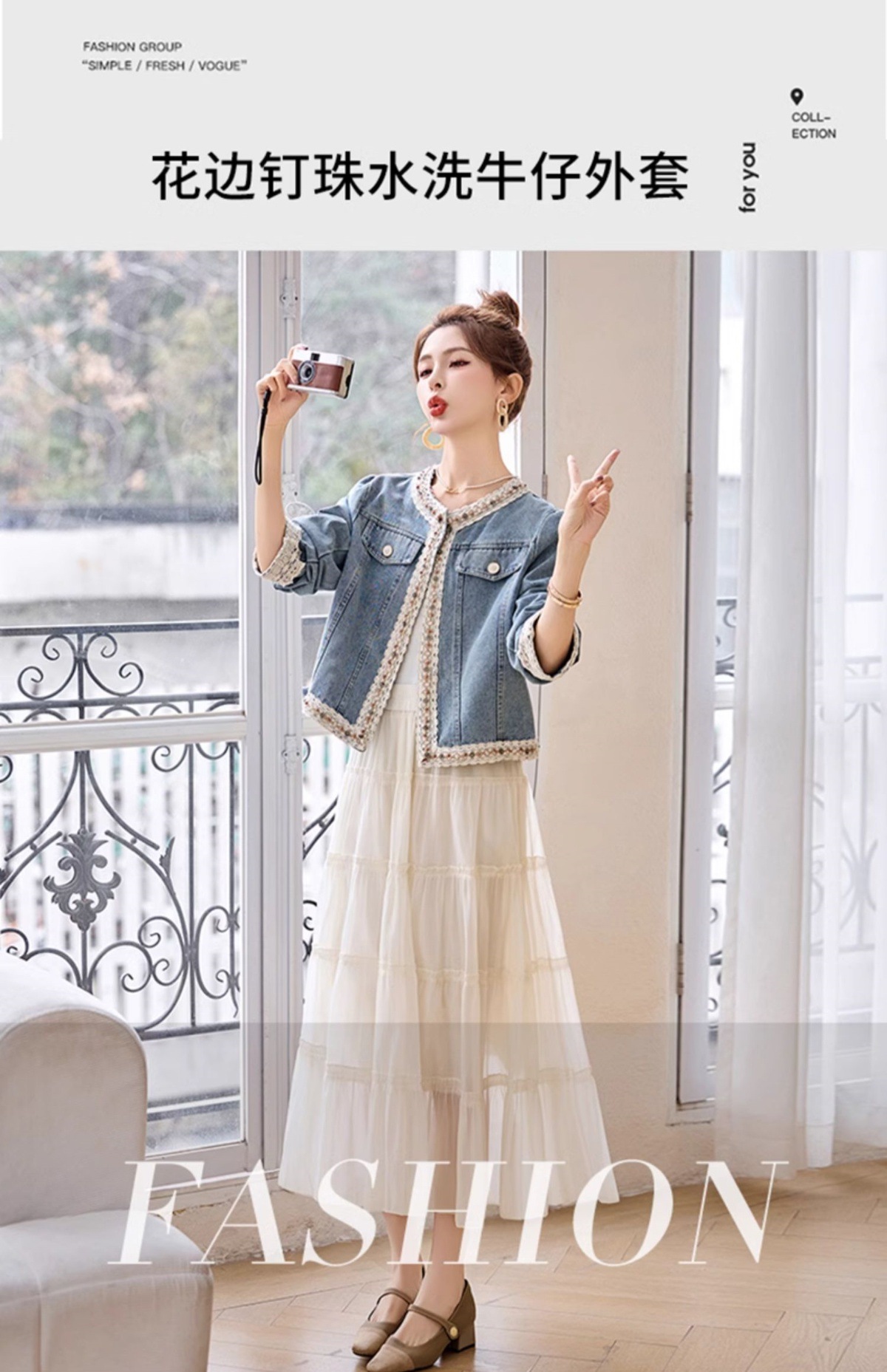超好看小香风短款上衣,蕾丝拼接洋气牛仔外套HR-LJNA1315