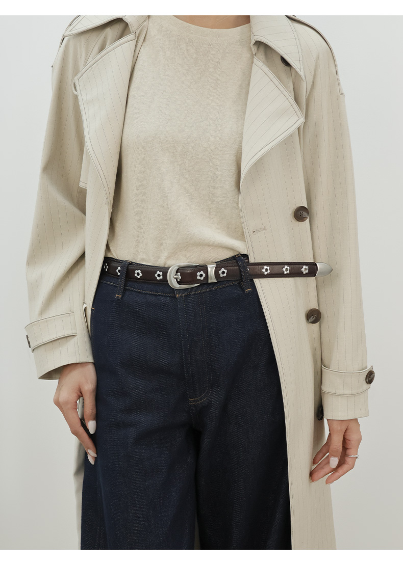 登白DENGBAI 梅花扣自然做旧腰带原生头层牛皮DB3514