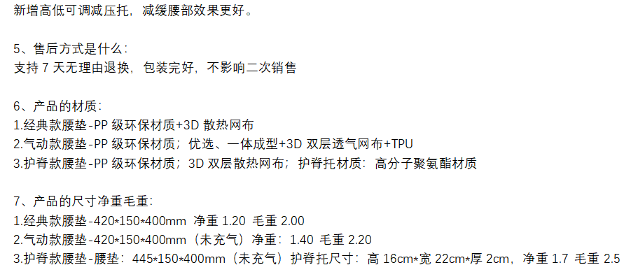 小提示:经典款是基础款,气动款有气动装置,护脊款在气动款的基础上加入护脊托