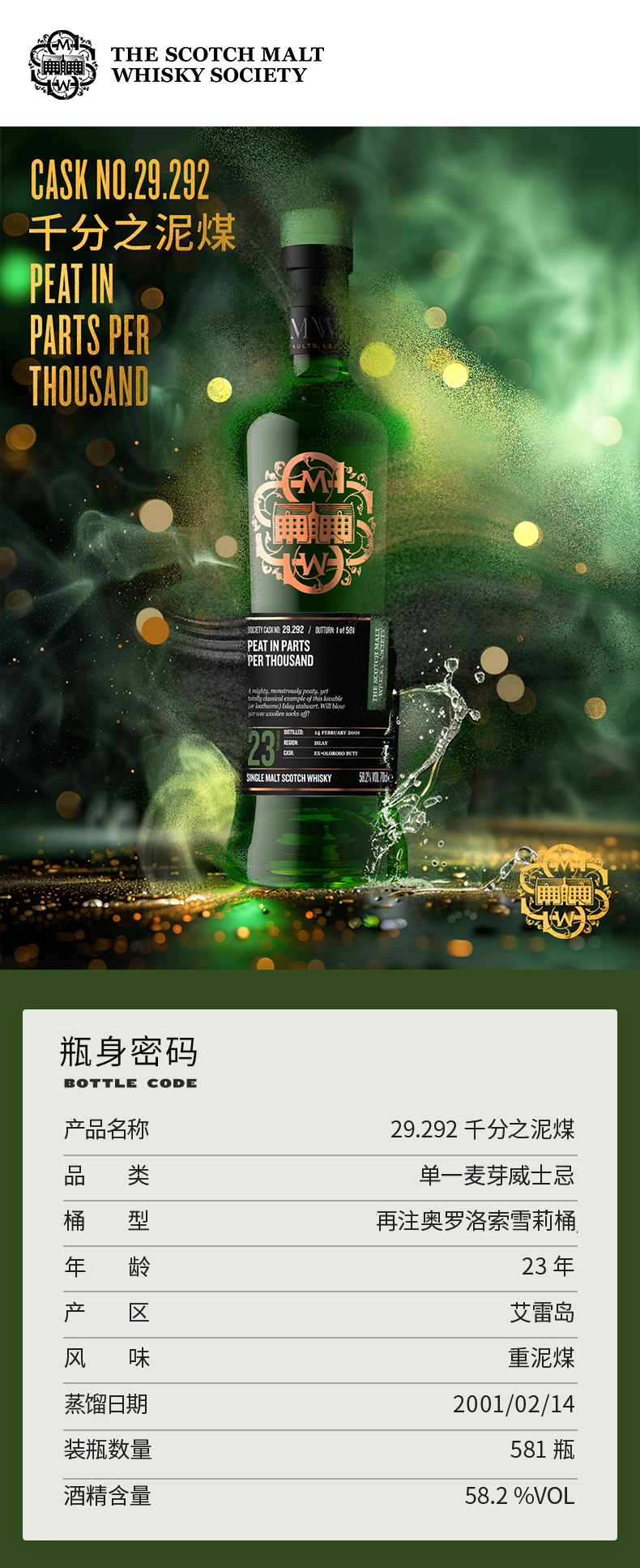 SMWS苏格兰麦芽威士忌协会 甄选黑标 29.292 千分之泥煤