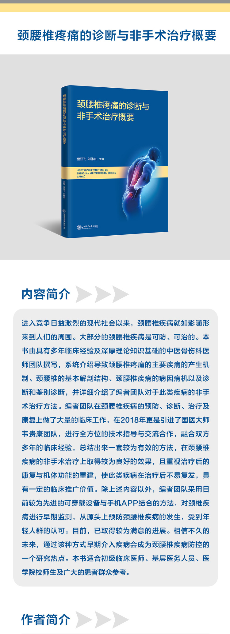 颈腰椎疼痛的诊断与非手术治疗概要 9787313239938 曹亚飞 刘伟东