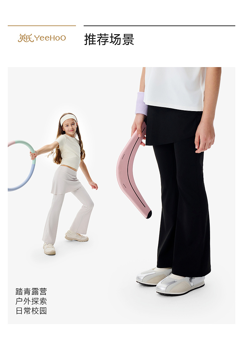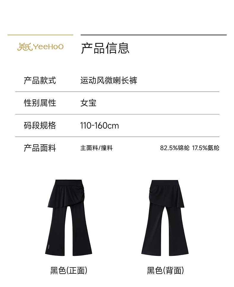 【柔滑垂顺】英氏儿童长裤女童针织长裤休闲百搭微喇裤中大童春秋韩式时尚长裤