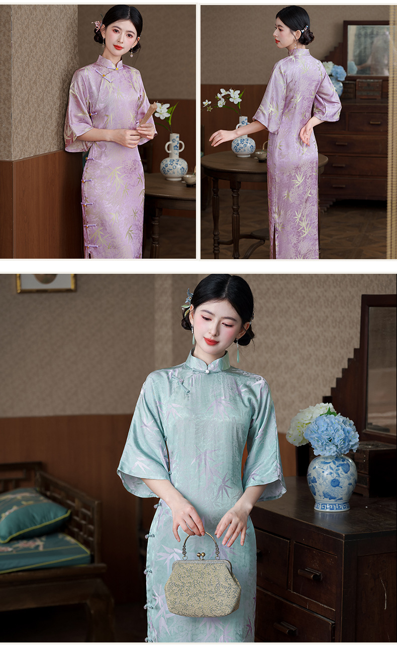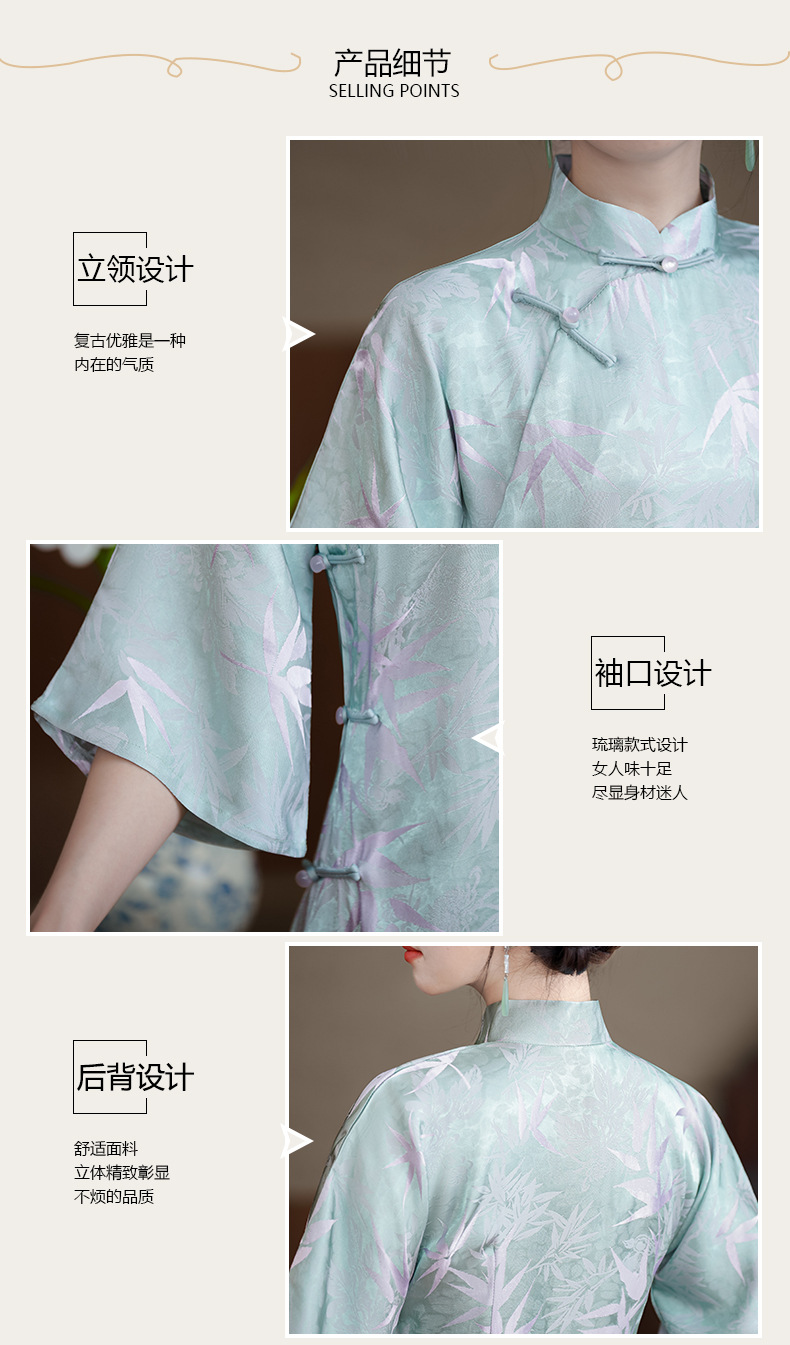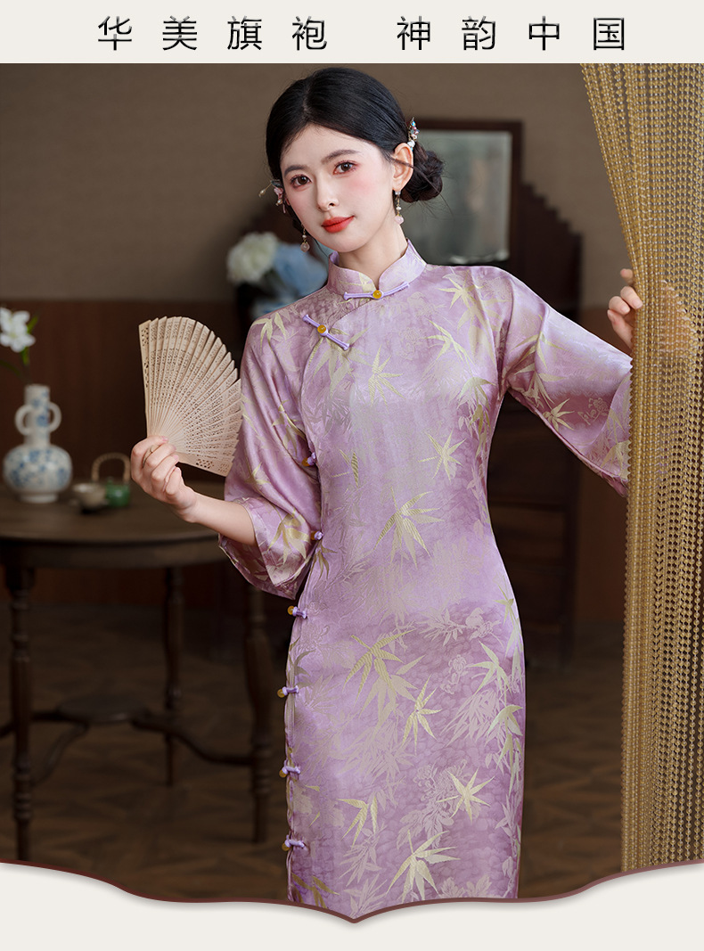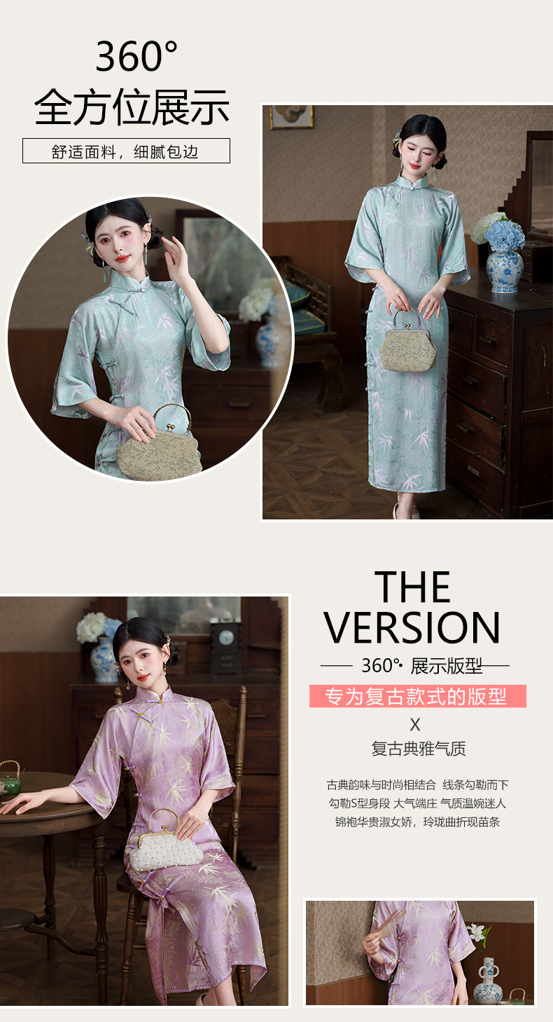 提花古典优雅,复古珍珠八扣民国风旗袍HYM-23635