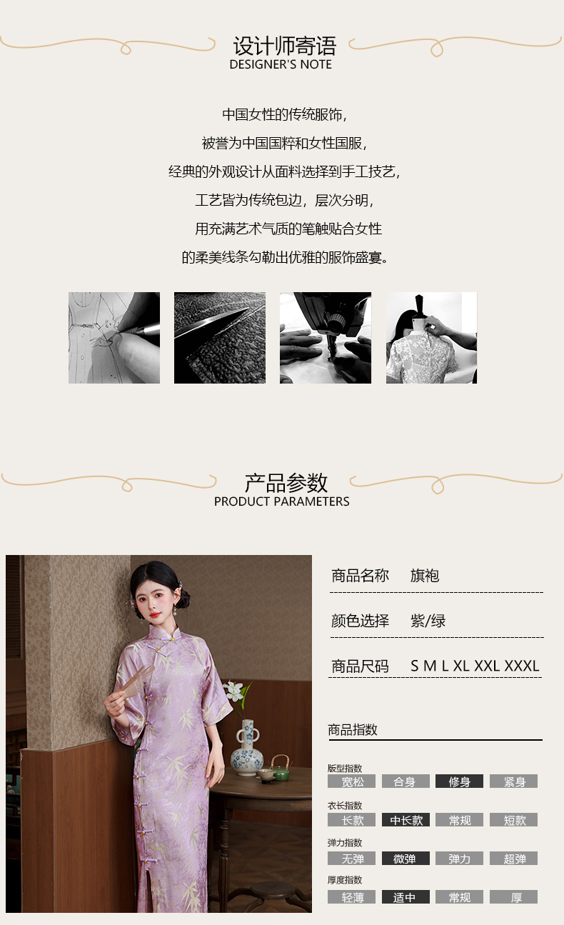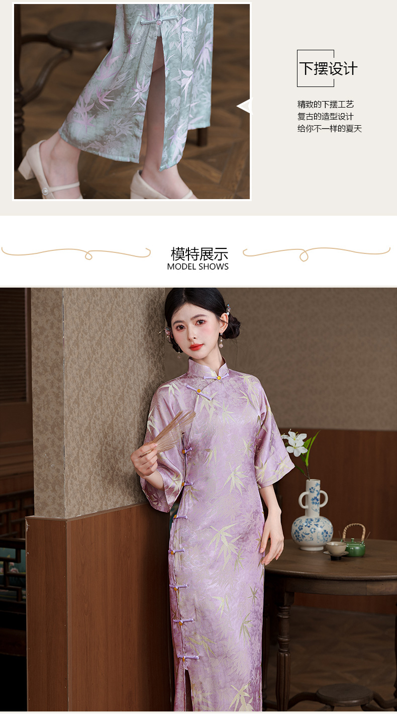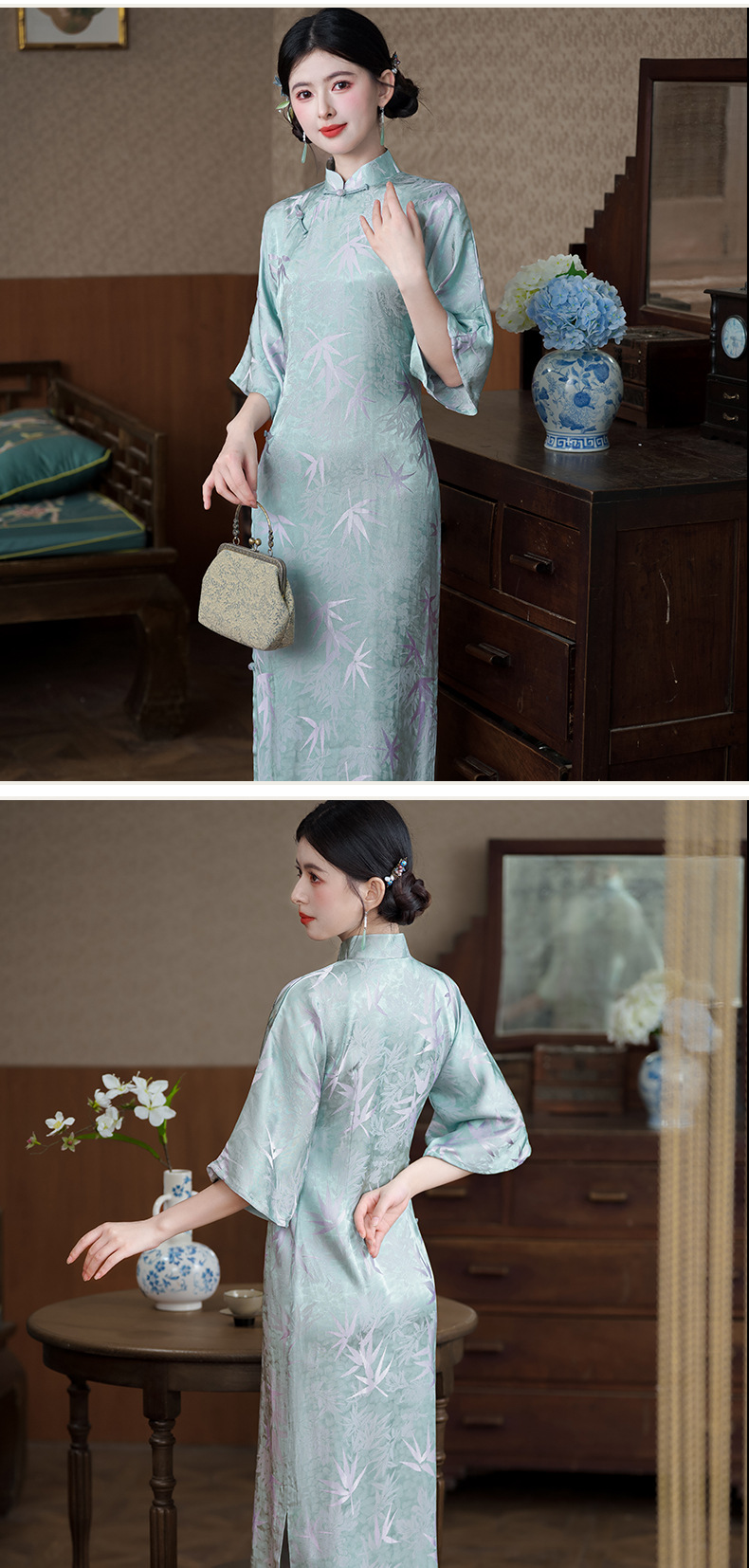 提花古典优雅,复古珍珠八扣民国风旗袍HYM-23635