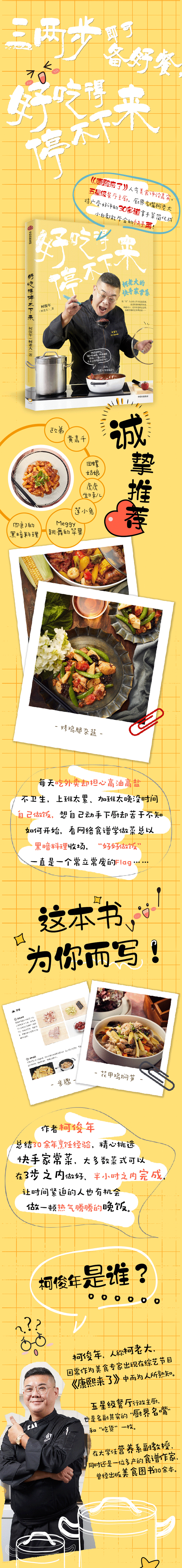 柯老大的家常菜谱简单易懂,能让你轻松变大厨。这不仅是一本让人看了默默咽口水的食谱,更是一本生活美学书,看过之后,立马儿有要下厨的冲动。