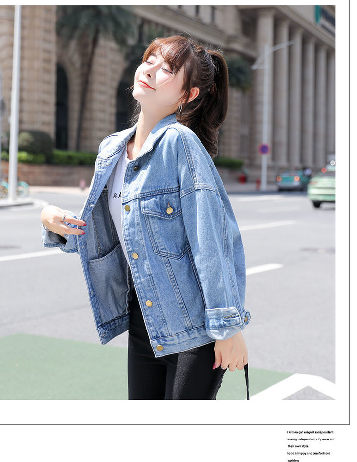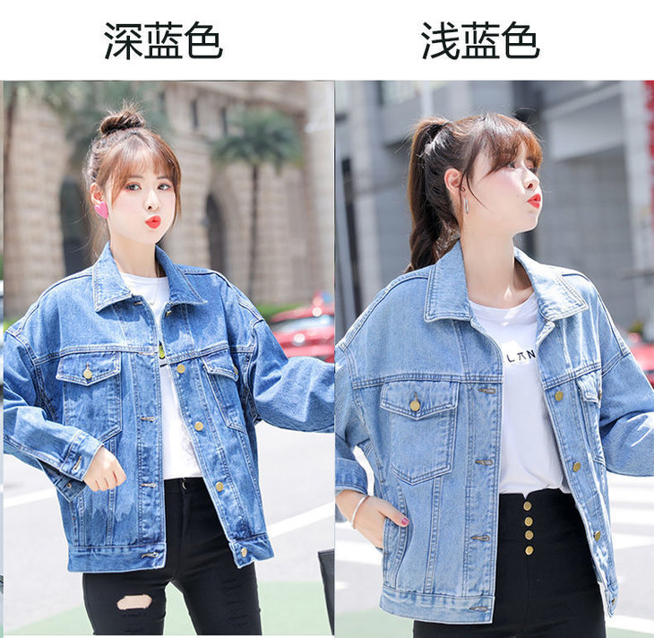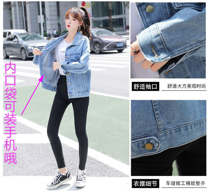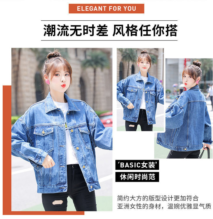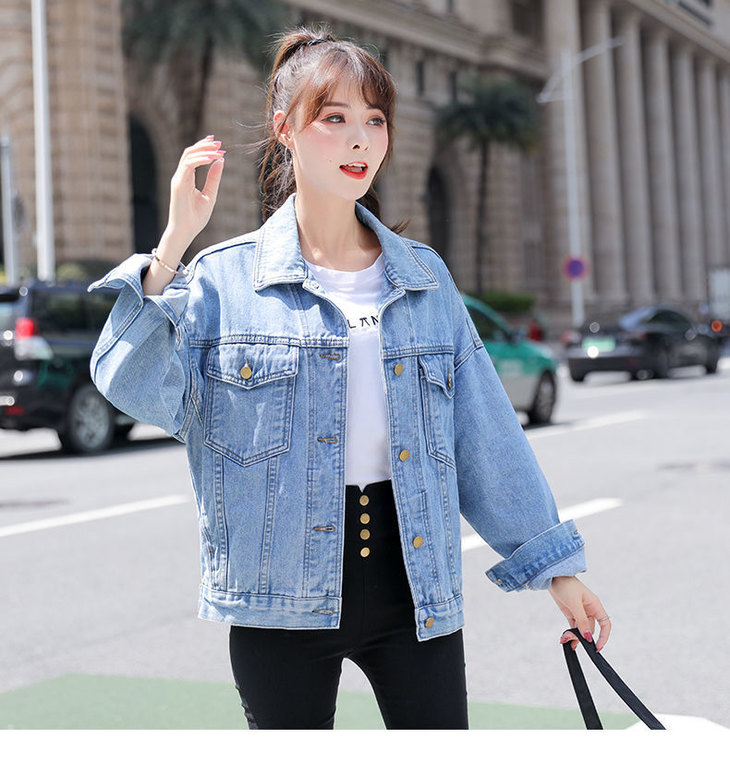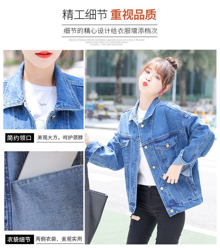 YLFS-PPP新款韩版时尚气质宽松翻领长袖短款牛仔外套