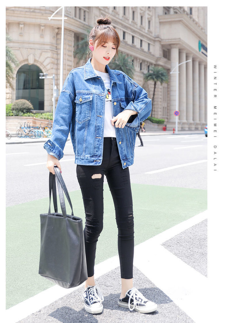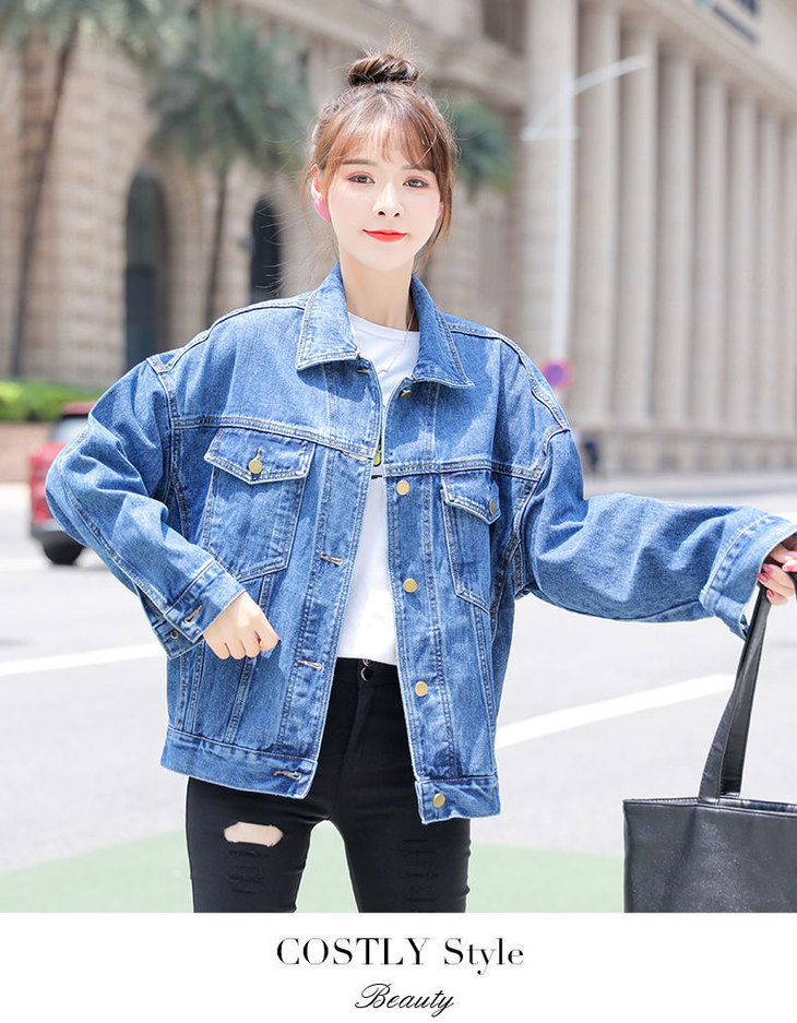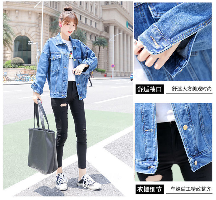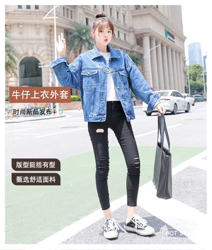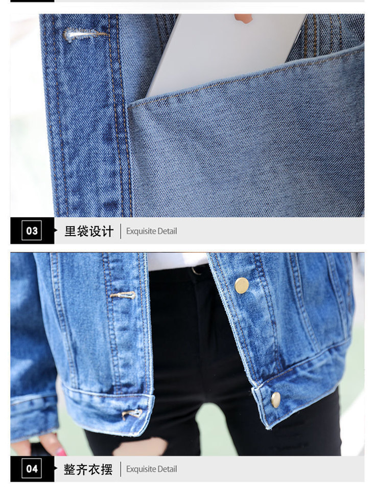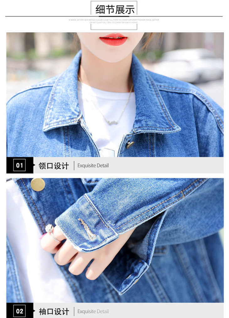 YLFS-PPP新款韩版时尚气质宽松翻领长袖短款牛仔外套