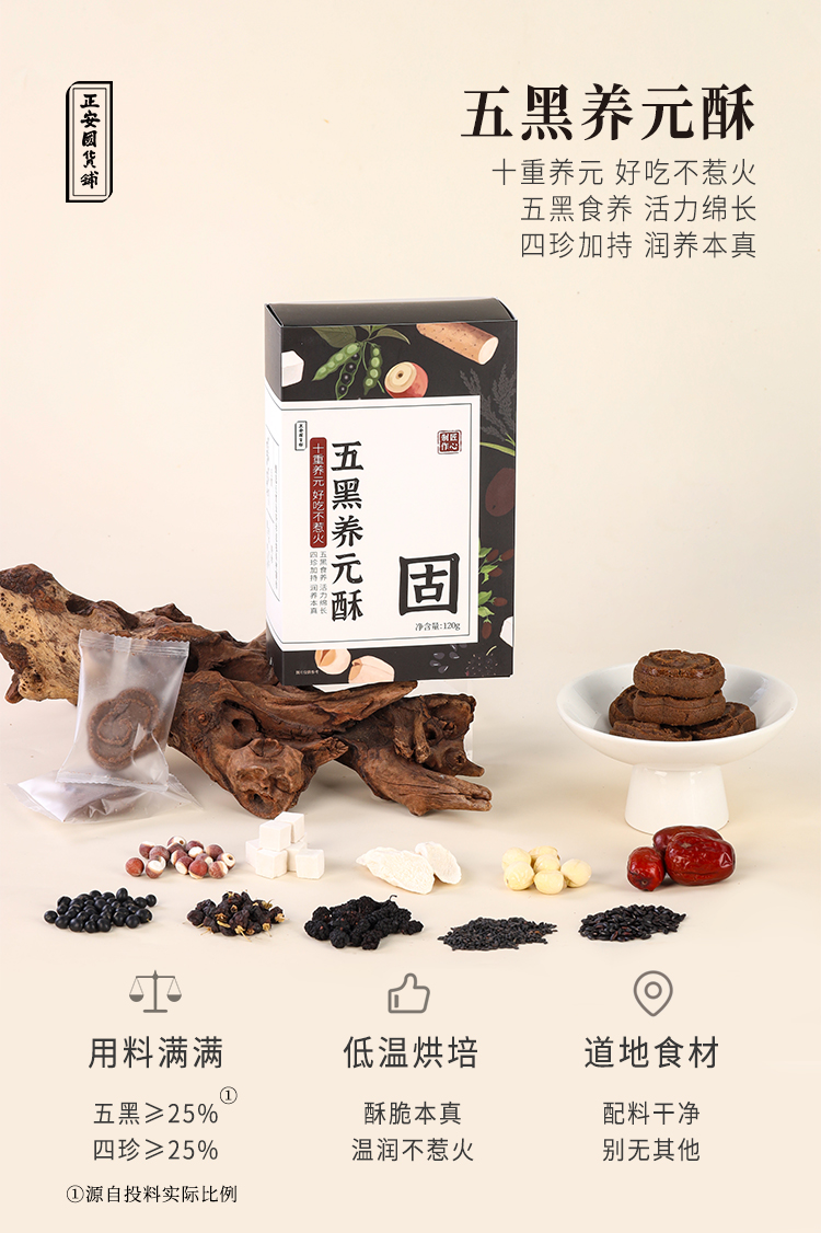 正安 五黑养元酥 十重固本养元 好吸收不惹火 健康小零食下午茶 120g/盒