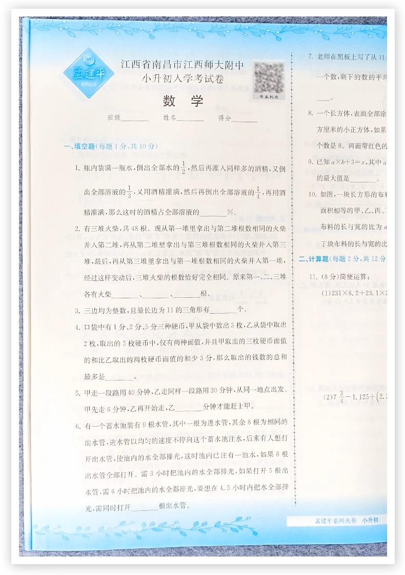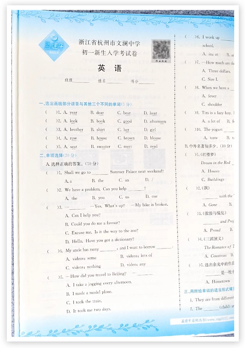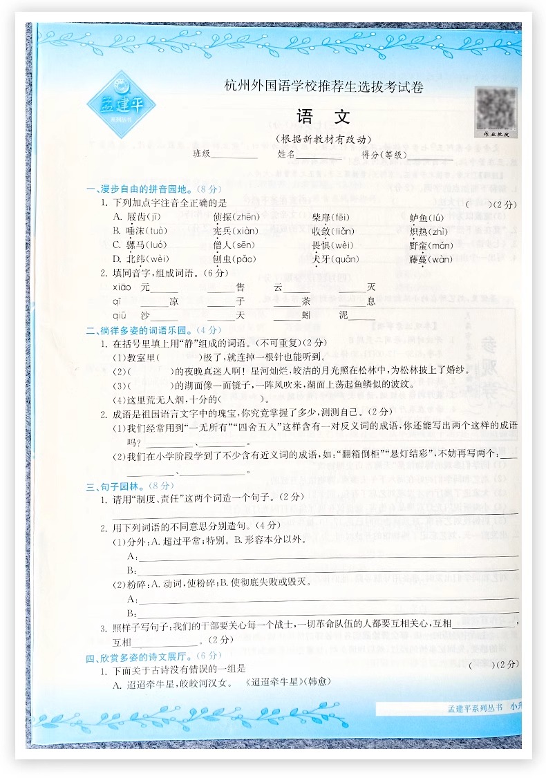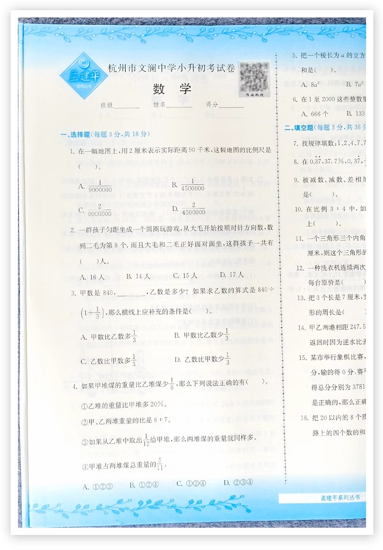 2025新孟建平名校招生入学考试卷小升初试卷真题卷冲刺毕业总复习