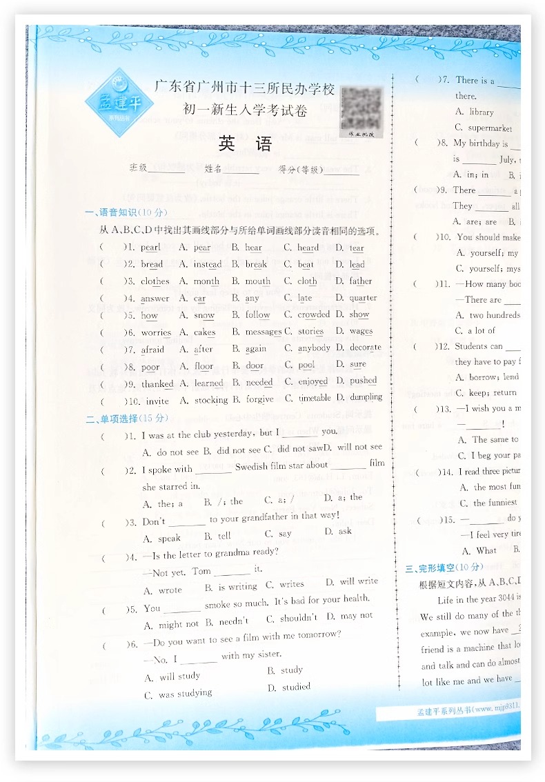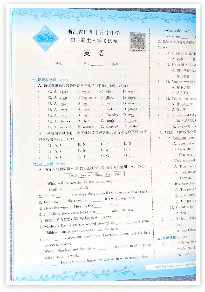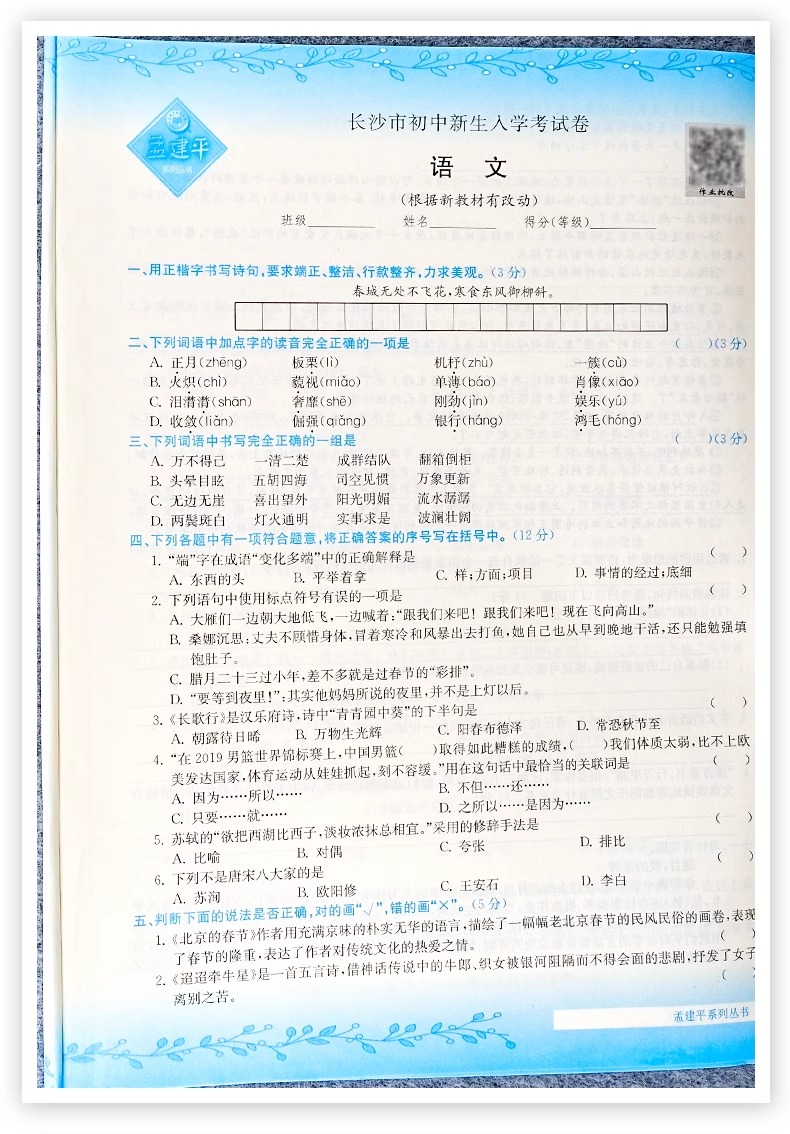 2025新孟建平名校招生入学考试卷小升初试卷真题卷冲刺毕业总复习
