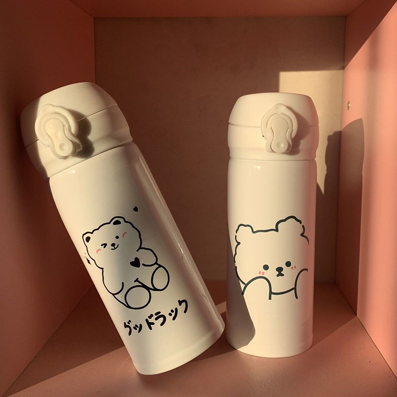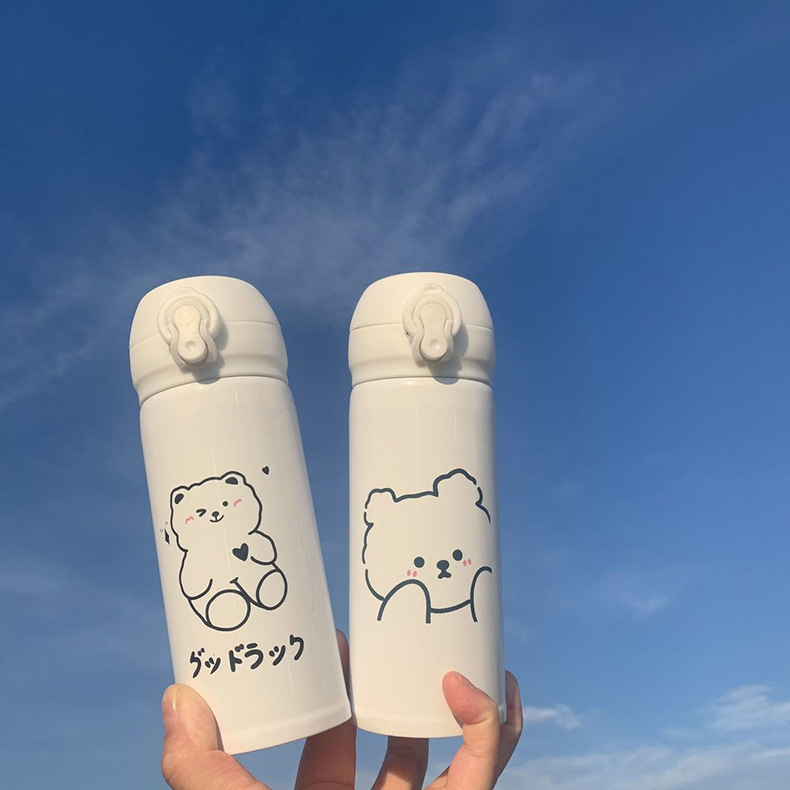 【小熊杯陪你度每日,不锈钢保温,伴你出门走天下!】小熊水杯女生可爱高颜值不锈钢保温杯 大容量便携卡通水杯儿童杯子-QQ