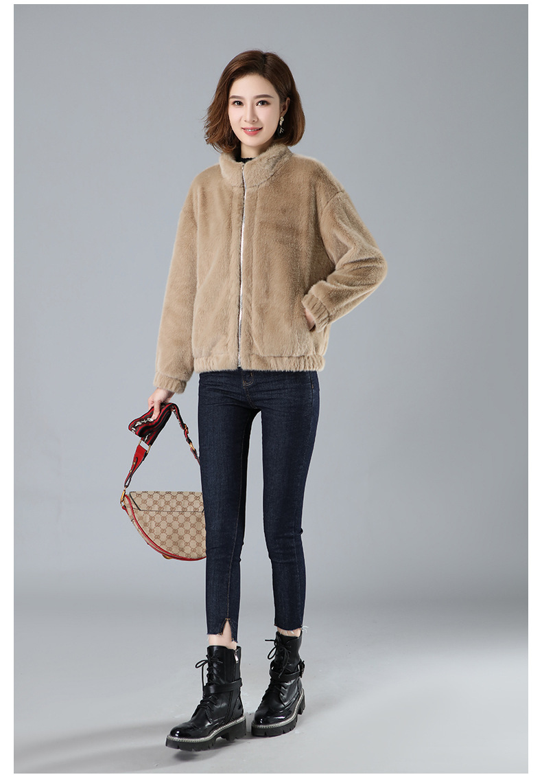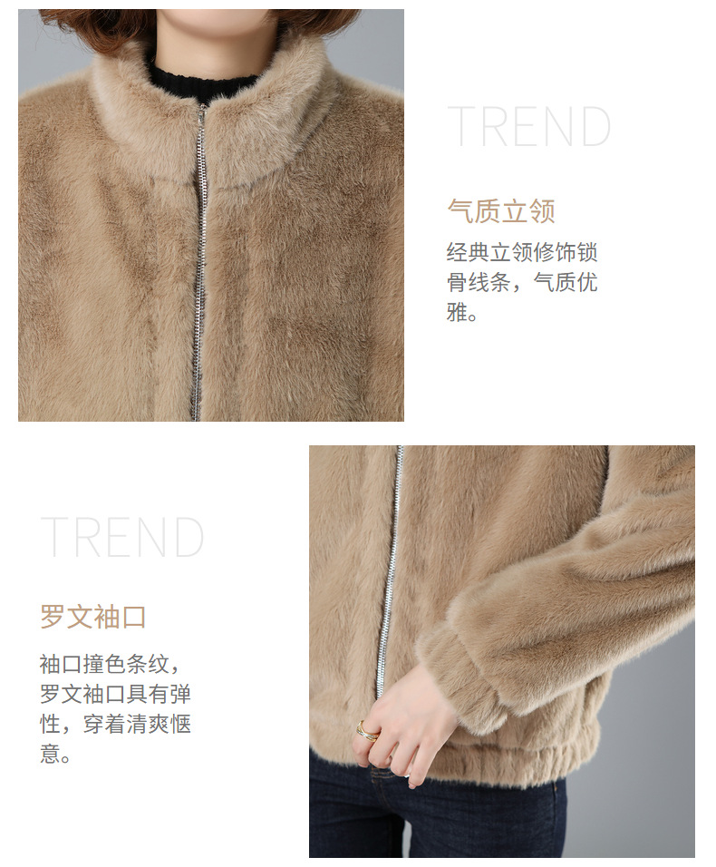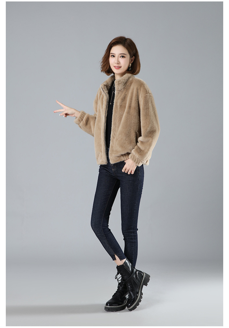 CT-2107 2022新款短款韩版修身女式仿水貂毛外套 秋冬季海宁皮草女士外套