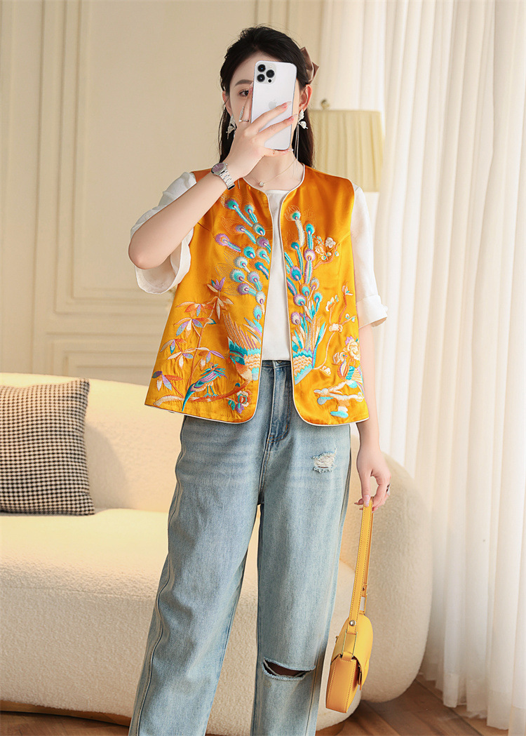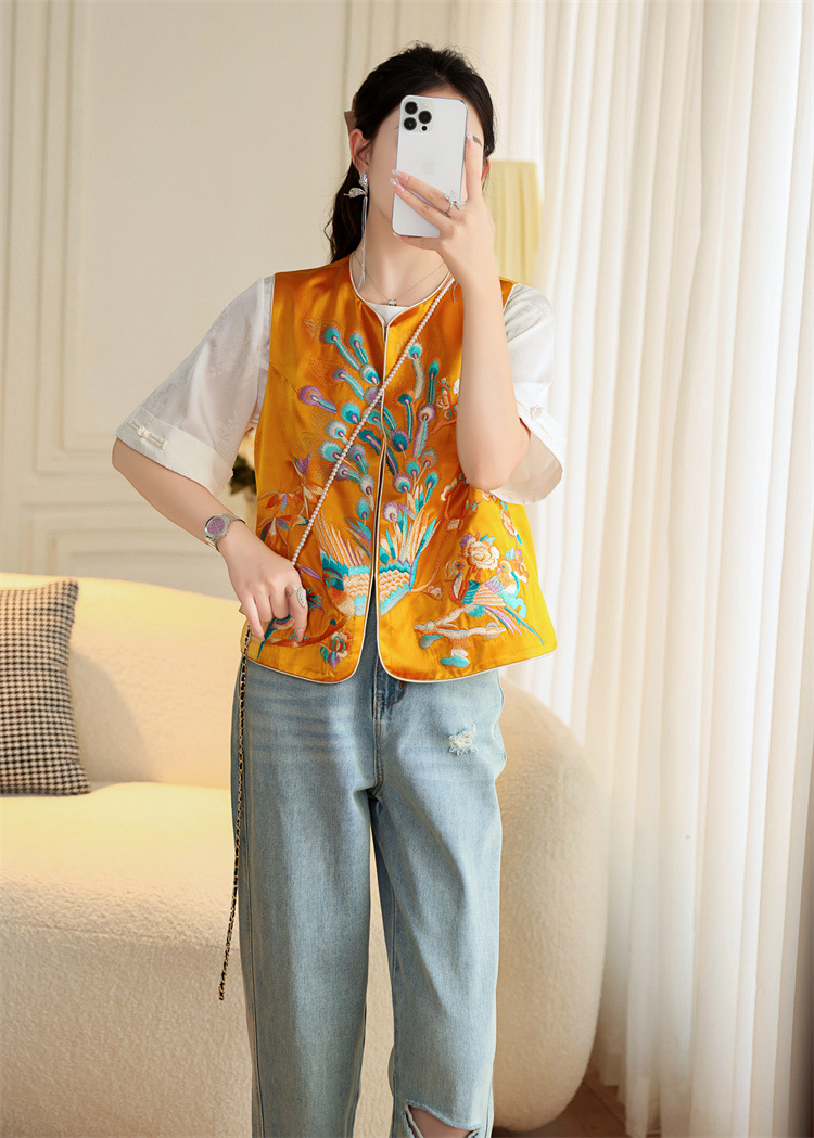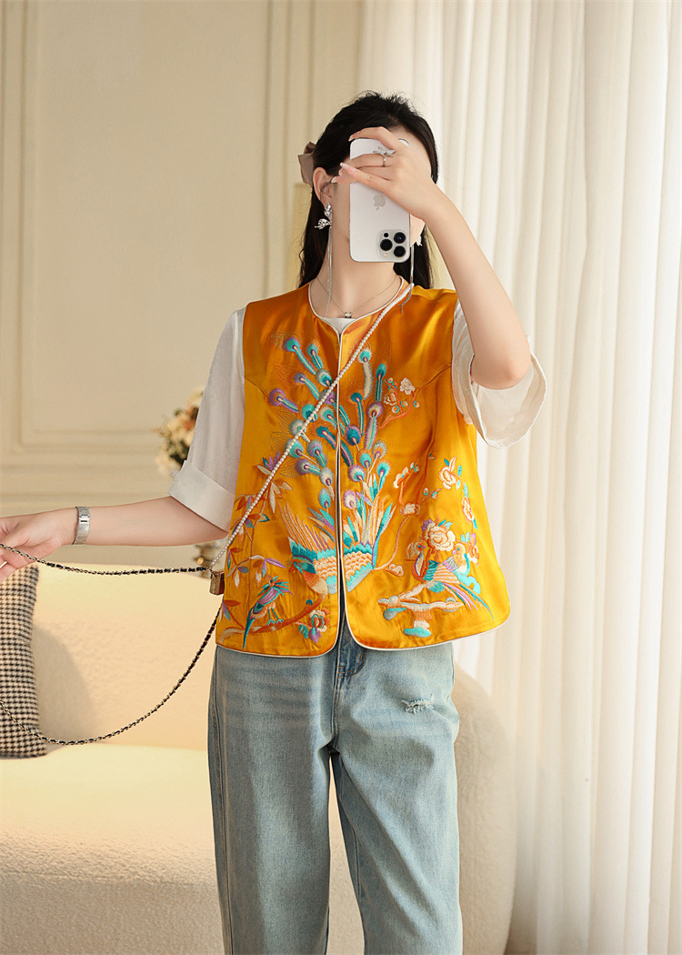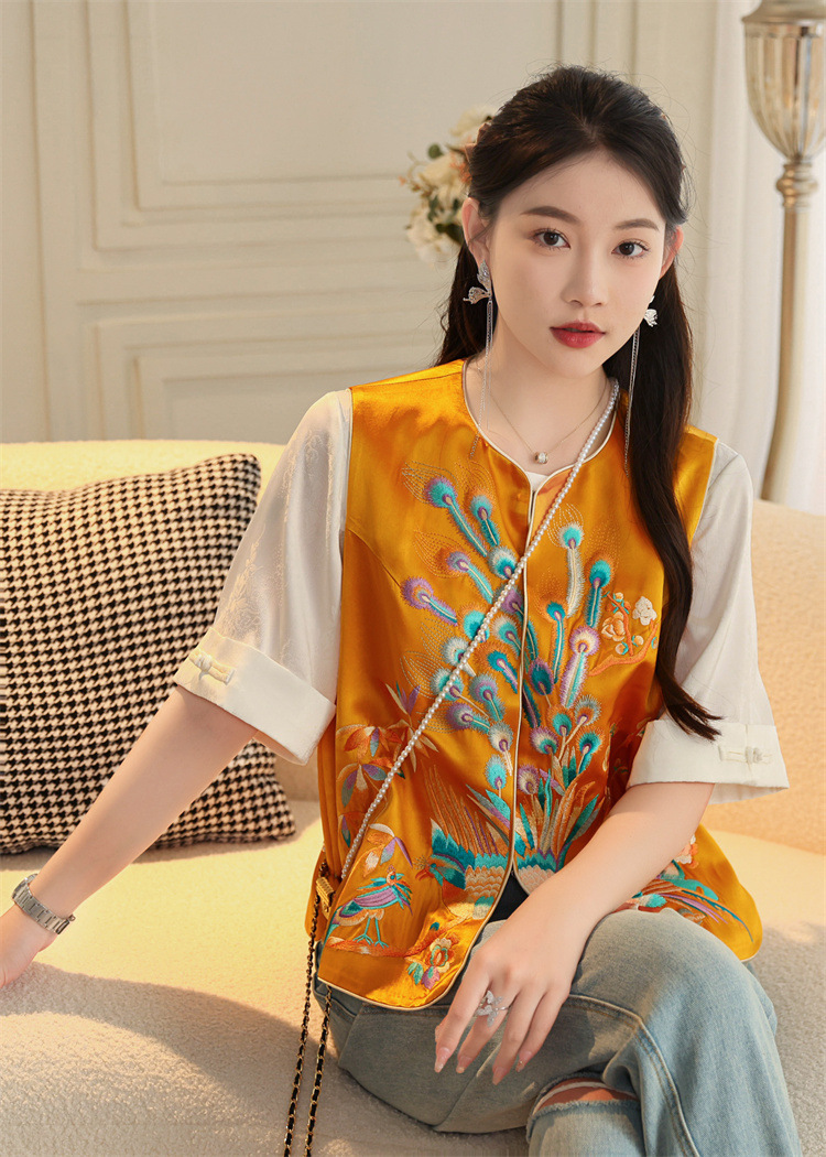 FLZD-A9334感醋酸新中式马甲背心外套女重工刺绣宽松改良国风上衣夏9334