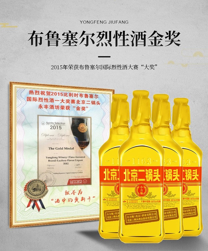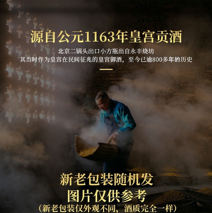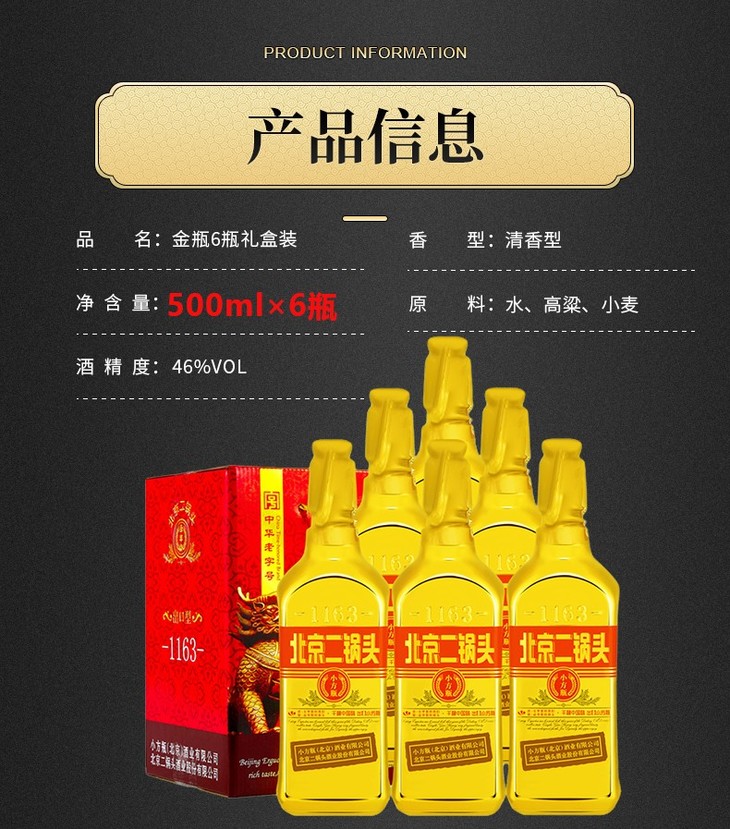【推荐】【京东派送】永丰牌北京二锅头清香型白酒(出口型)永丰二锅头金瓶46度500ml 12瓶装