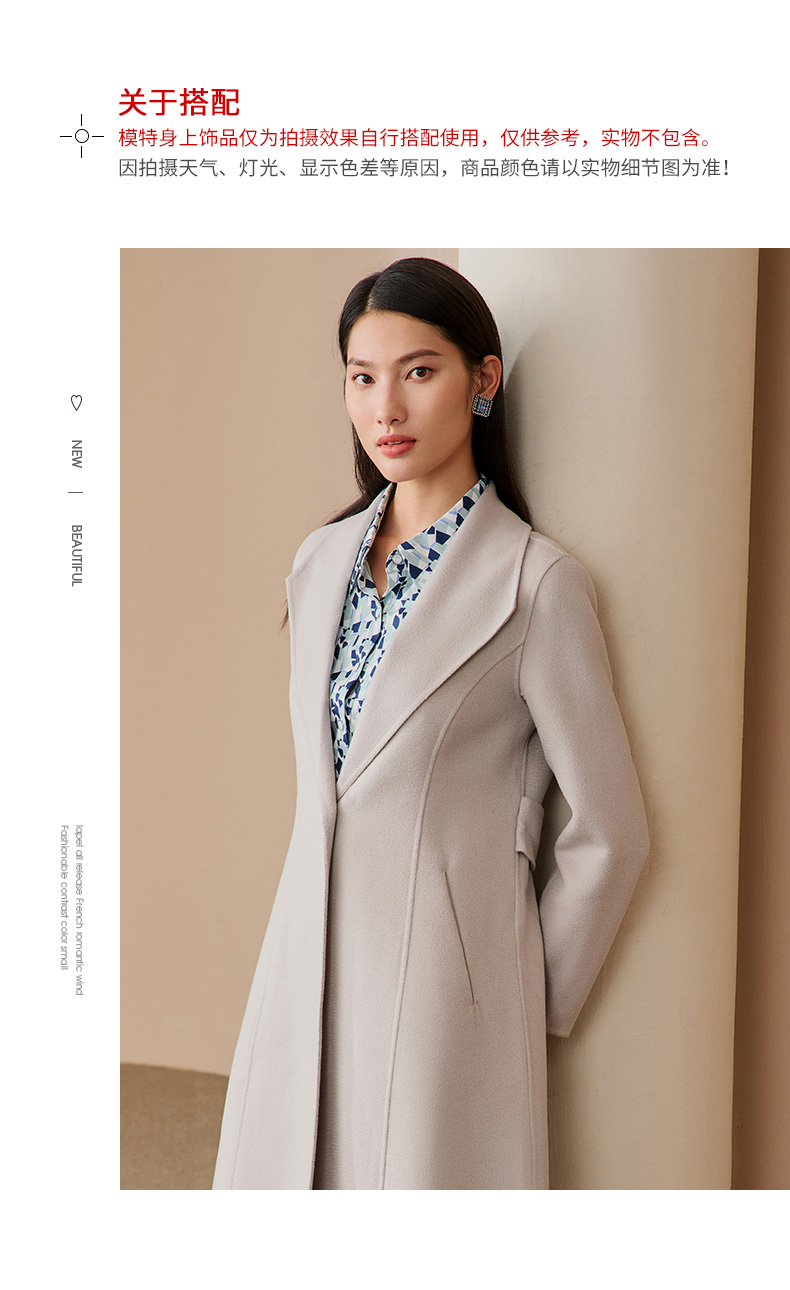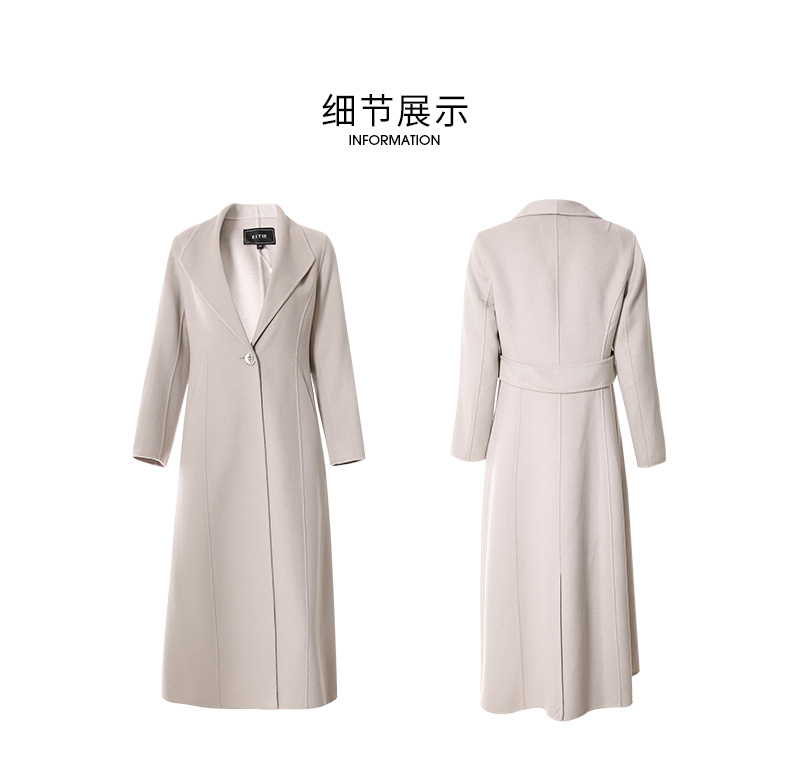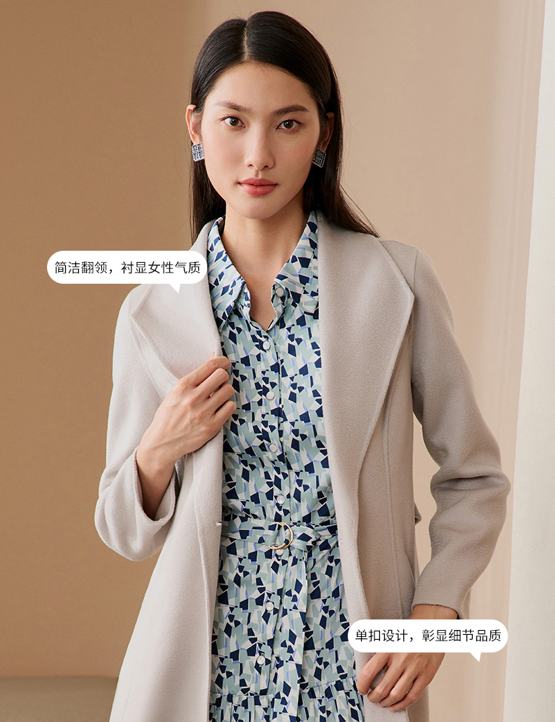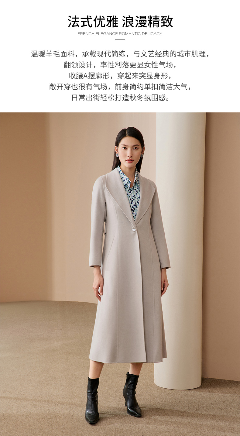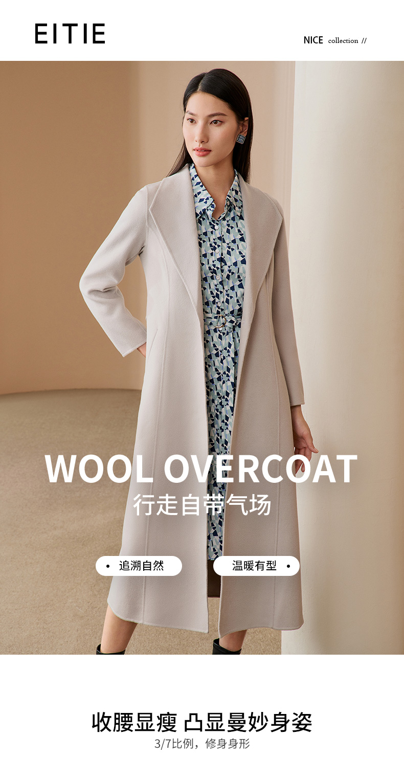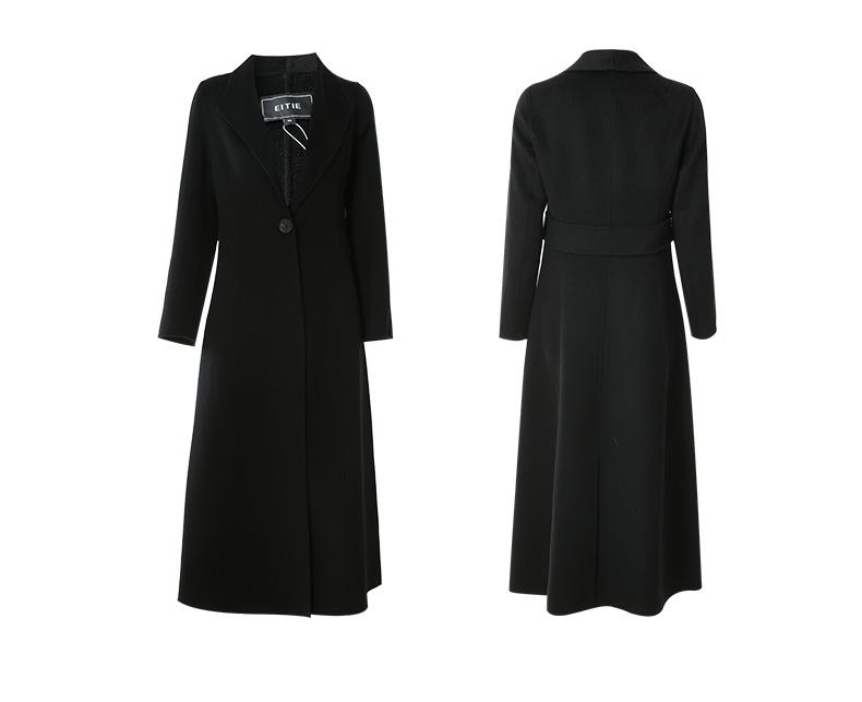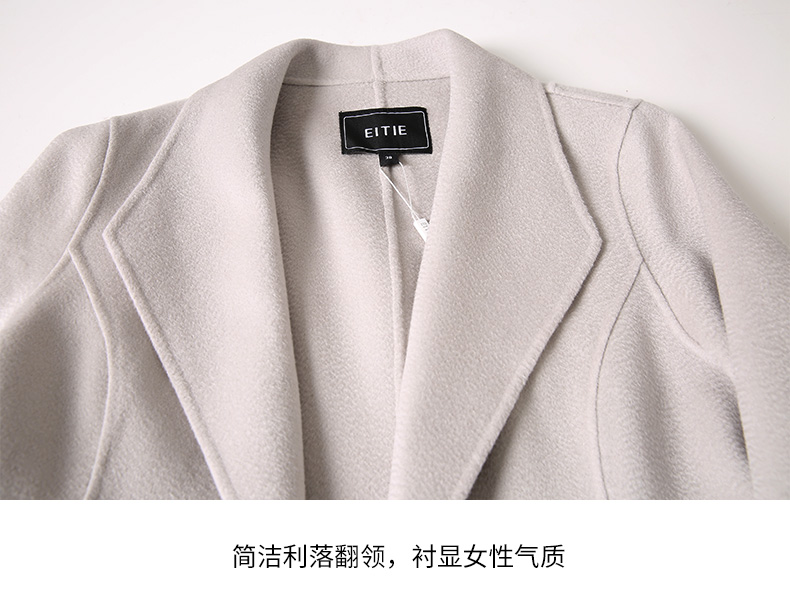 EITIE爱特爱冬季新款气质修身纯羊毛毛呢外套女纯色V领大衣6814533