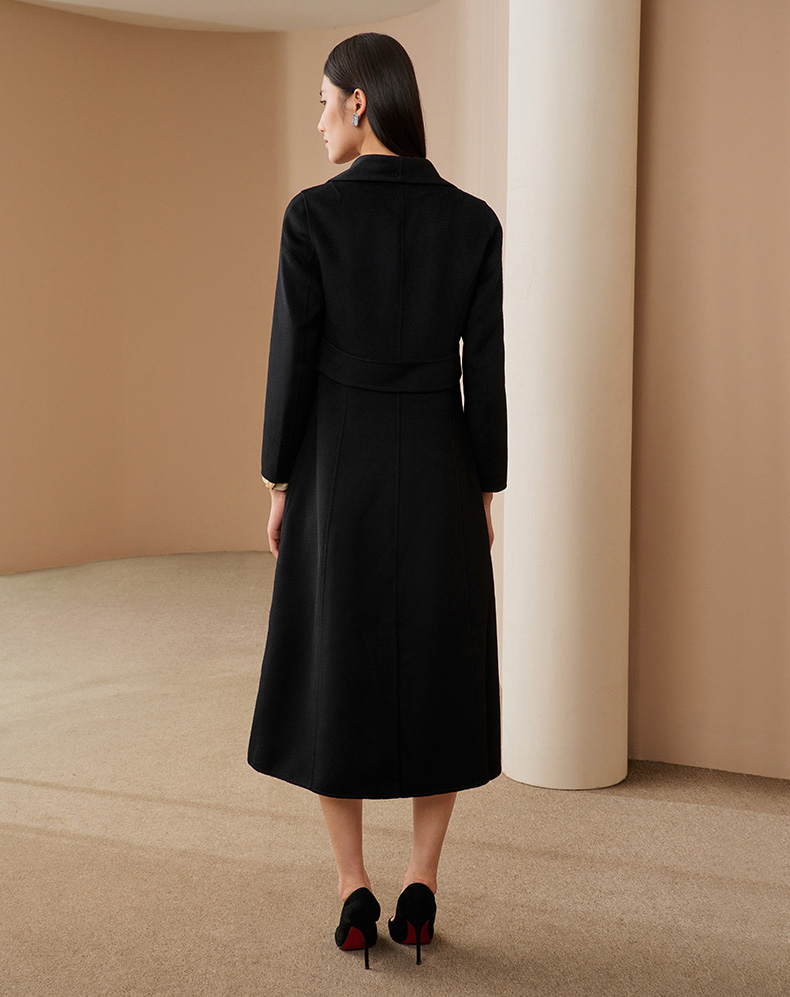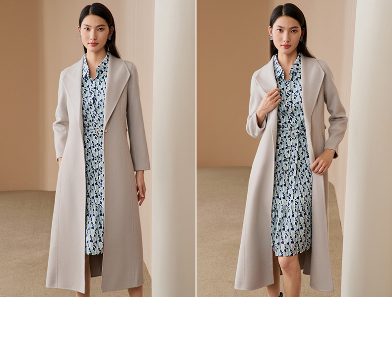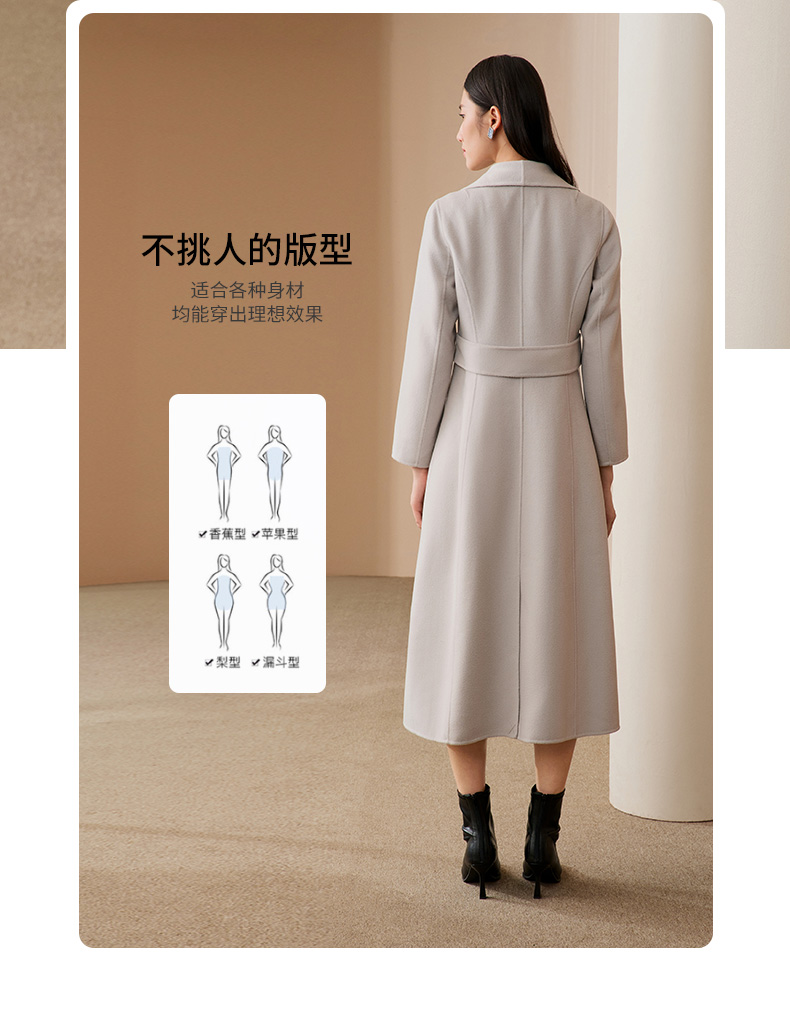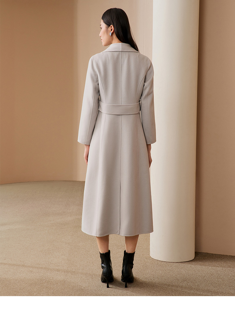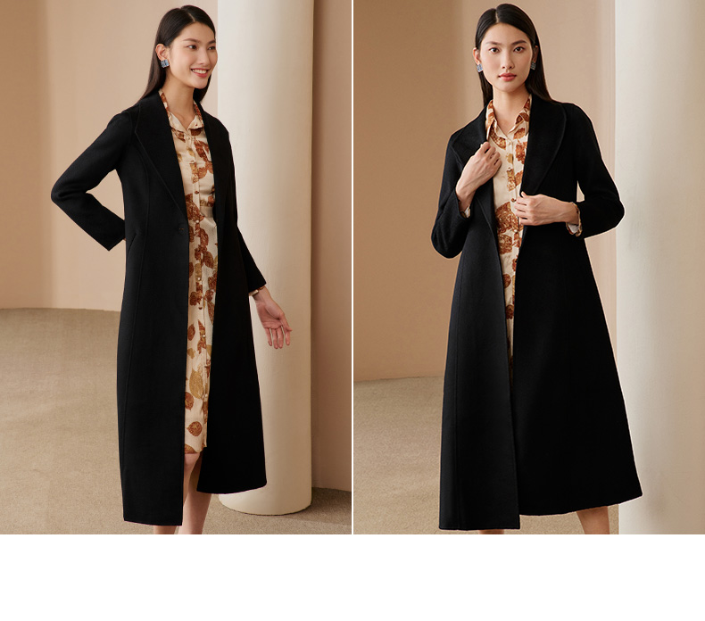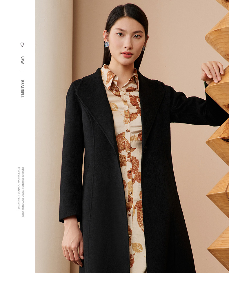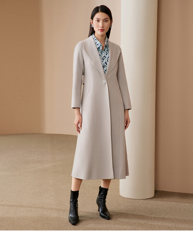 EITIE爱特爱冬季新款气质修身纯羊毛毛呢外套女纯色V领大衣6814533