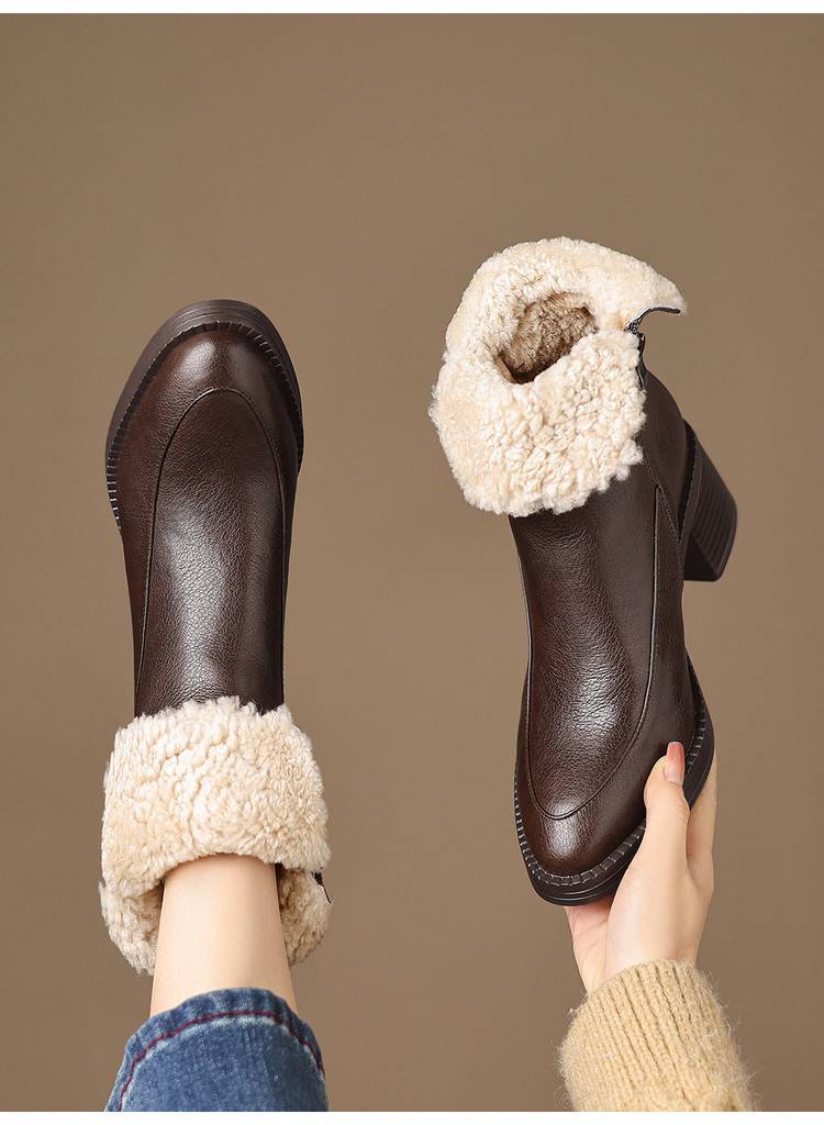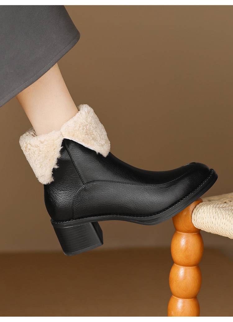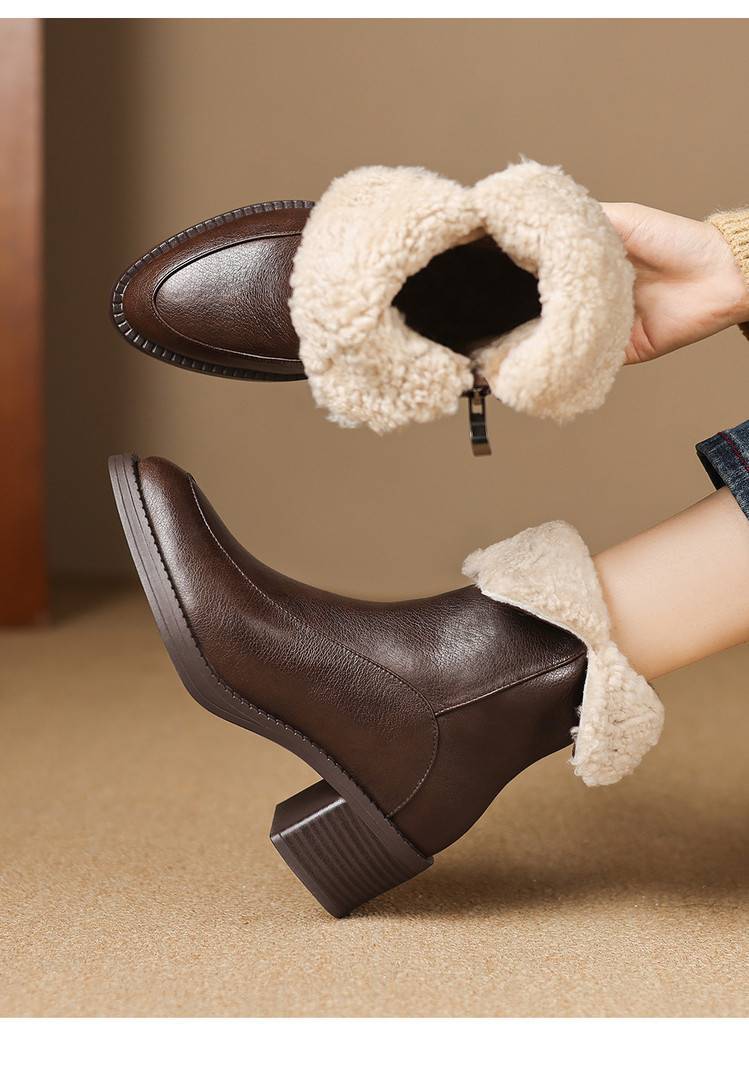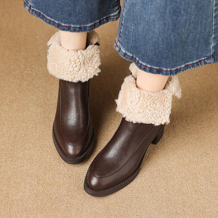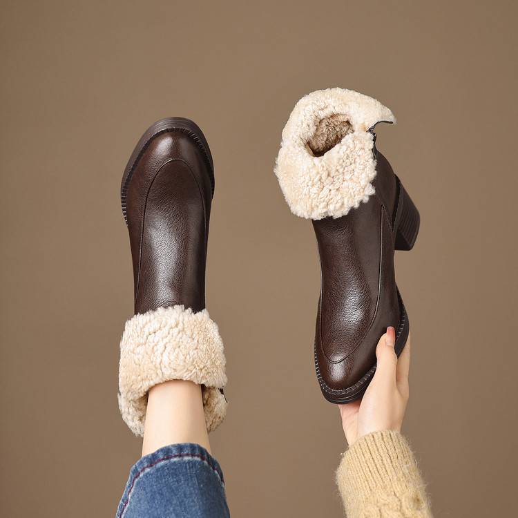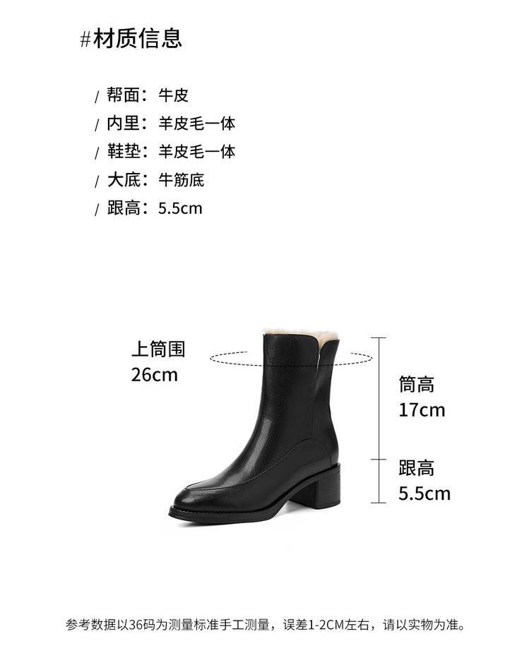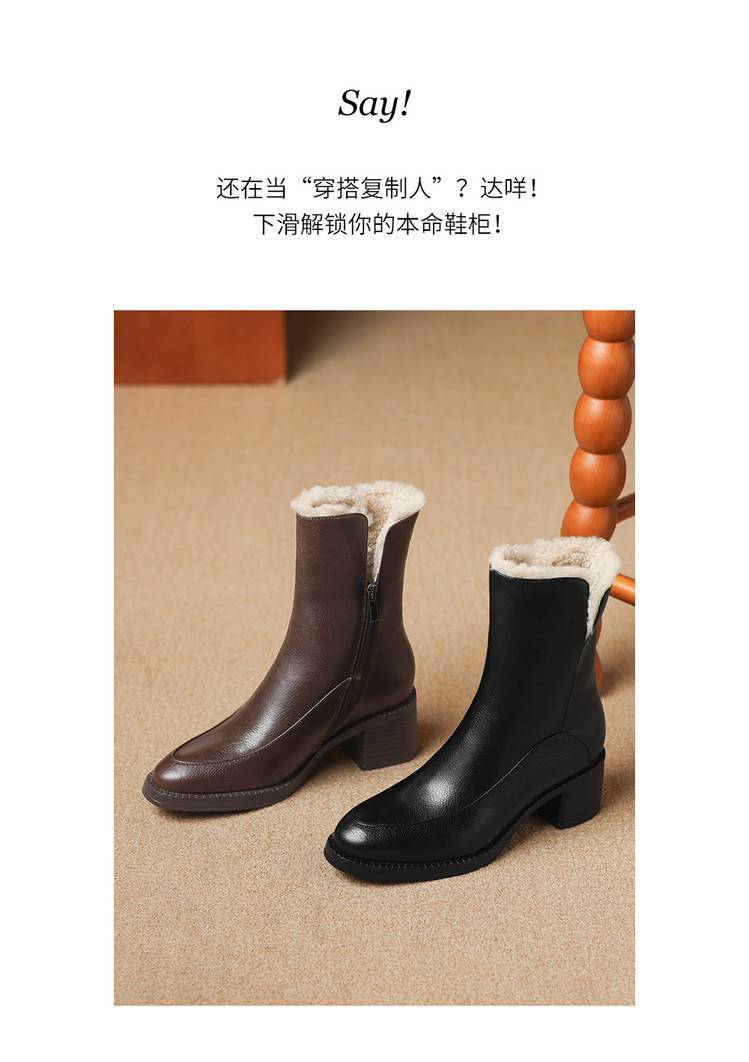【预售5天】短靴子女保暖加绒新款冬季天雪地靴高粗跟黑棕色羊皮毛一体&699