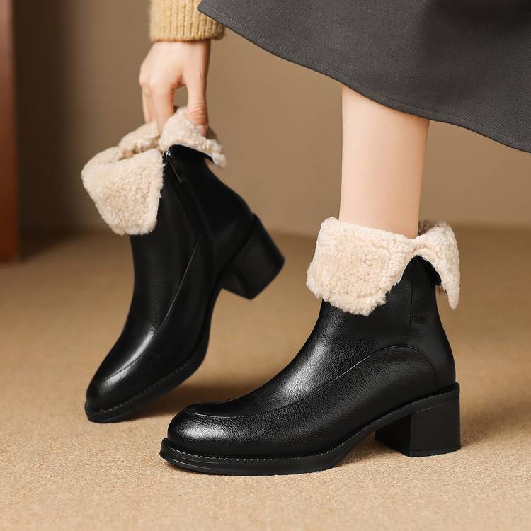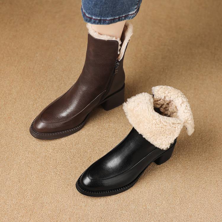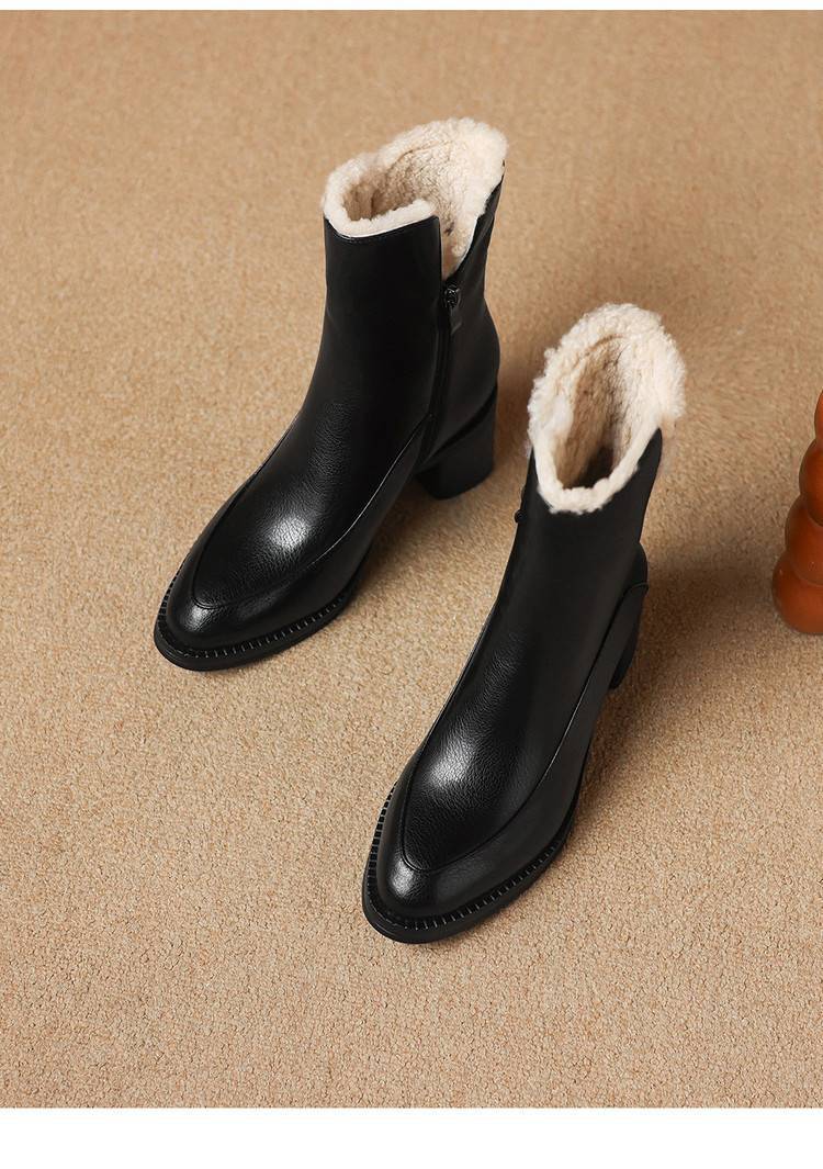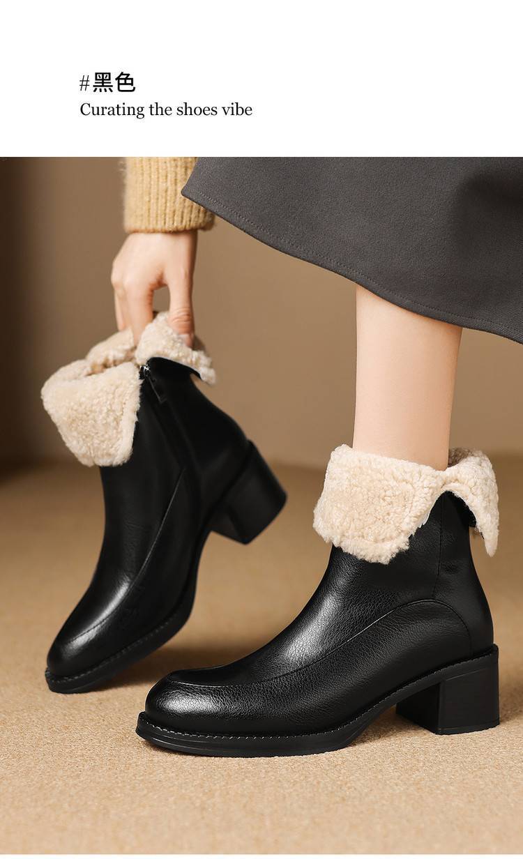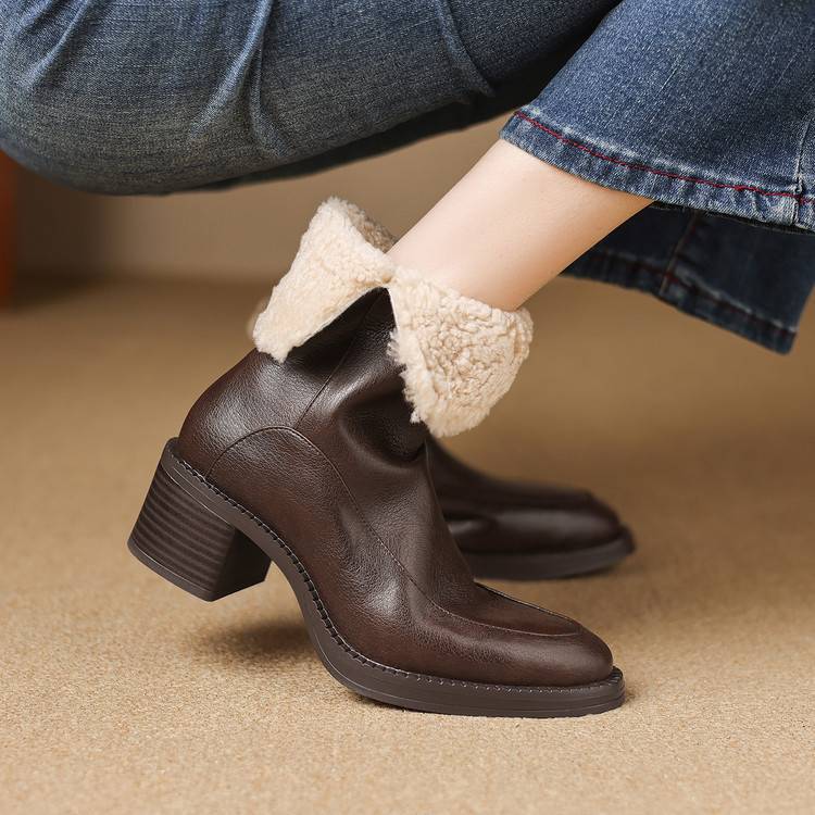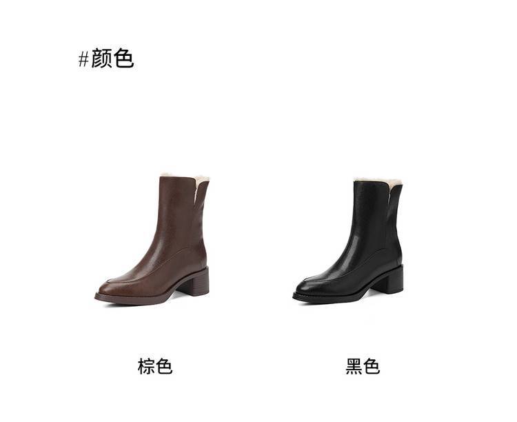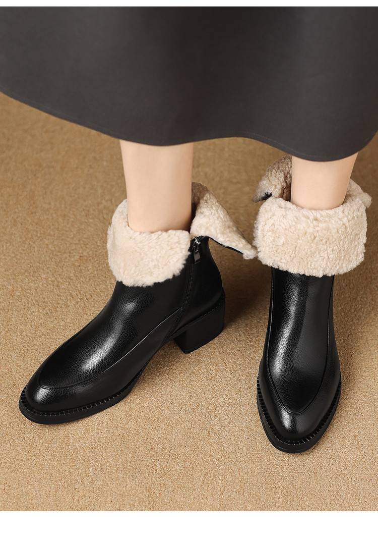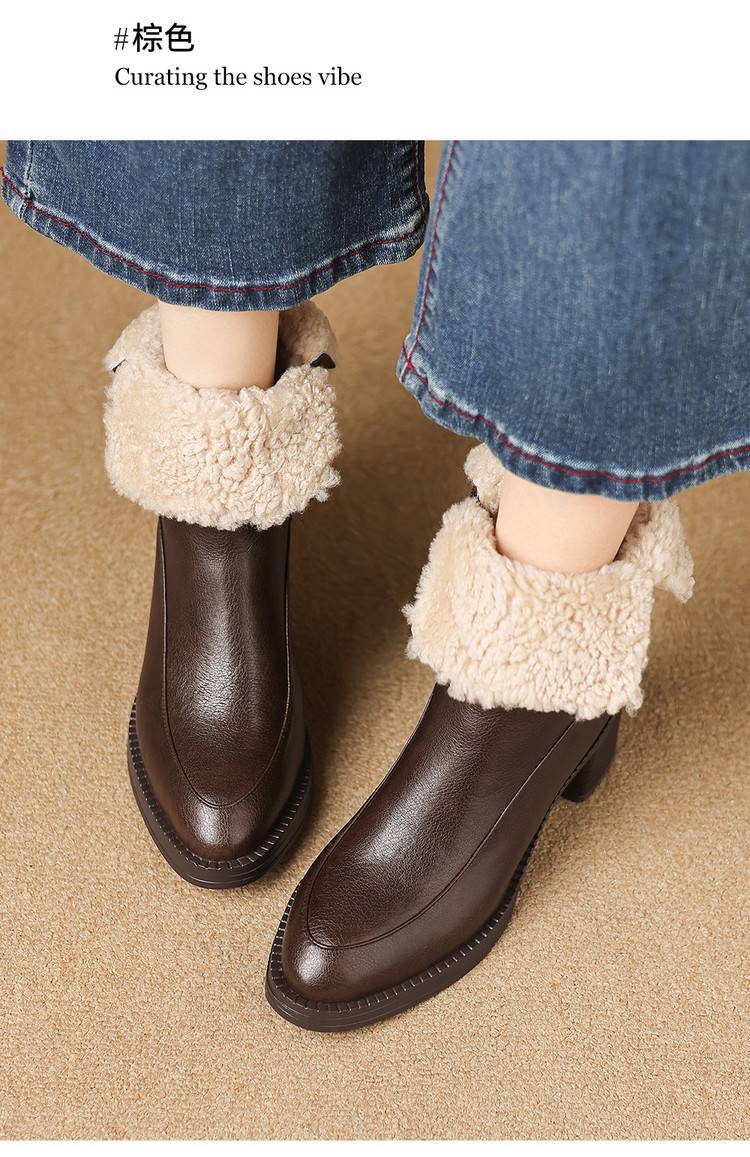 【预售5天】短靴子女保暖加绒新款冬季天雪地靴高粗跟黑棕色羊皮毛一体&699