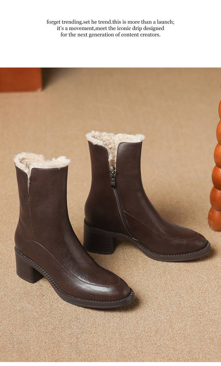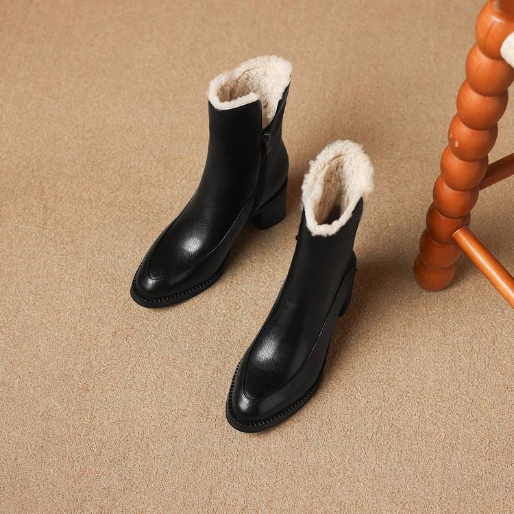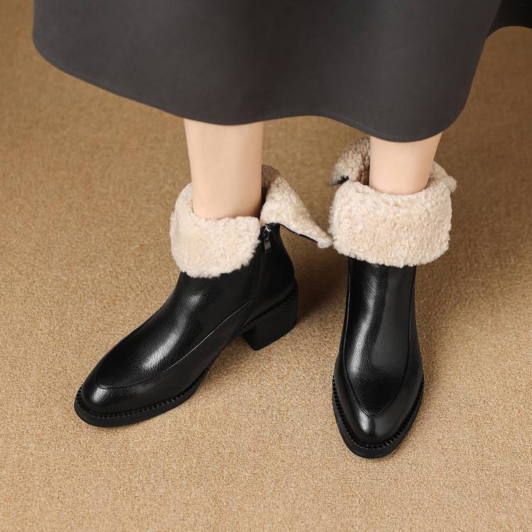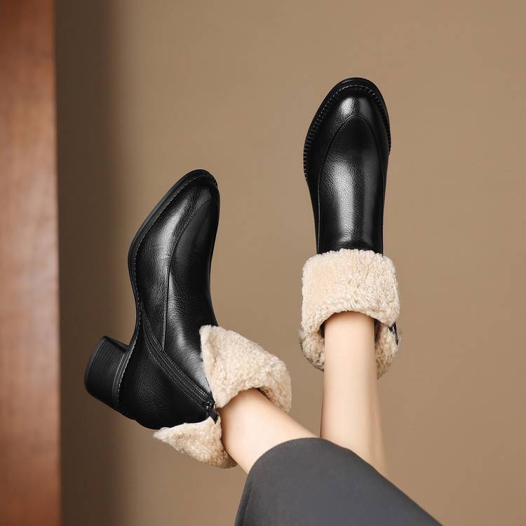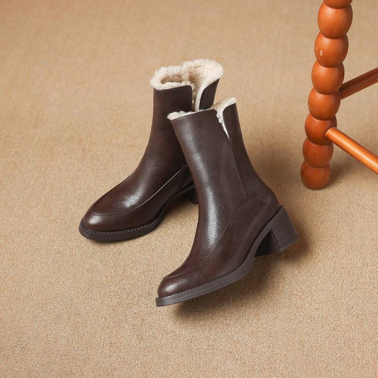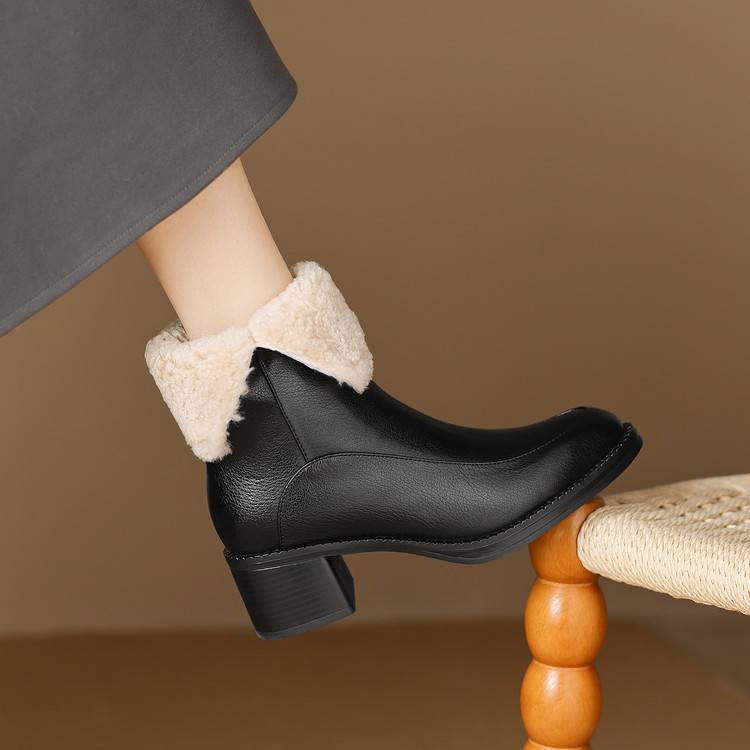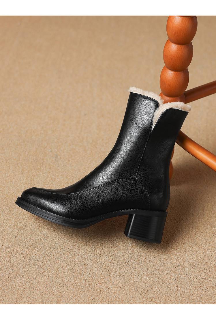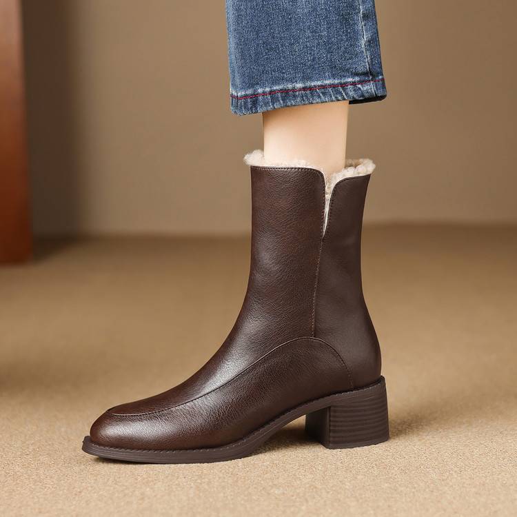 【预售5天】短靴子女保暖加绒新款冬季天雪地靴高粗跟黑棕色羊皮毛一体&699