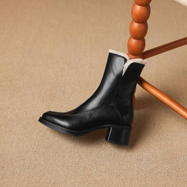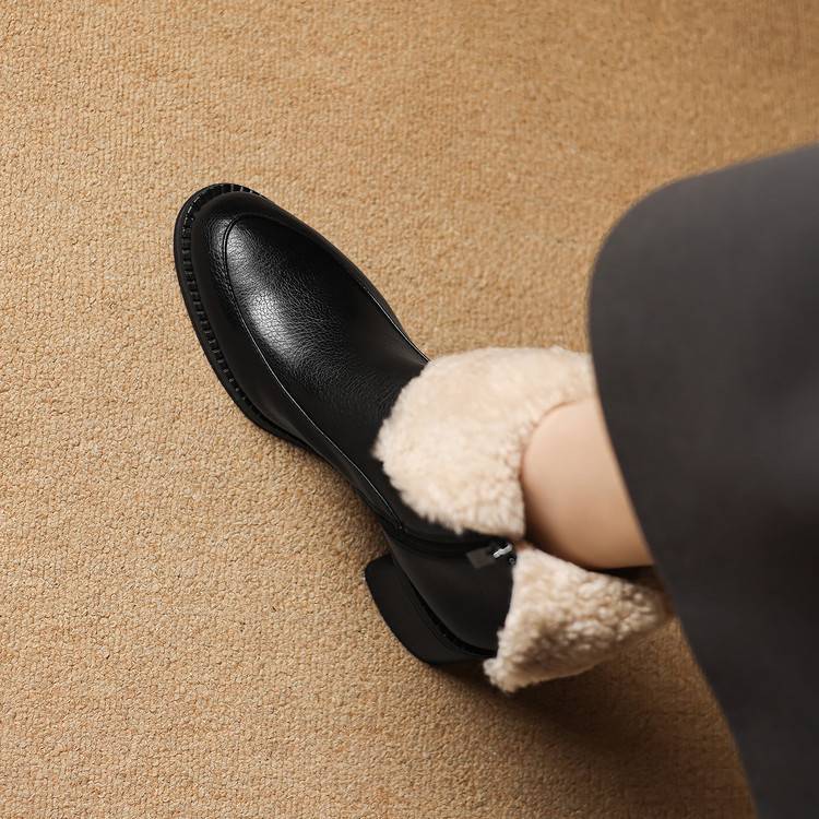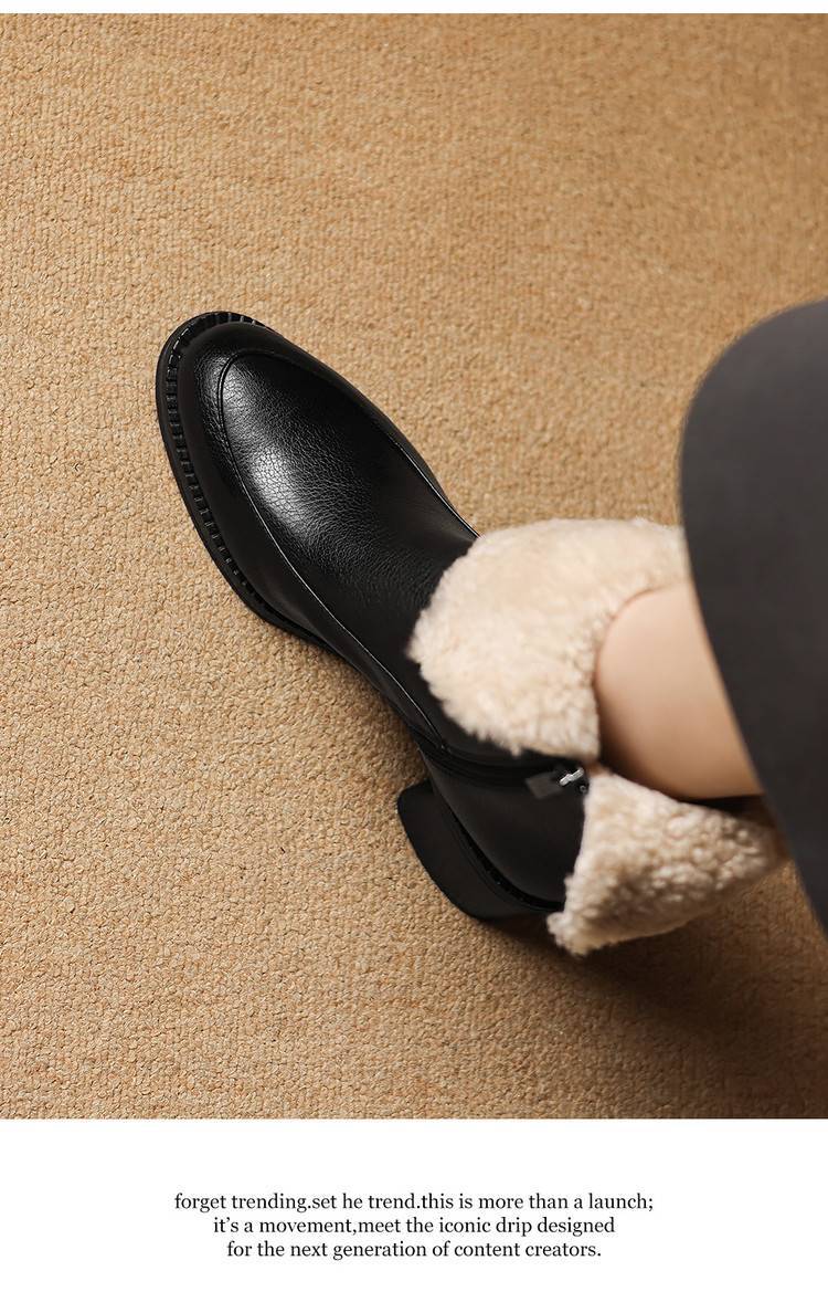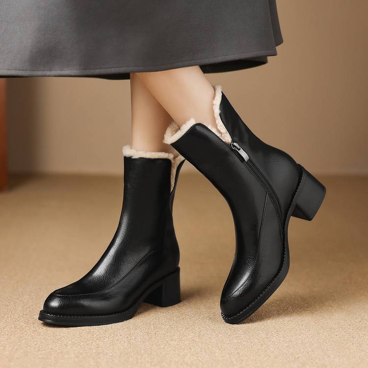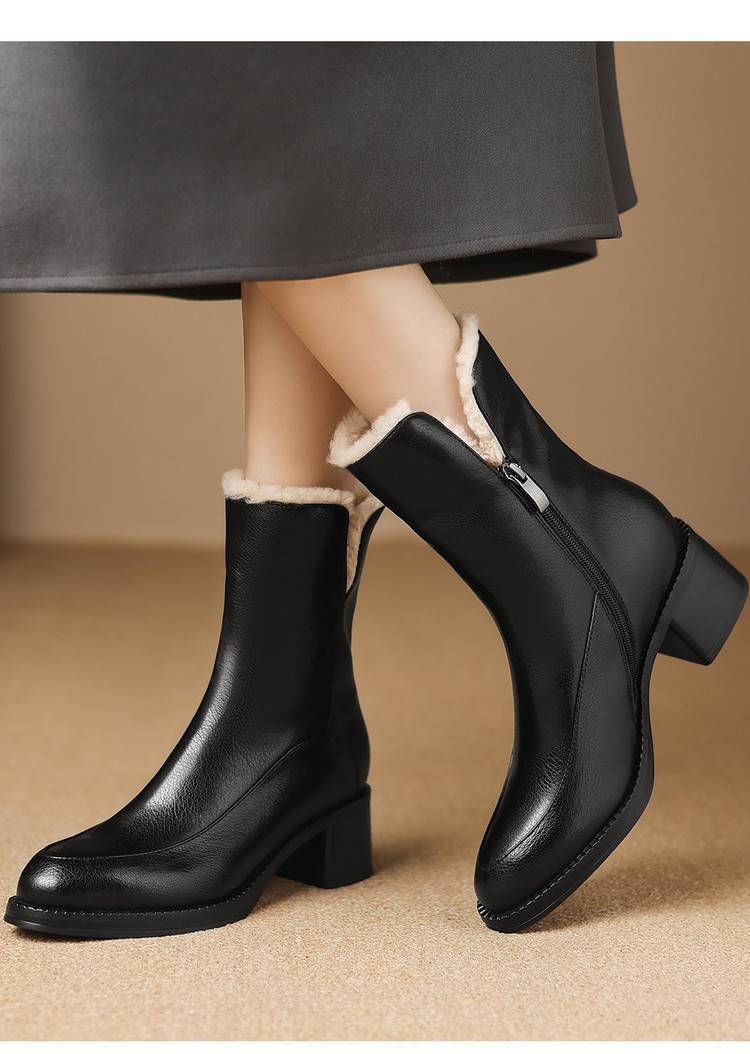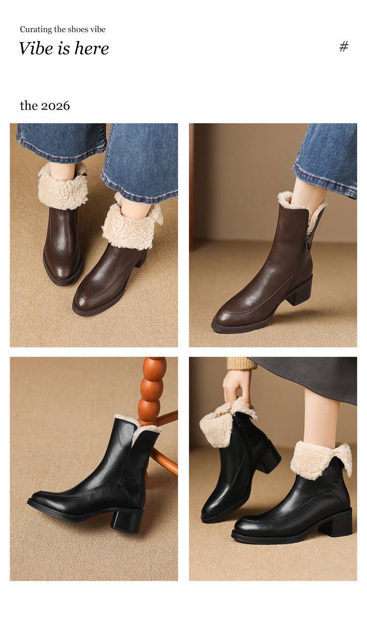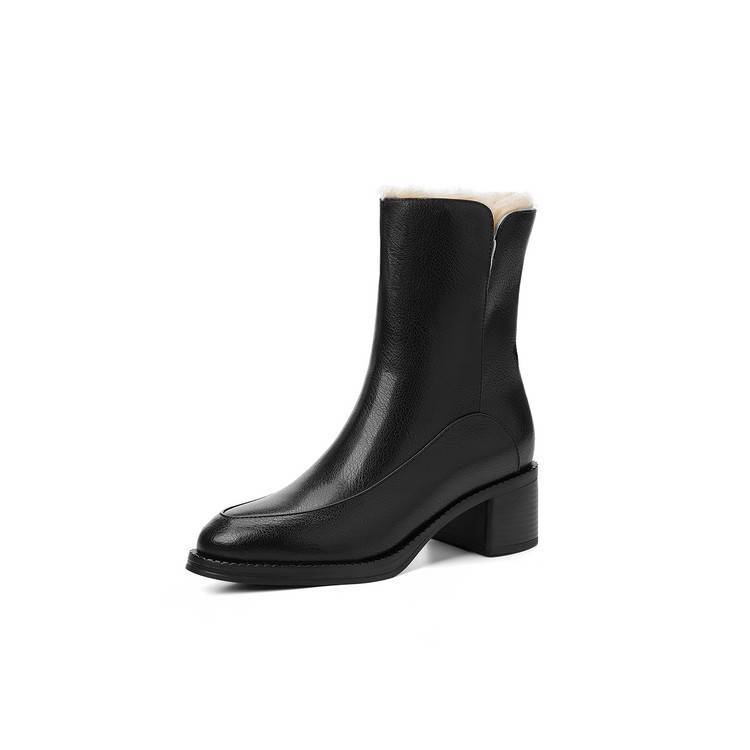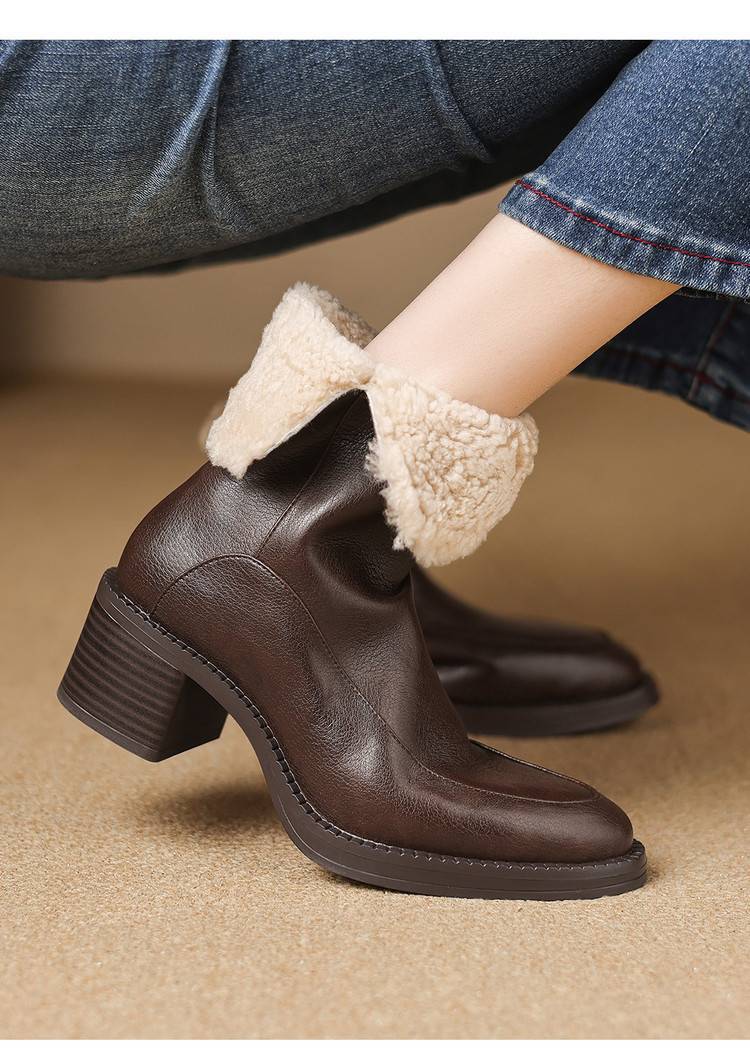 【预售5天】短靴子女保暖加绒新款冬季天雪地靴高粗跟黑棕色羊皮毛一体&699