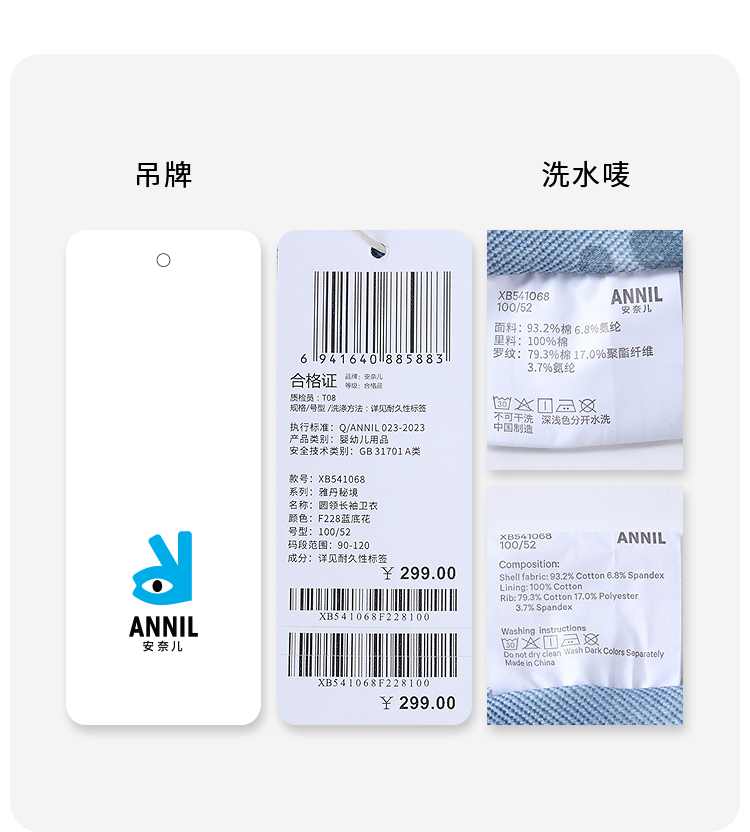 【实体店同款】男童圆领长袖卫衣冬季新款安奈儿童装XB541068