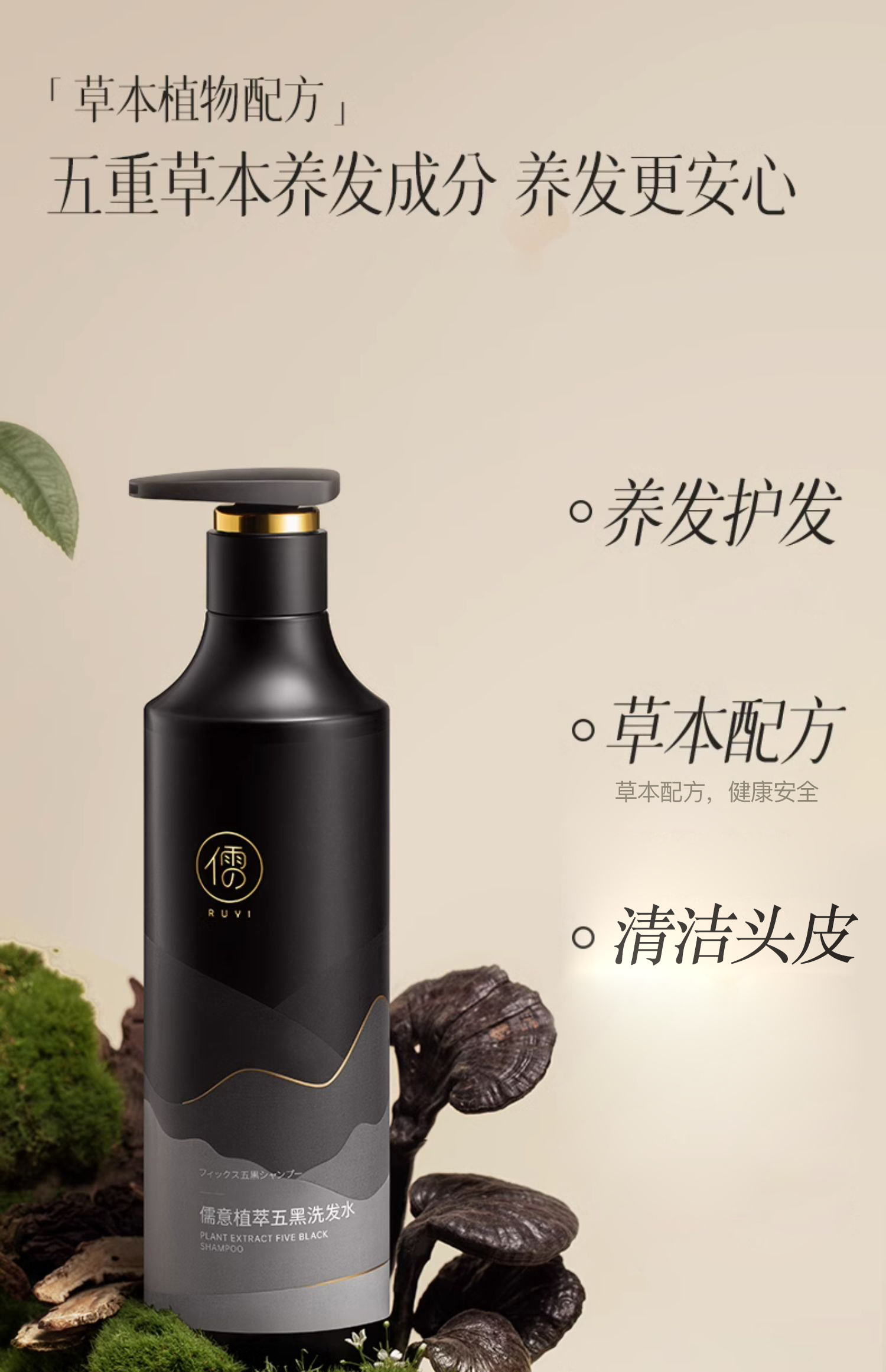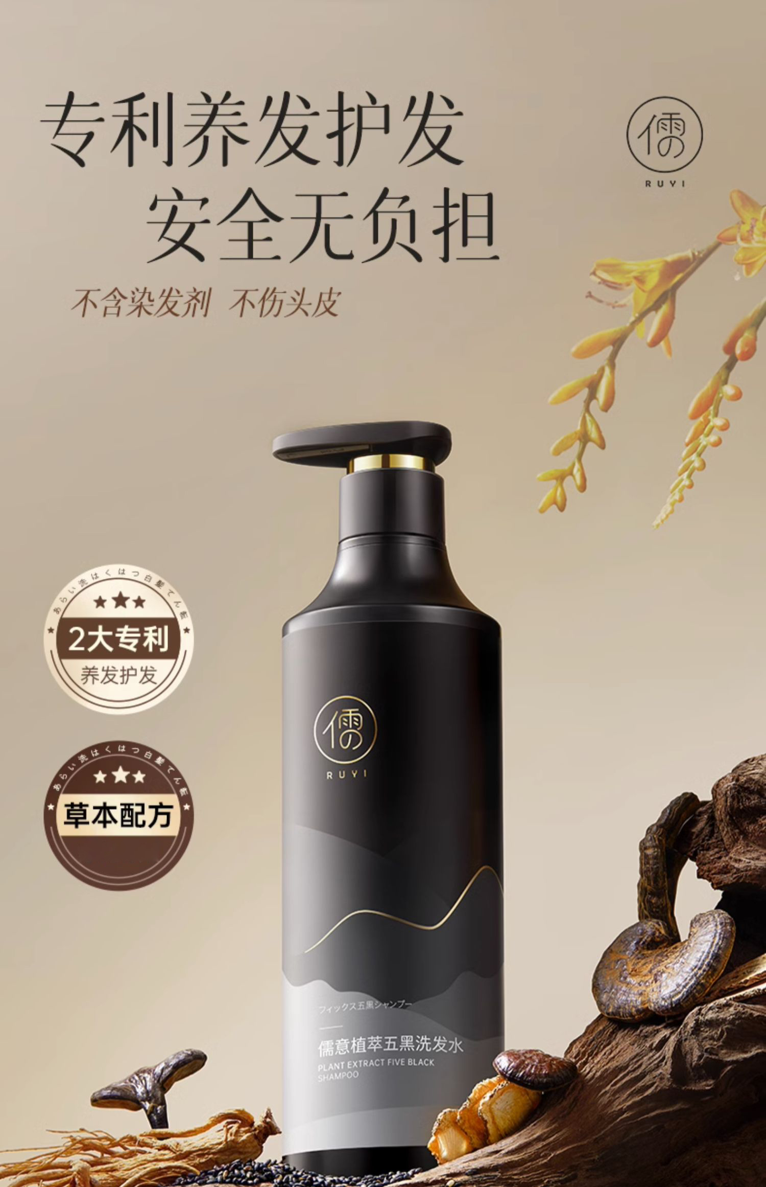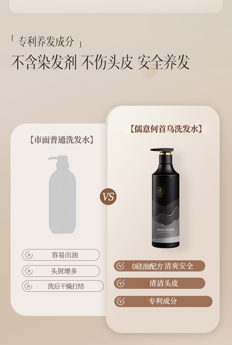 儒意黑灵芝何首乌洗发水 养发护发 清洁头皮 柔顺芳香 500g/瓶