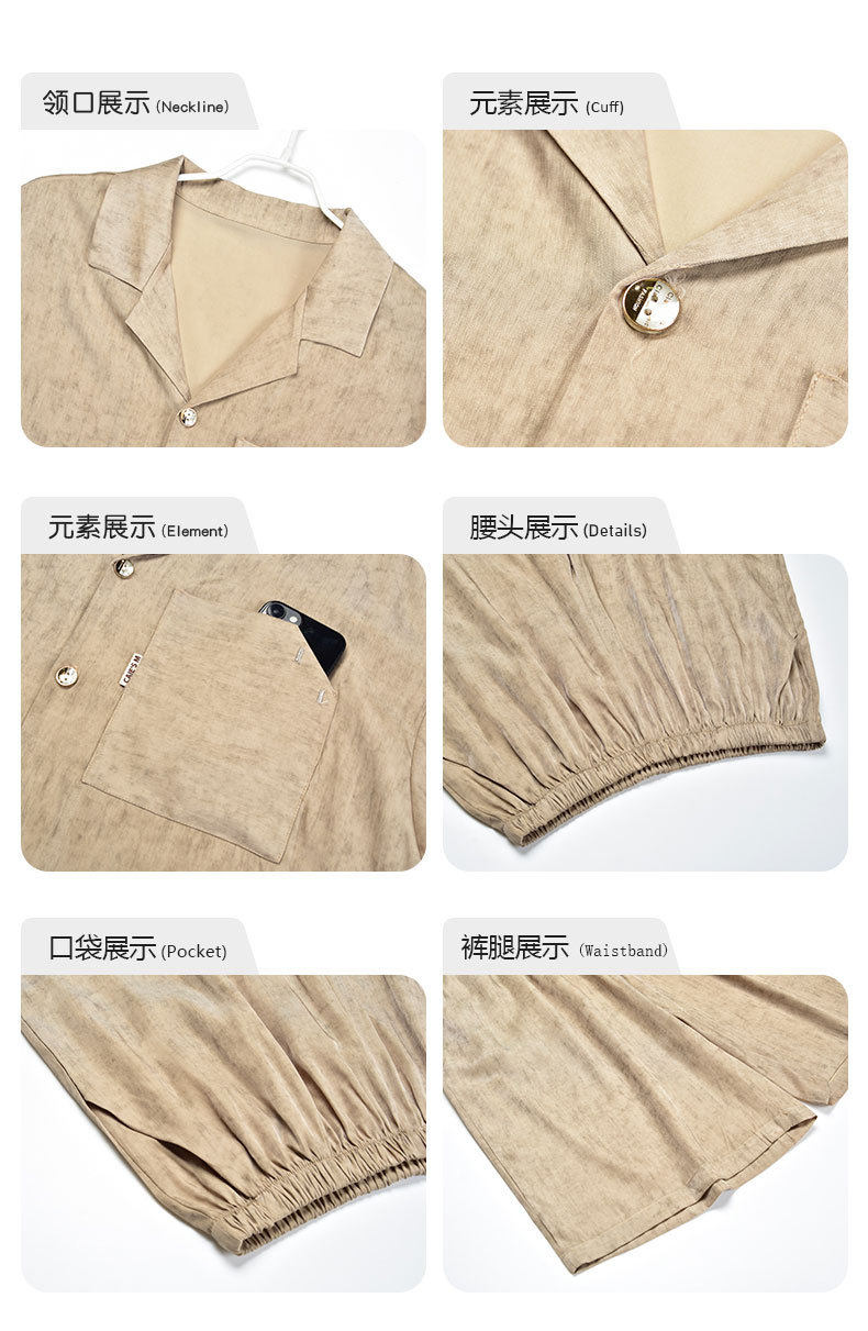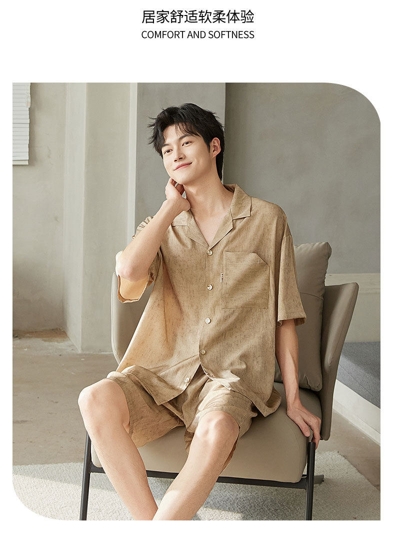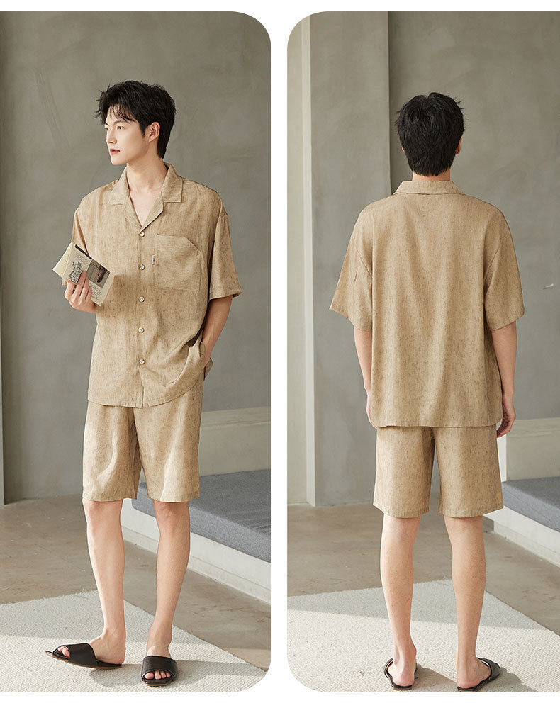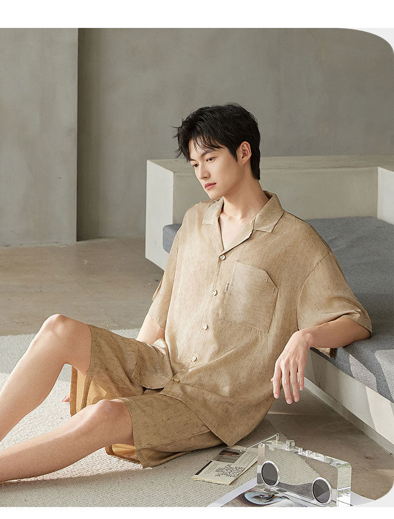 夏季短袖男士冰丝翻领短裤套装仿真丝薄款宽松开衫家居服可外穿 JL-5565