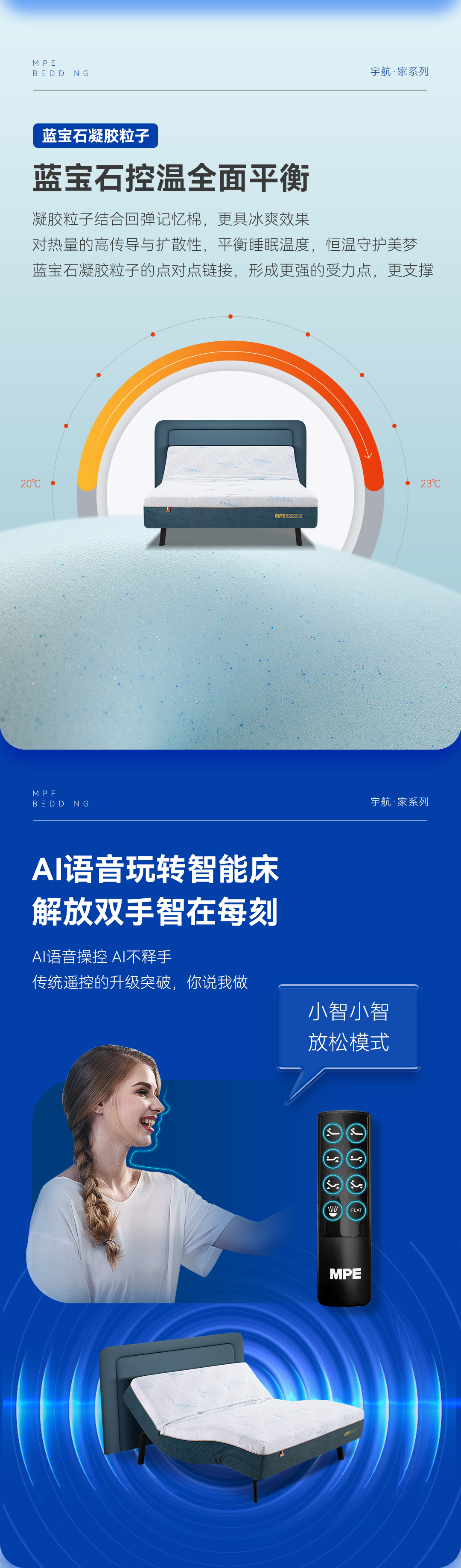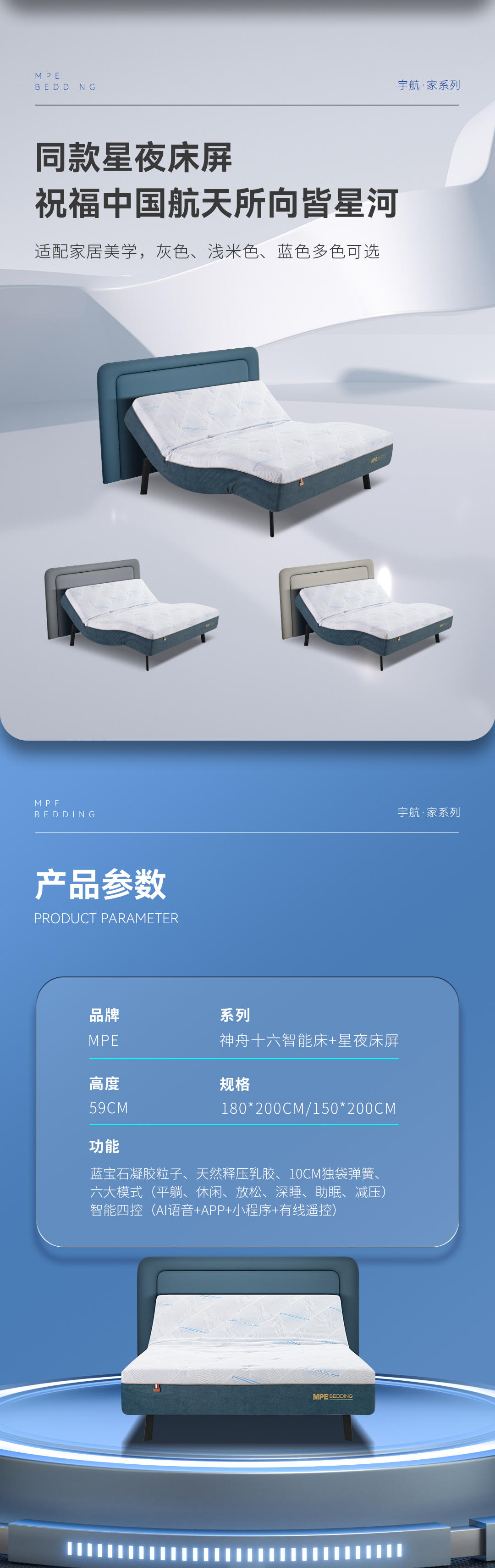 MPE寝具,1956年创立于意大利Corona Portabella(VA),是深度睡眠系统倡导者。长期致力于推动人类健康深度睡眠事业,是国内最早推出科技智能睡床和纯乳胶健康睡床的高端专业品牌。