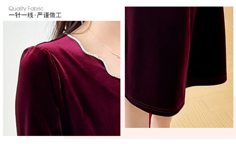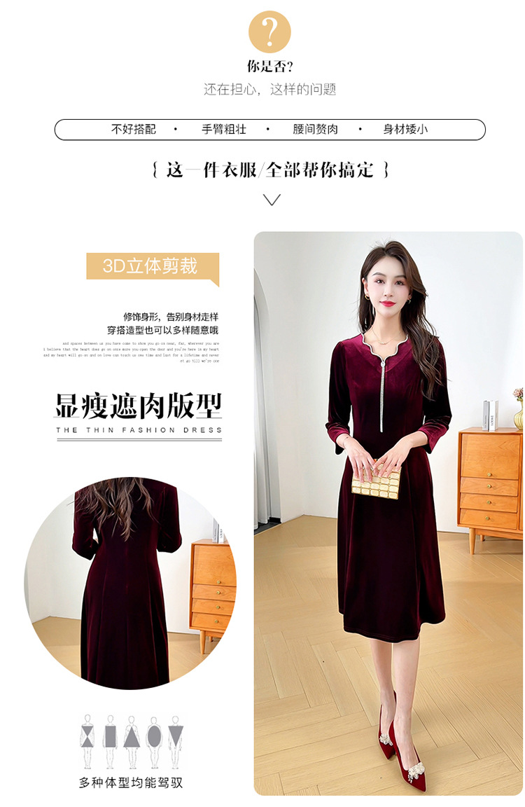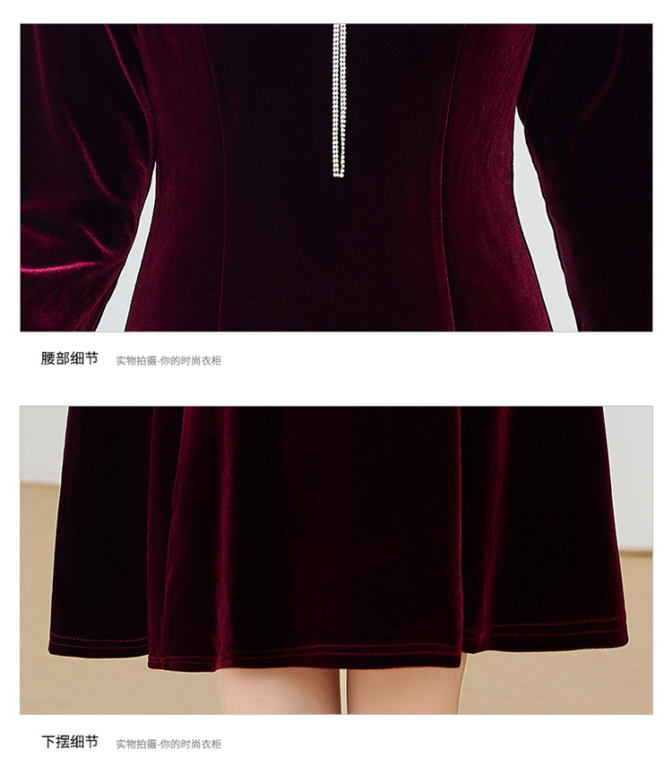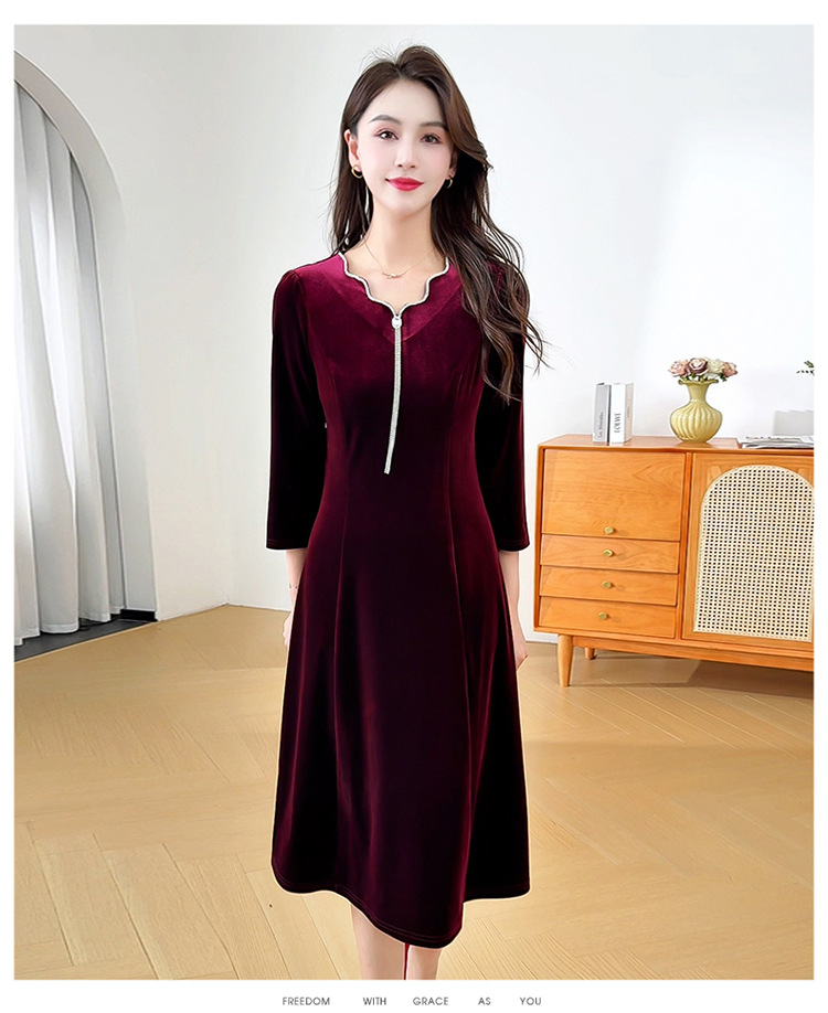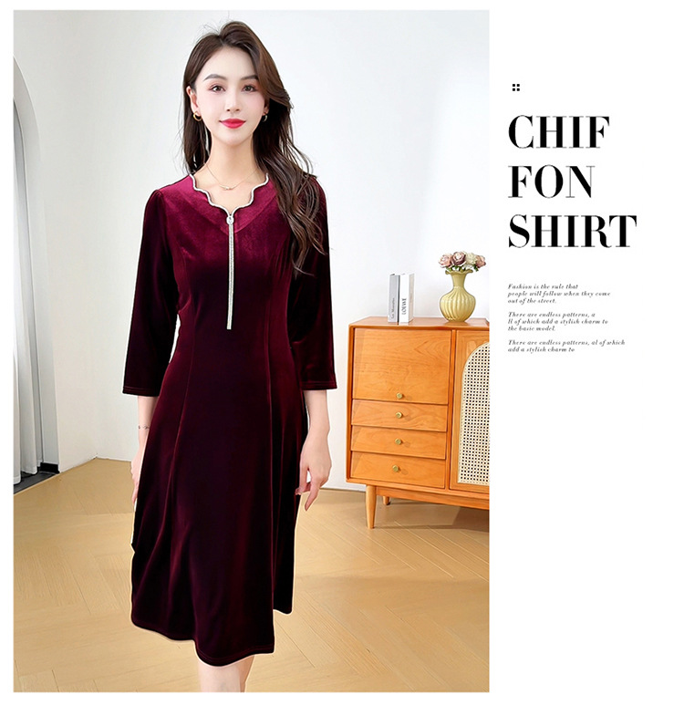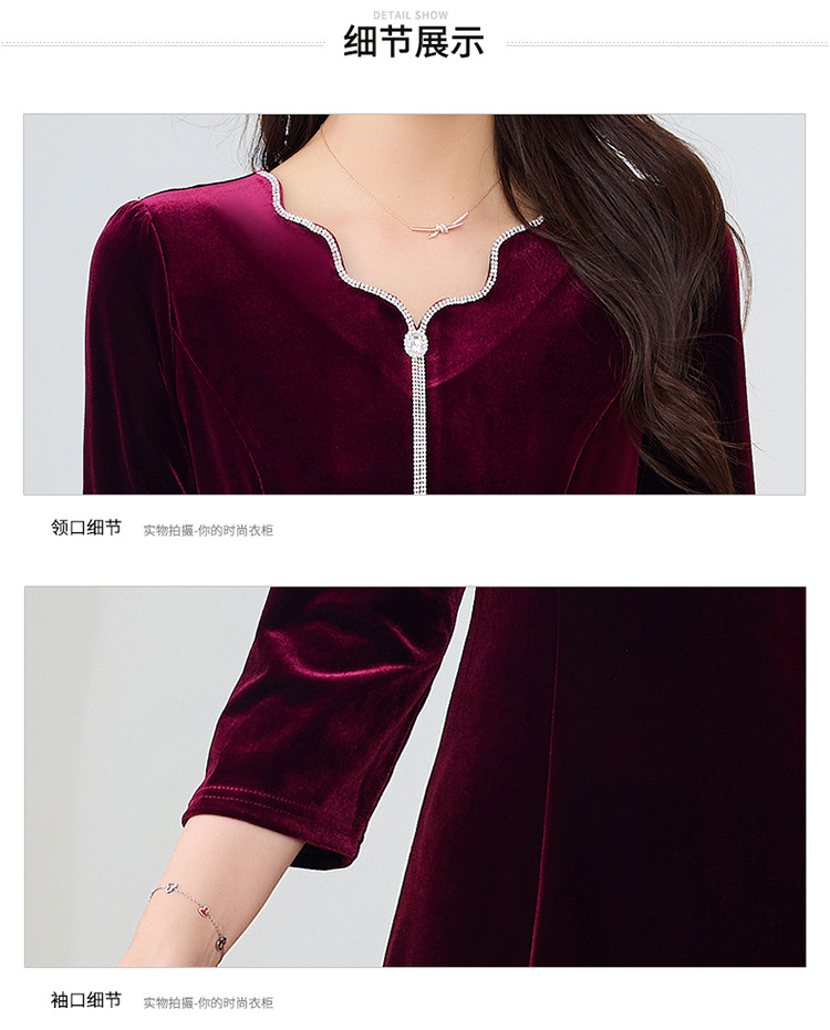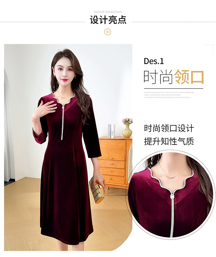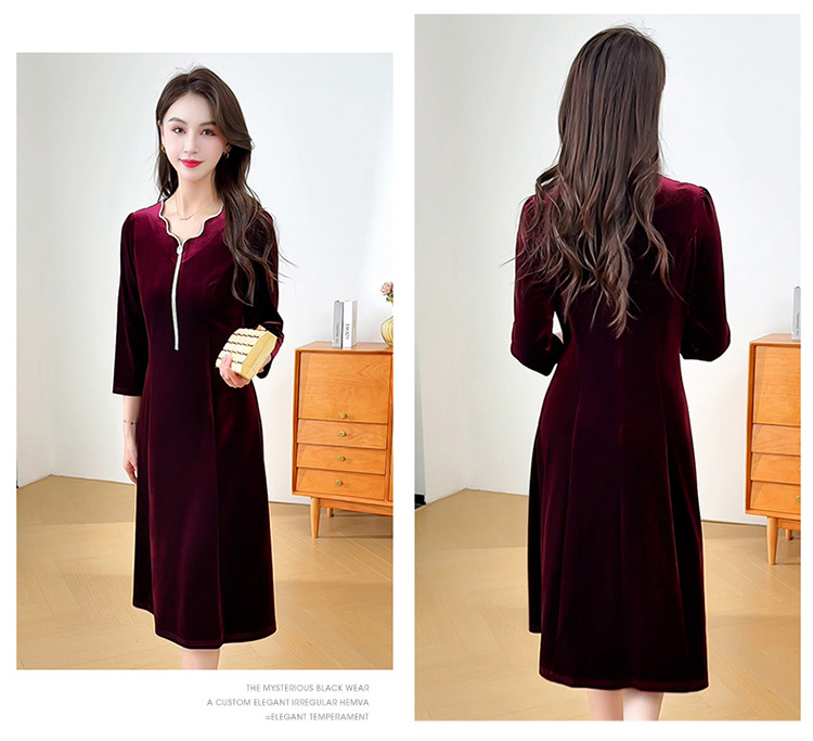 QYM 1852-Y金丝绒礼服裙中长款连衣裙妈妈装长款A字裙