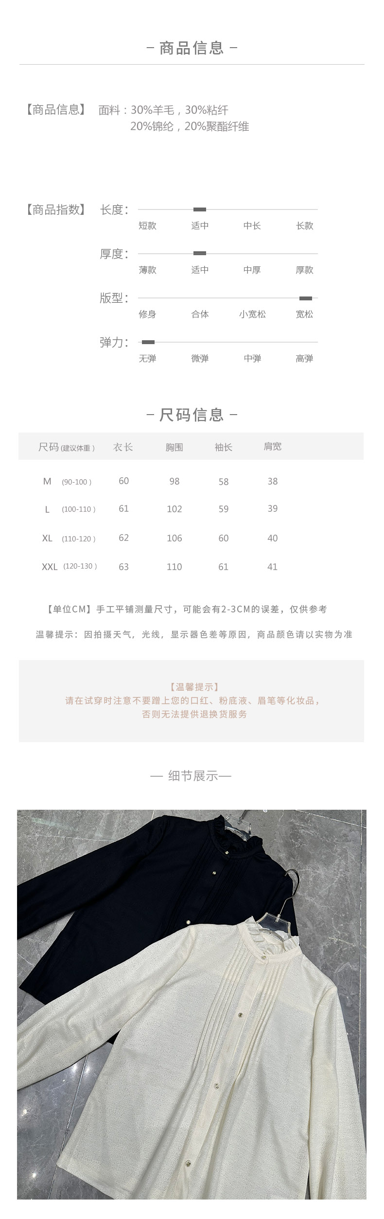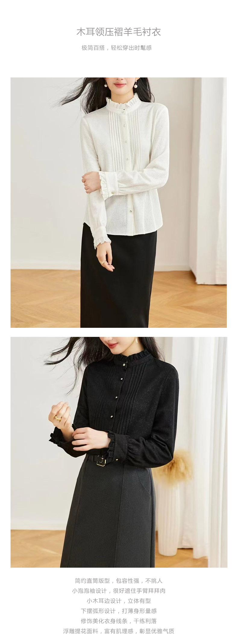 Y4D11B2127 法式木耳领压褶羊毛衬衣RJ005