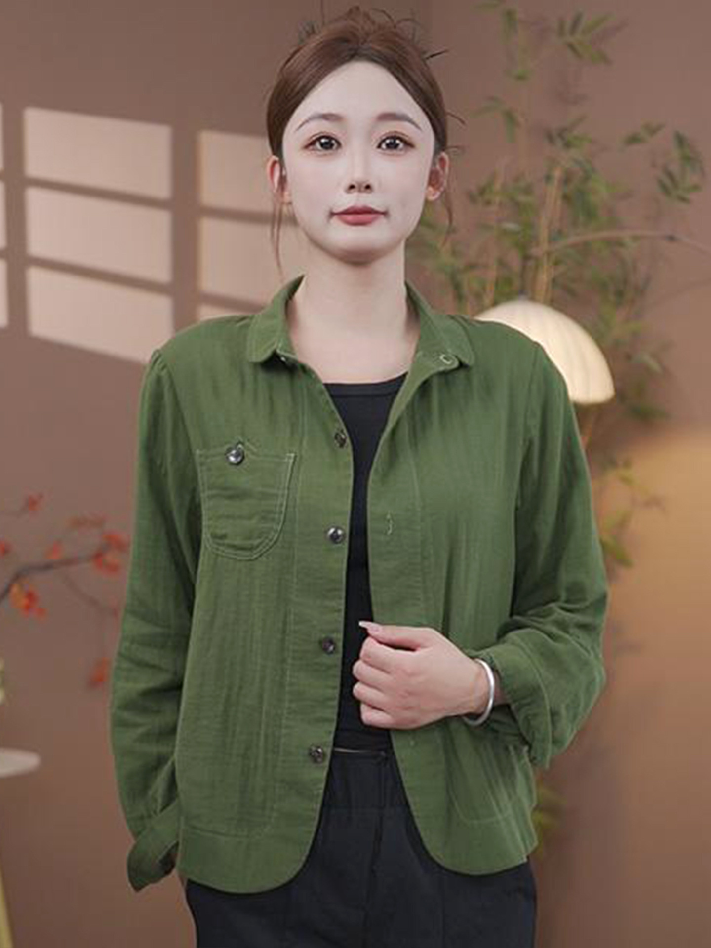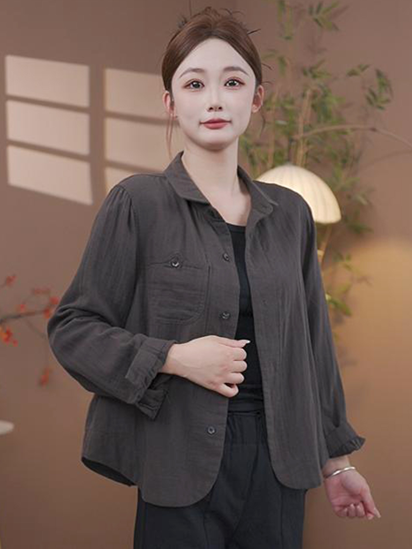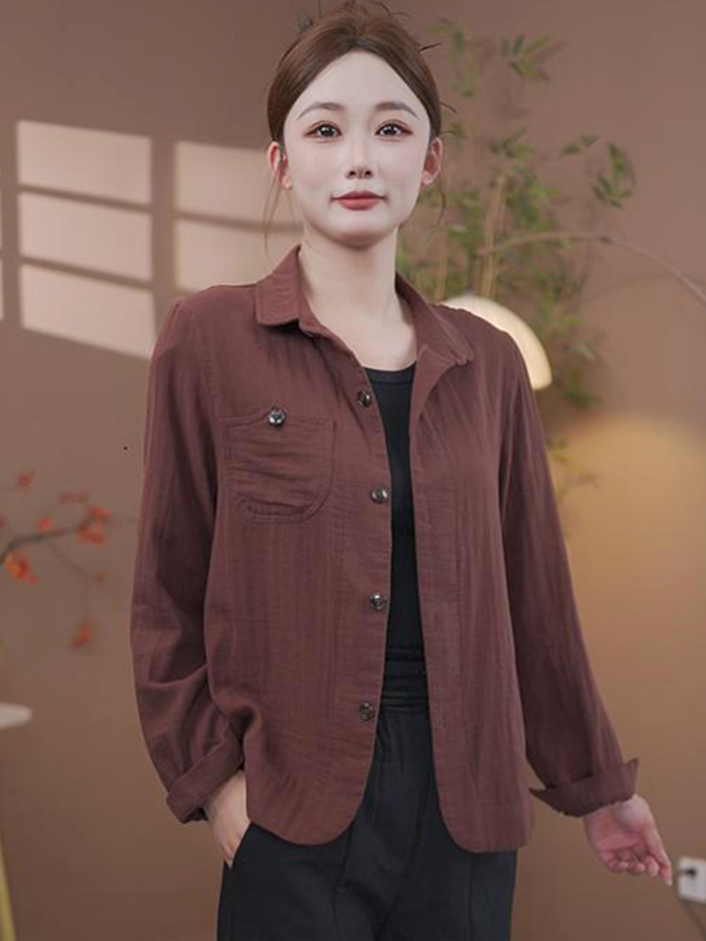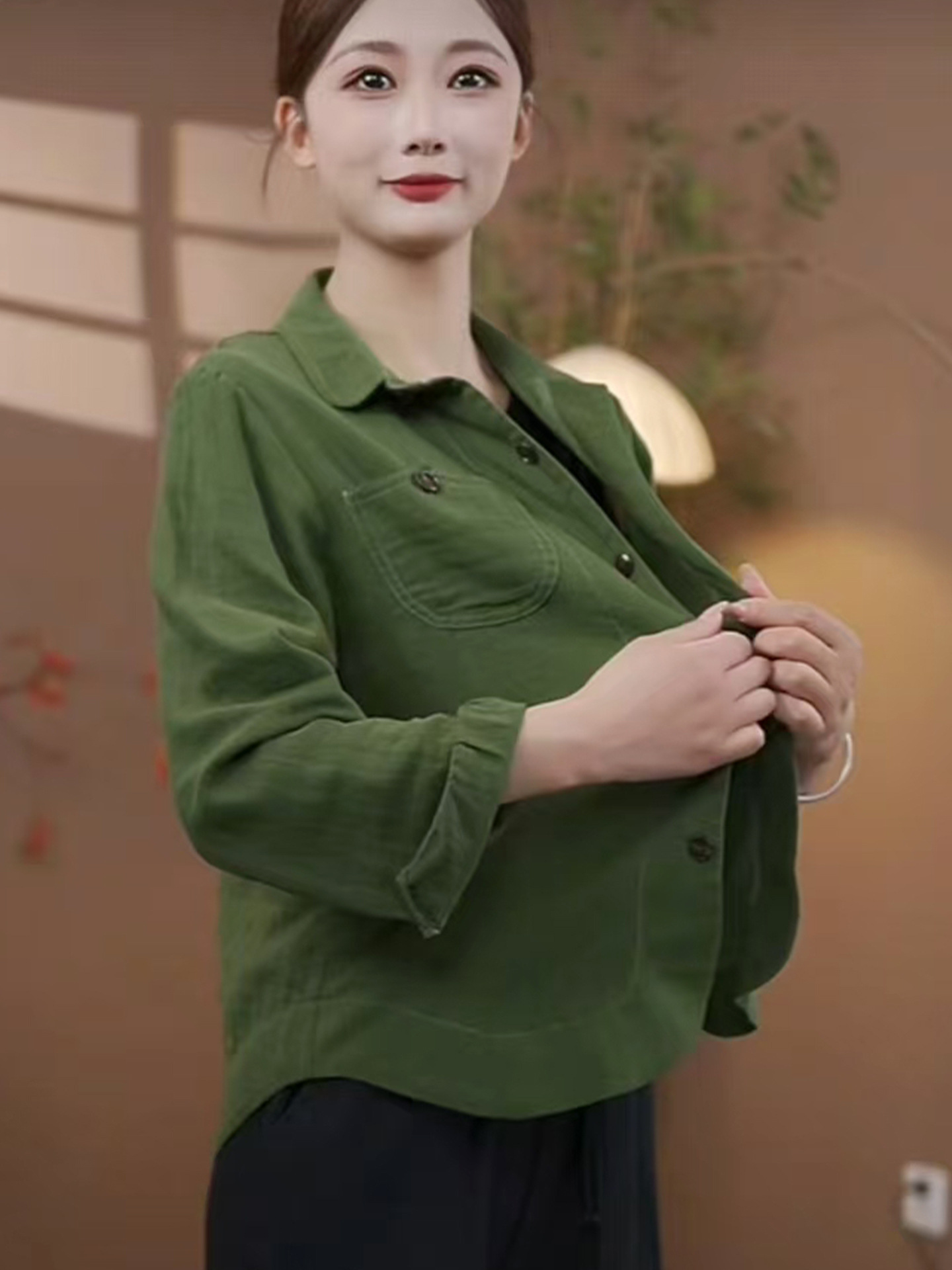 简约纯色妈妈装翻领衬衣2025早秋新款Z时尚中年女装大码百搭外套