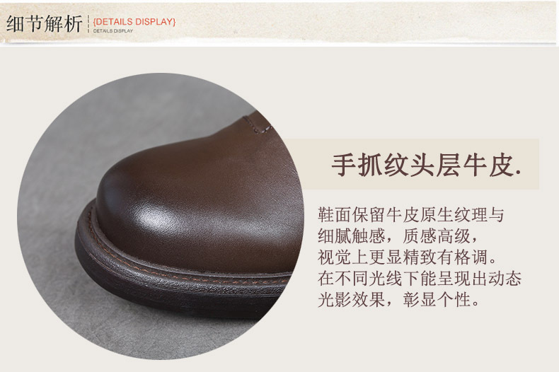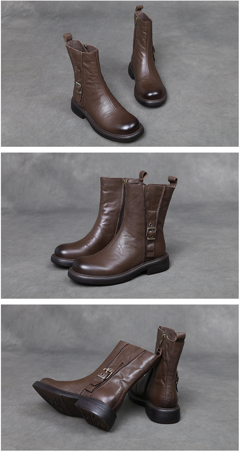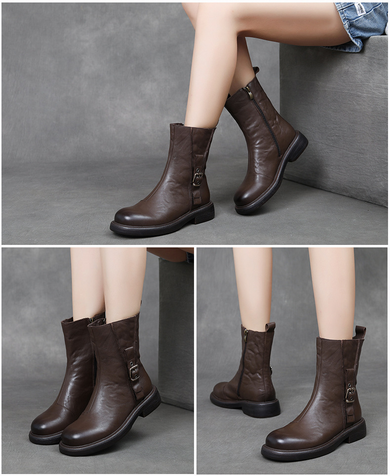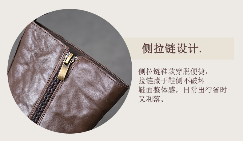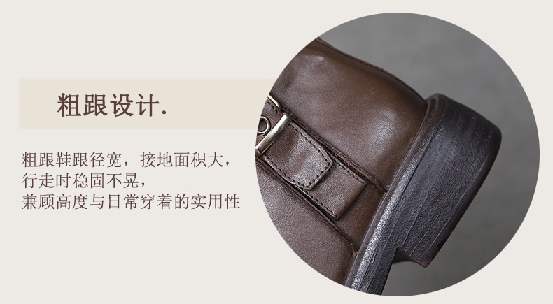 JH3052 2025秋冬轻奢手抓纹头层牛皮拉链马丁靴中靴真皮搭扣休闲女靴
