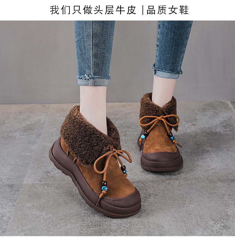 YR 2918厚底羊羔毛雪地靴增高马丁靴保暖加绒美拉德短筒靴