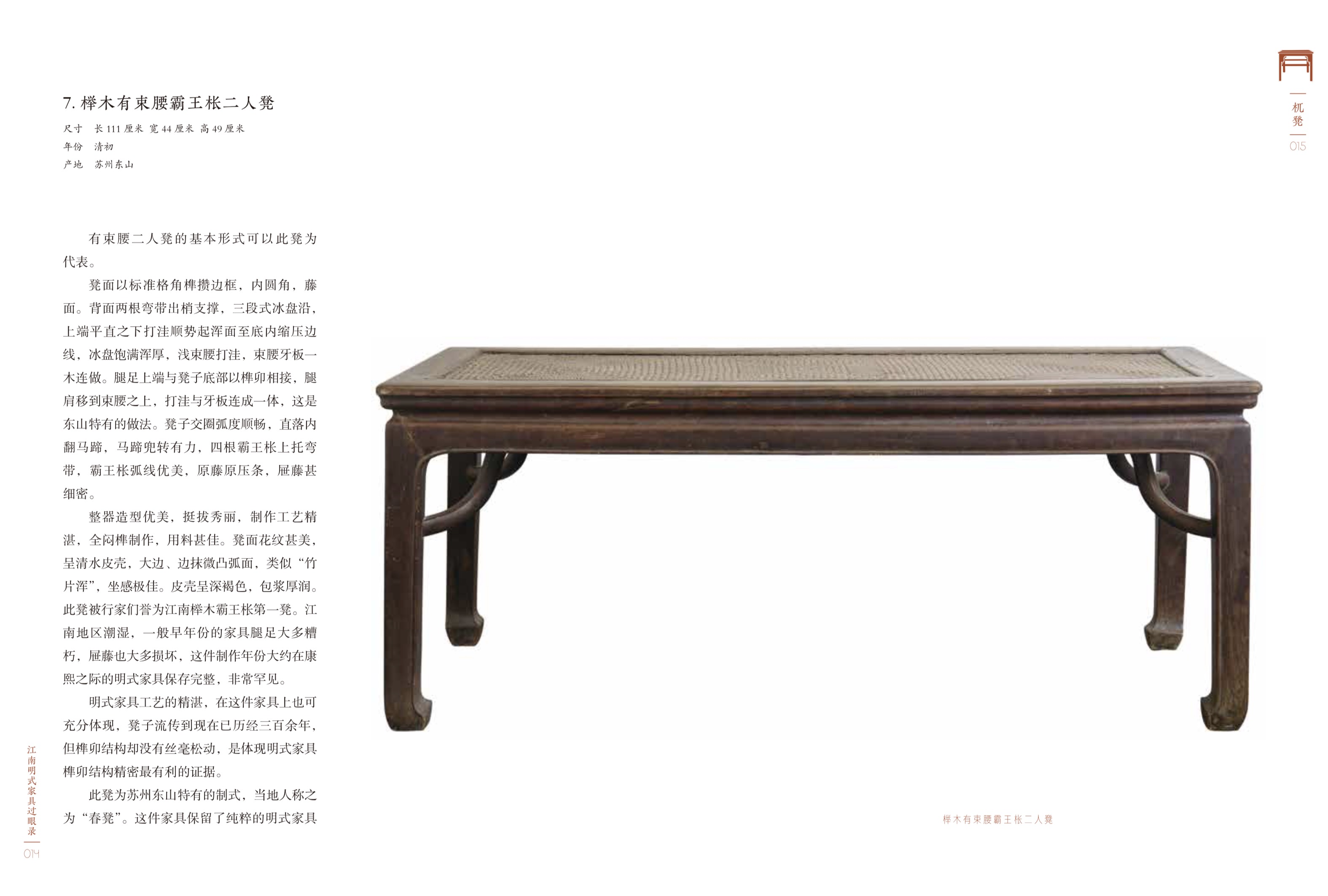 《江南明式家具过眼录》内容简介:作者在本书中将从事明式家具交易数十年间过手的数千件家具进行整理,这些家具基本涵盖了江南明式家具的大部分种类,从中挑选出家具120件,小件57件,书中对每一件家具的产地,制作工艺、年份及皮壳、包浆做出分析与论述,家具的材质基本上是榉木、柏木、楠木、也有少量几件杉木、竹制与黄花梨家具,所呈现的家具基本保留了原始皮壳,原始状态。